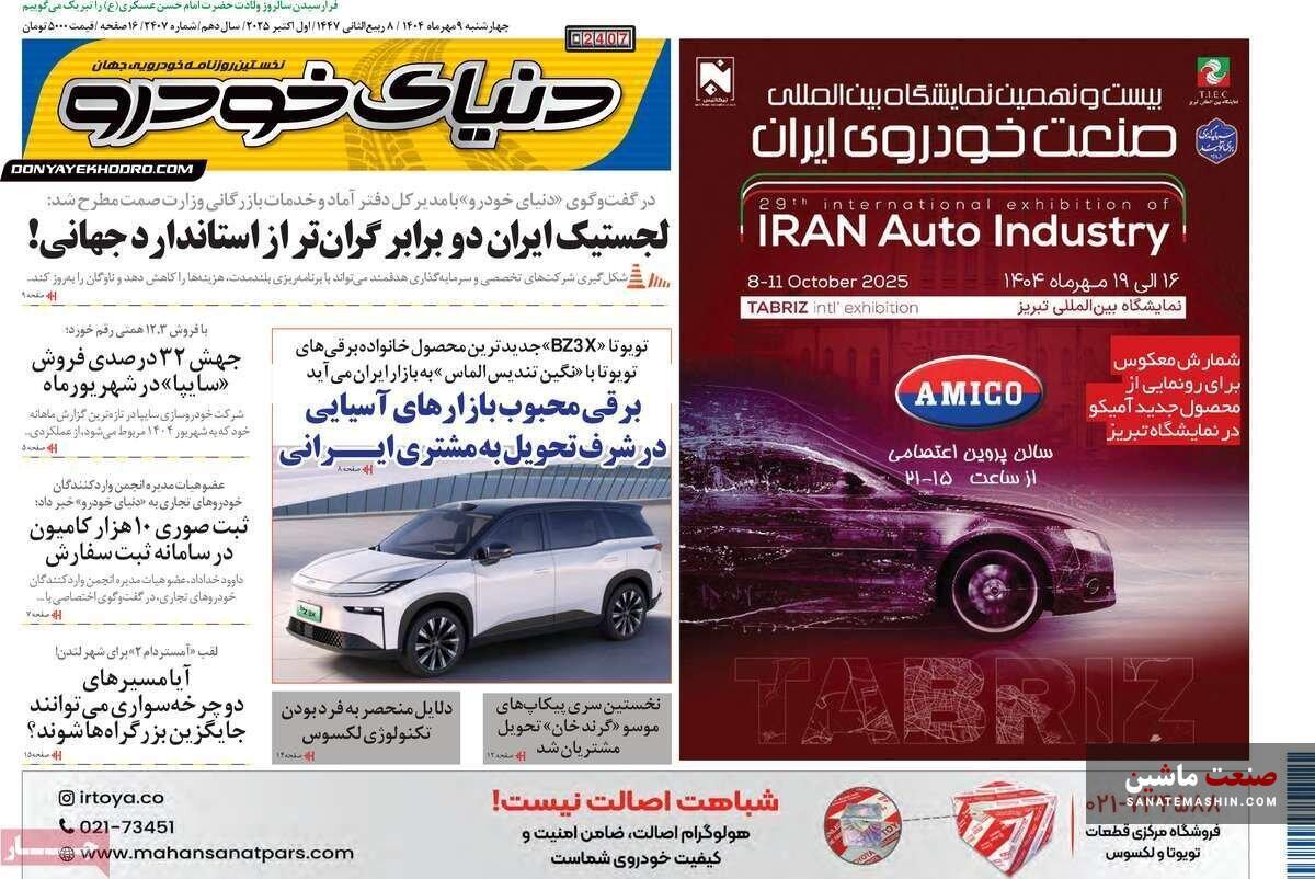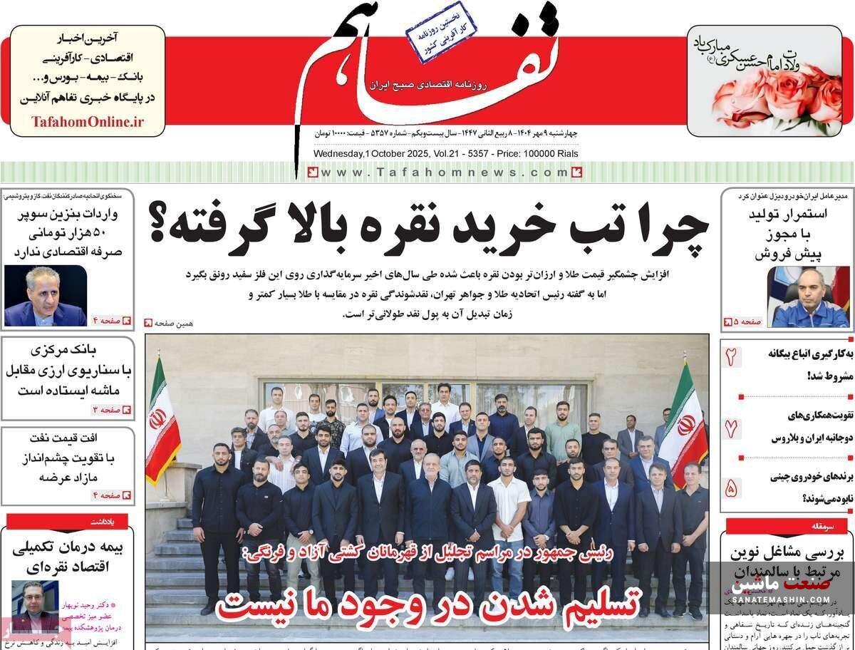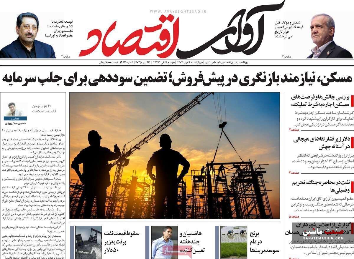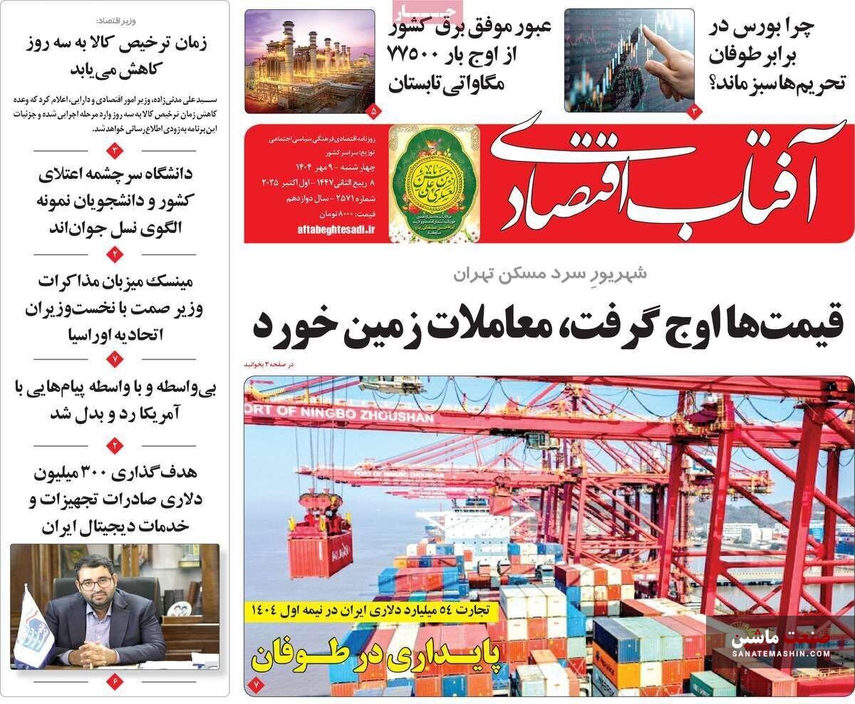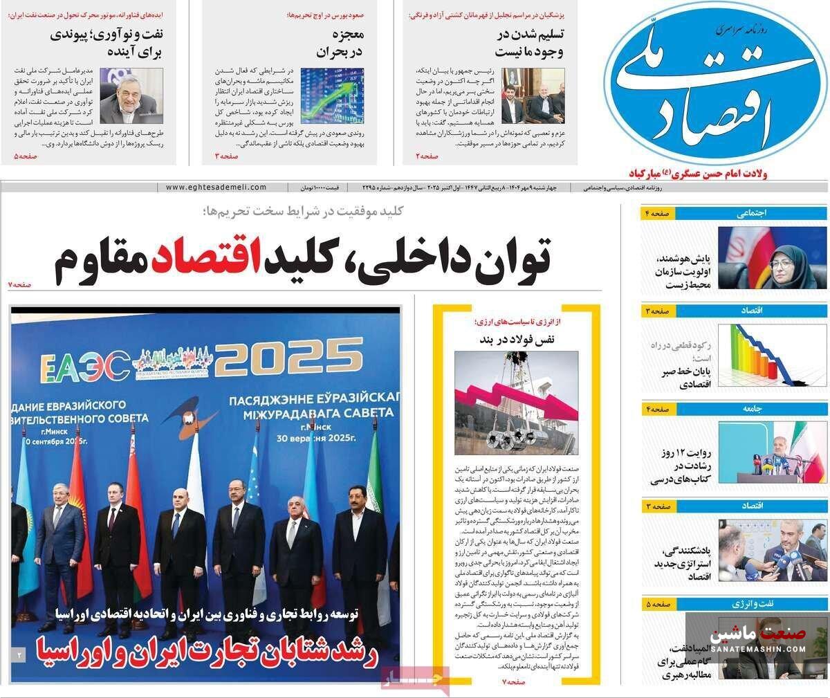 صفحه نخست روزنامه های اقتصادی 2 مهر 1404