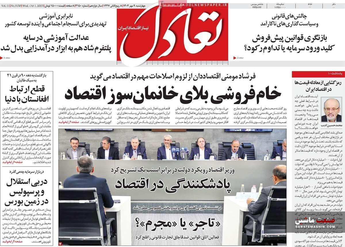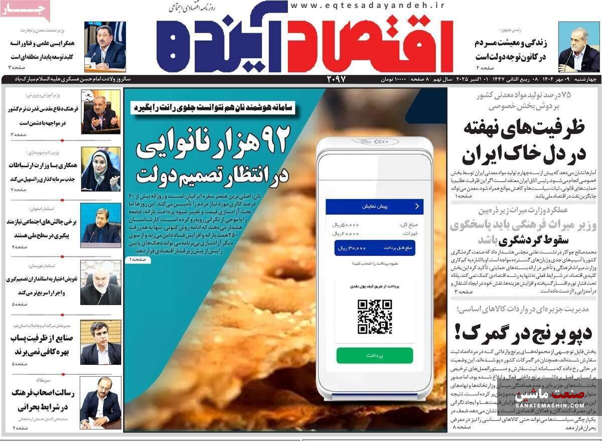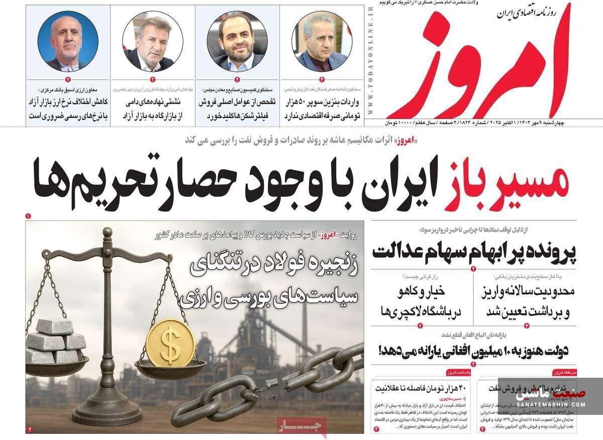 صفحه نخست روزنامه های اقتصادی 1 مهر 1404