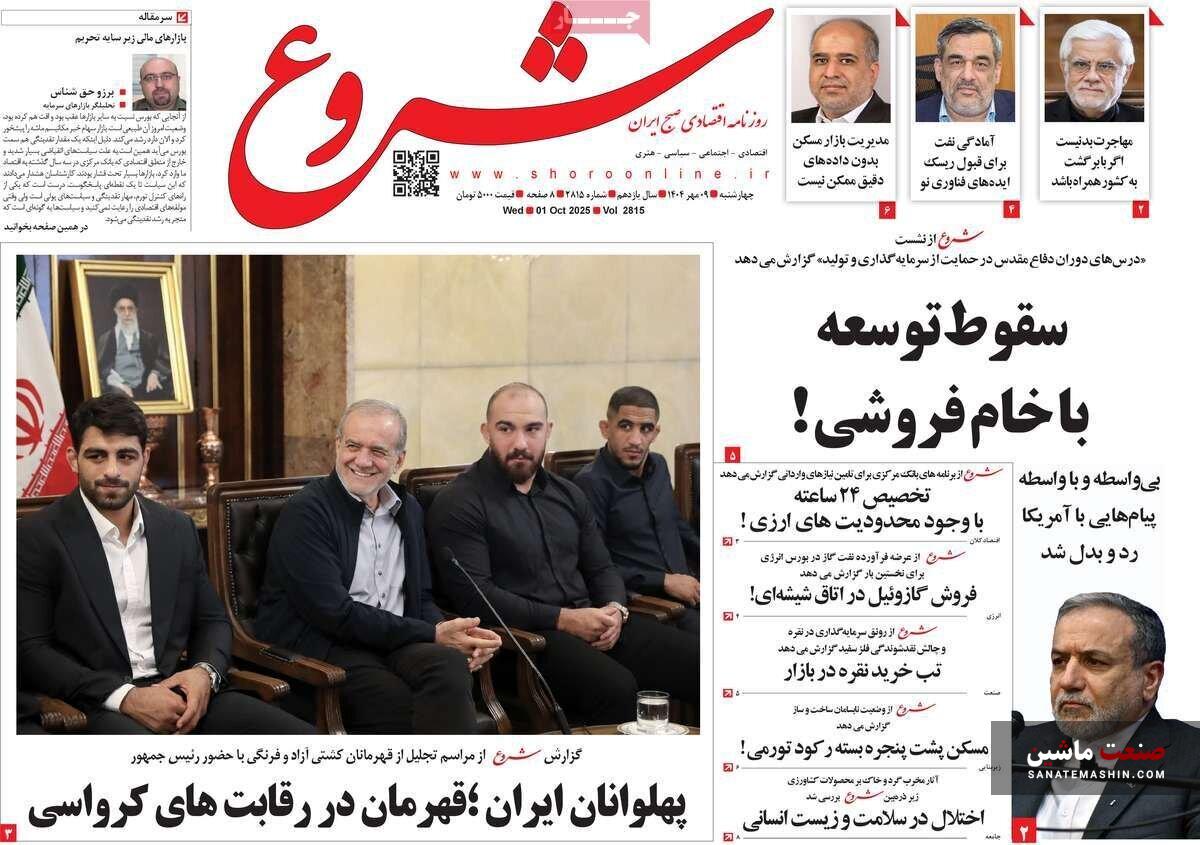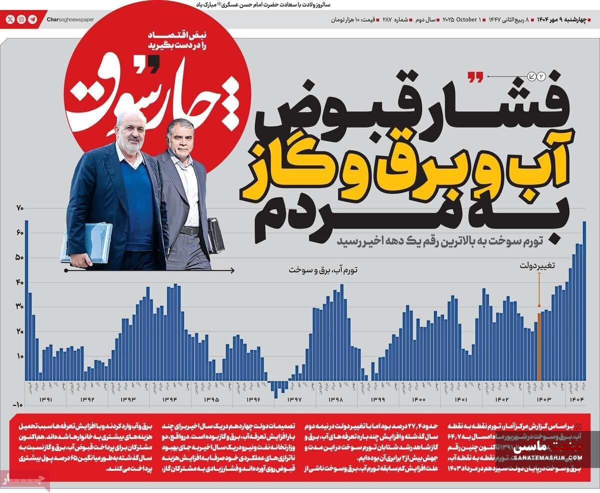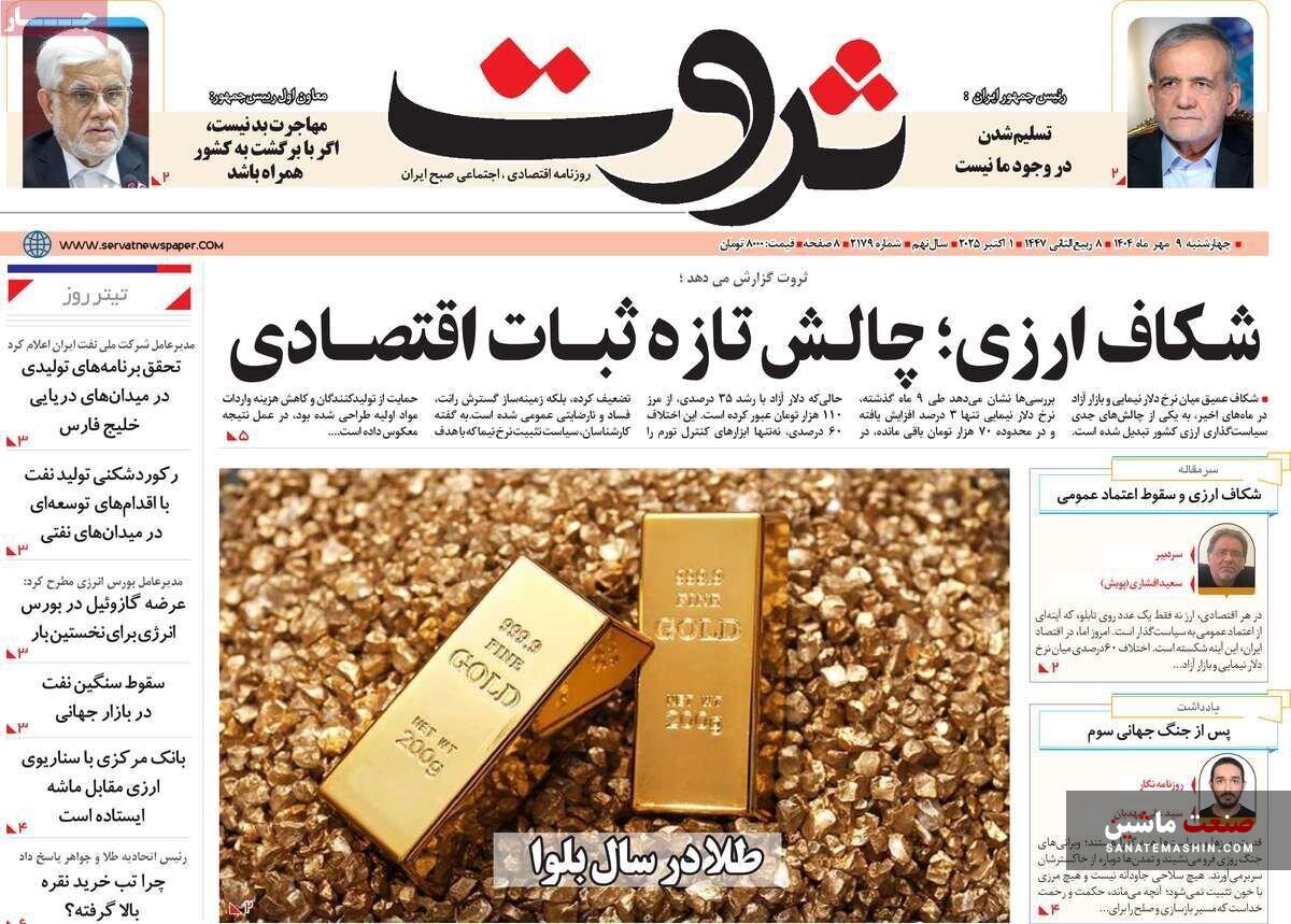 صفحه نخست روزنامه های اقتصادی 1 مهر 1404
