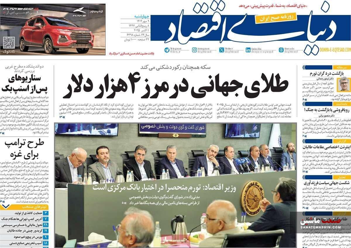 صفحه نخست روزنامه های اقتصادی 3 مهر 1404