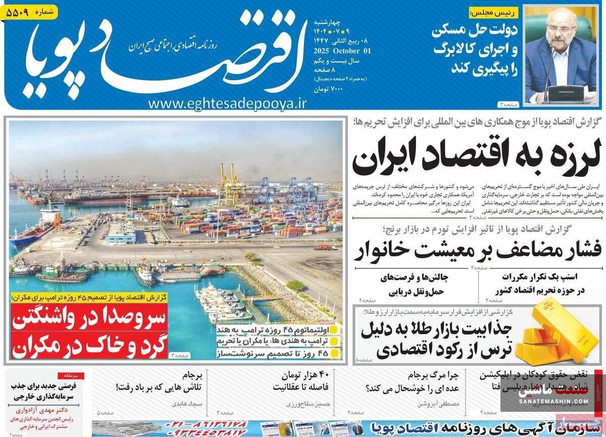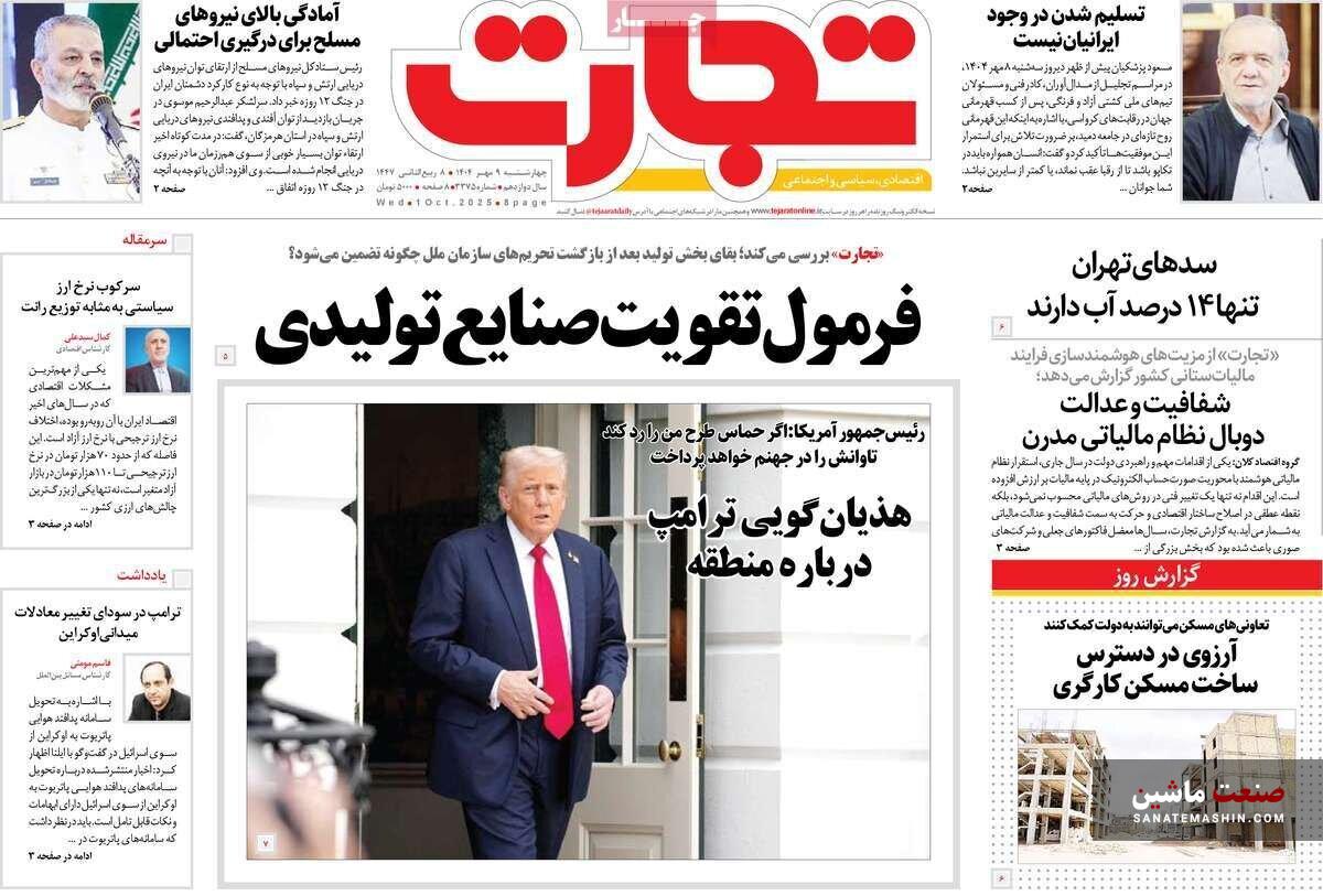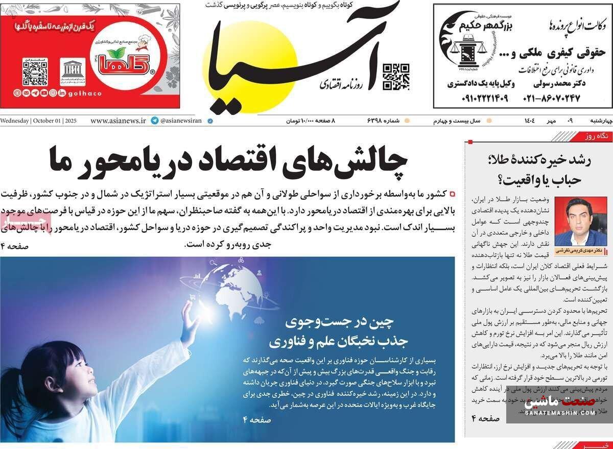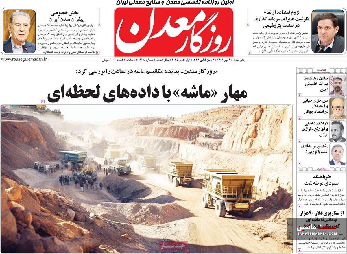 به گزارش صنعت ماشین ؛ صفحه نخست روزنامه های اقتصادی 9 مهر 1404 به شرح زیر است: