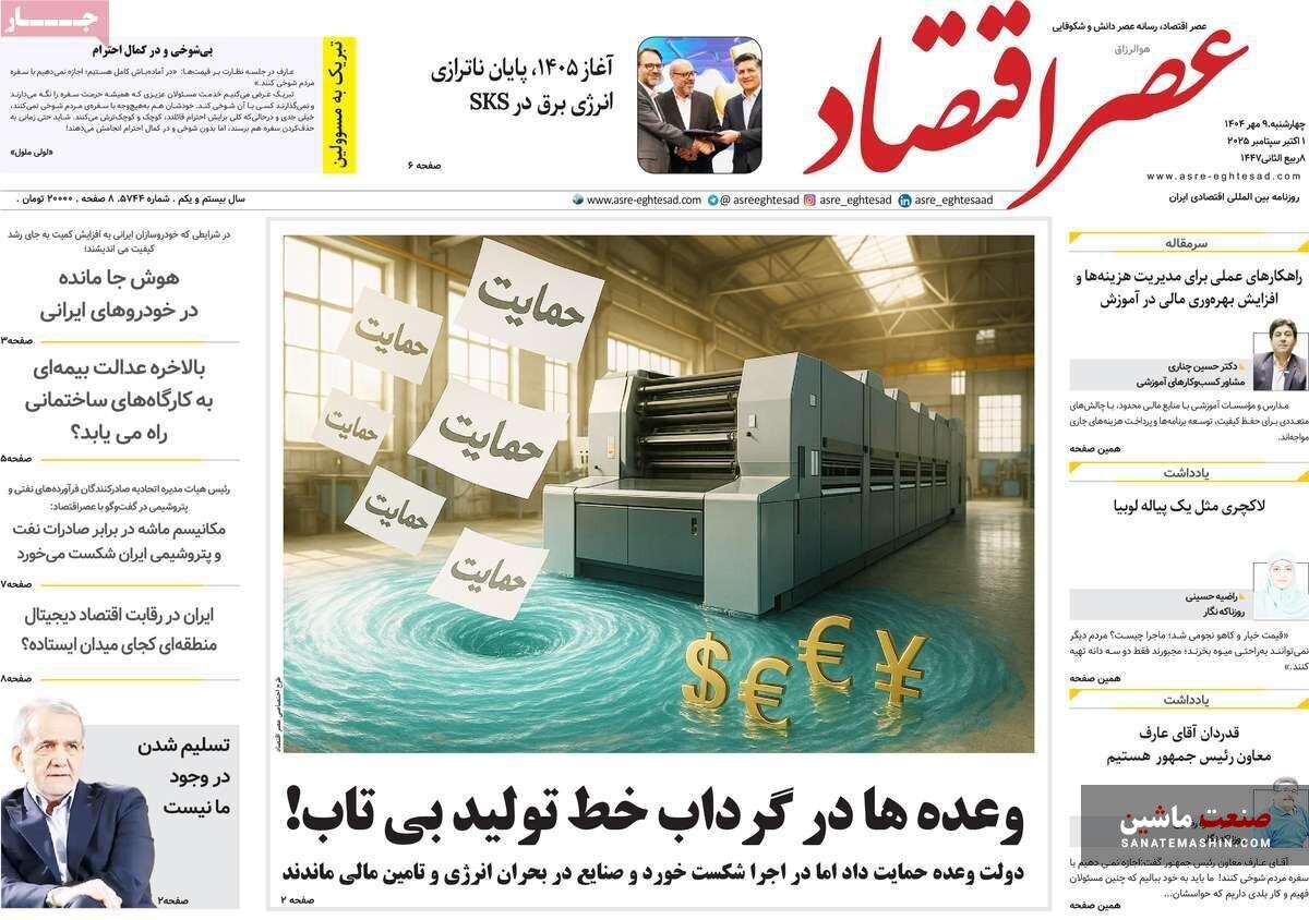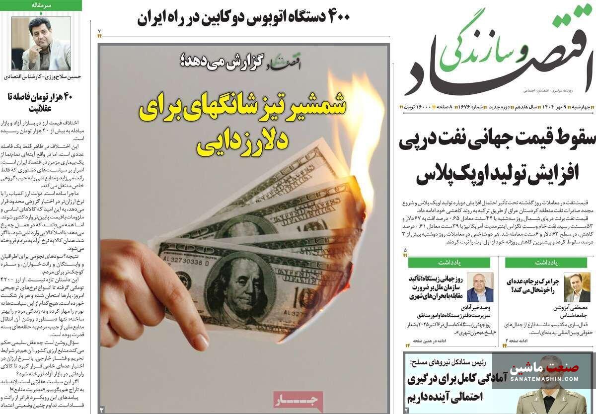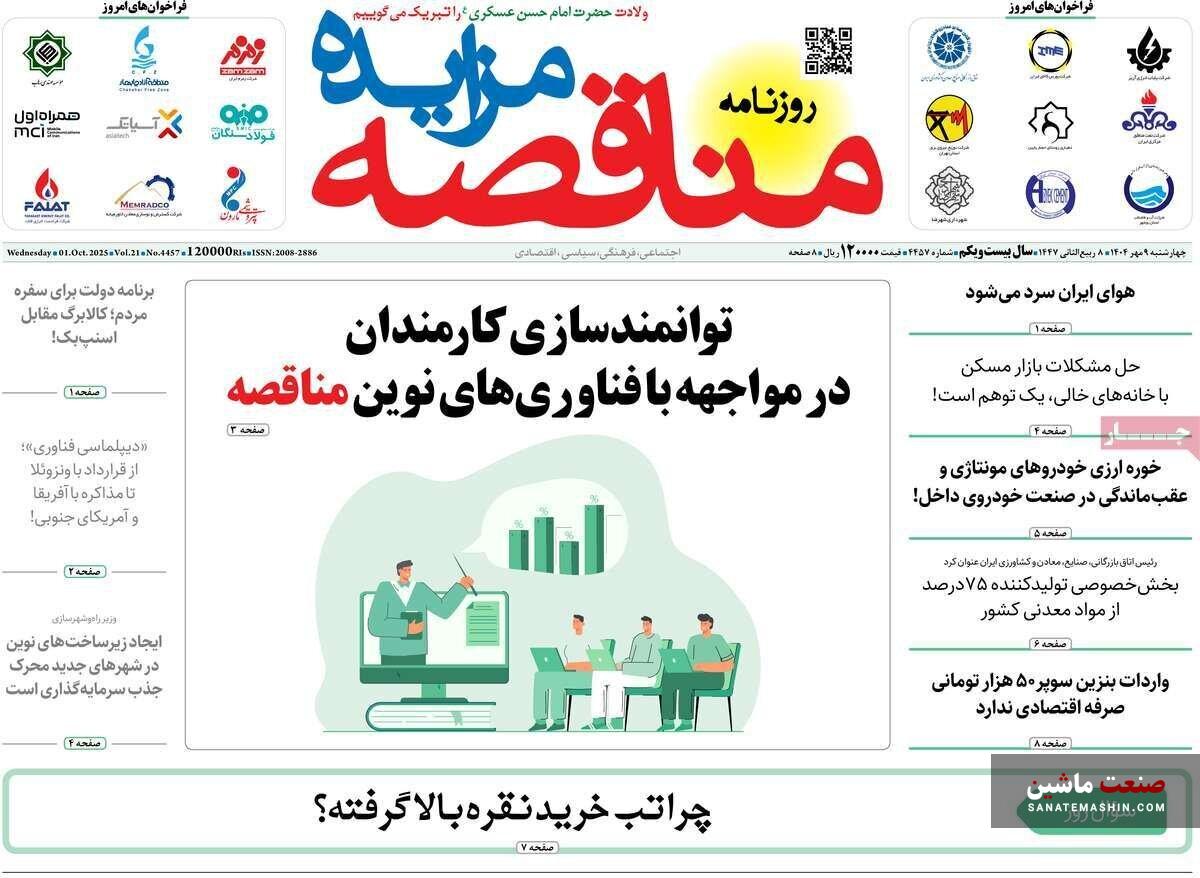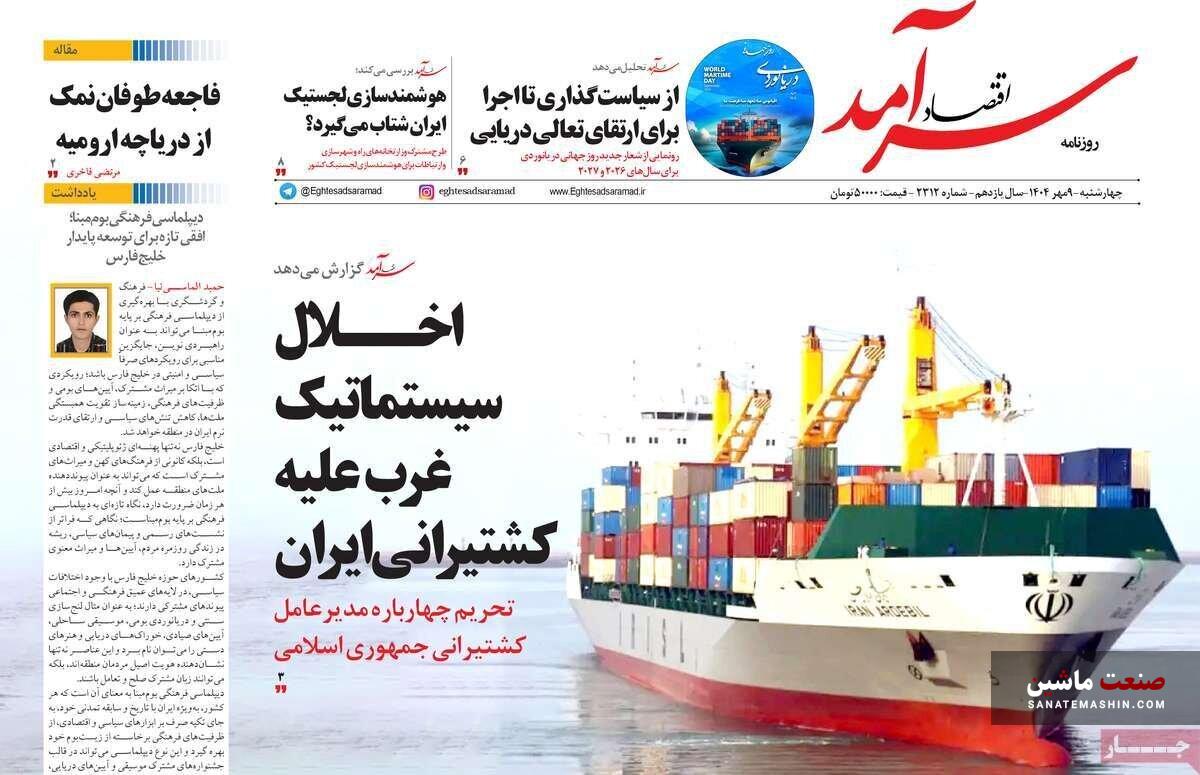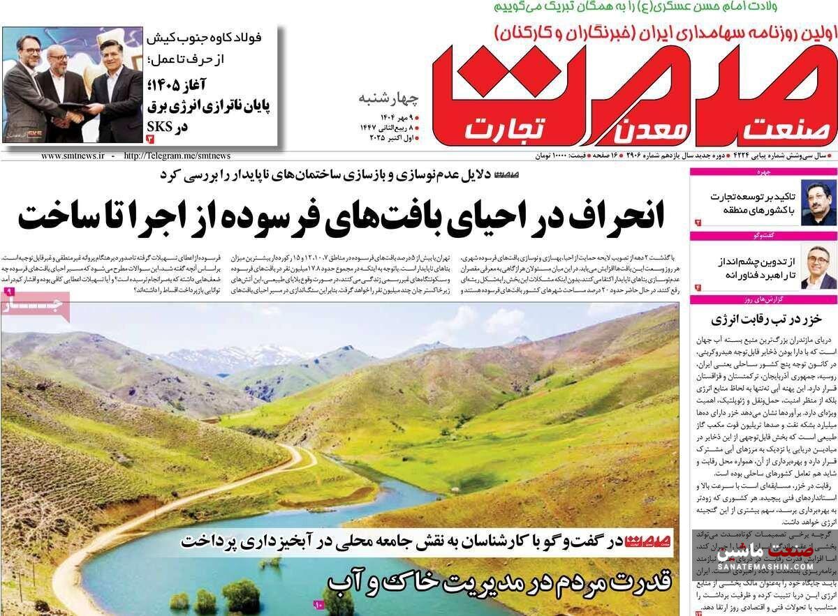 به گزارش صنعت ماشین ؛ صفحه نخست روزنامه های اقتصادی 9 مهر 1404 به شرح زیر است: