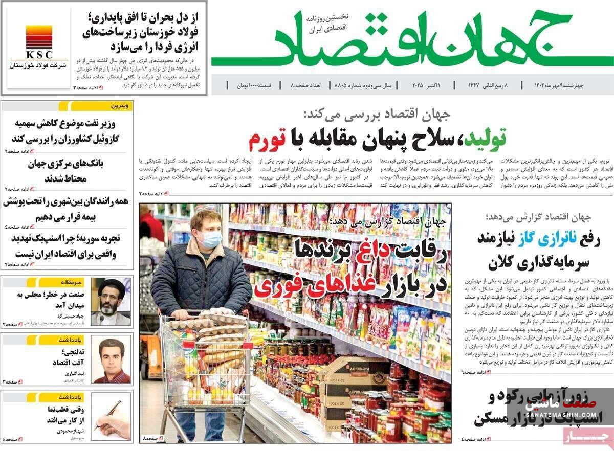 صفحه نخست روزنامه های اقتصادی 8 مهر 1404