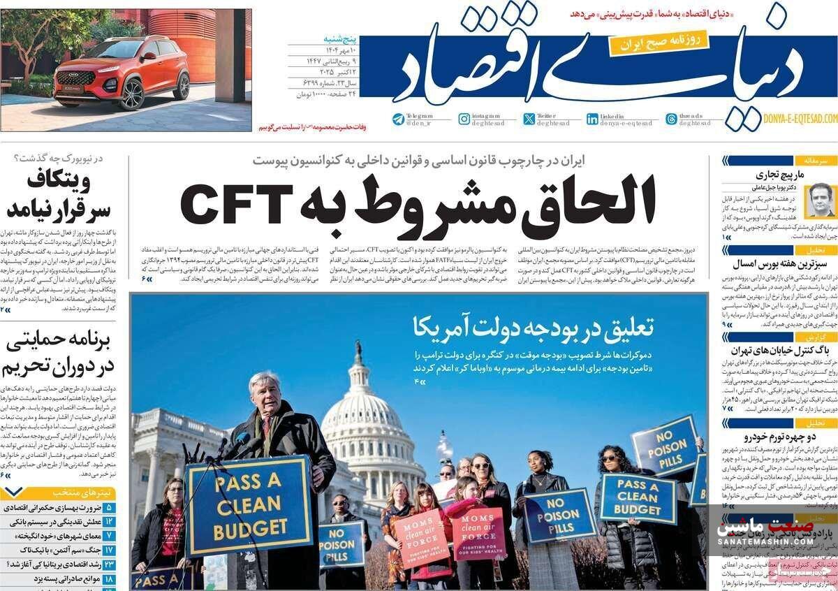 صفحه نخست روزنامه های اقتصادی 5 مهر 1404