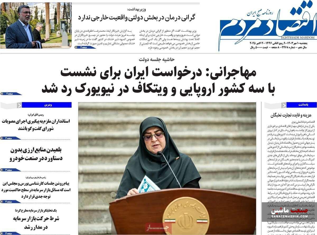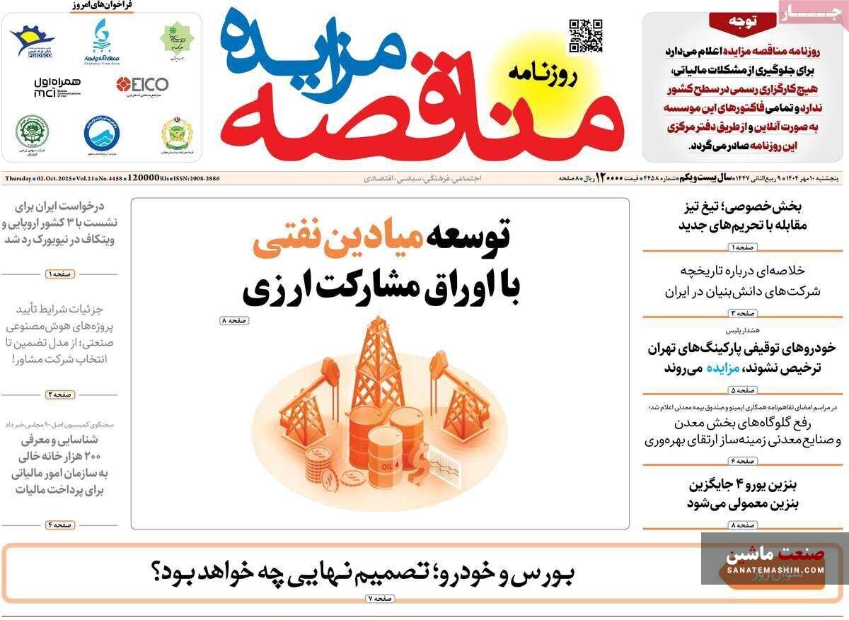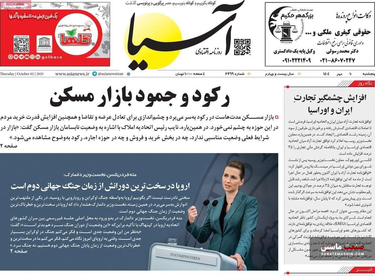 صفحه نخست روزنامه های اقتصادی 2 مهر 1404