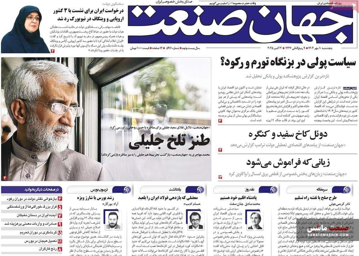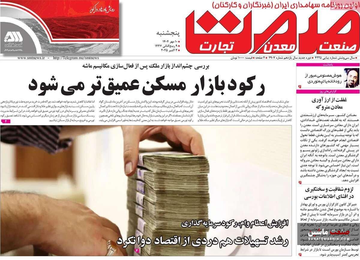 به گزارش صنعت ماشین ؛ صفحه نخست روزنامه های اقتصادی 10 مهر 1404 به شرح زیر است: