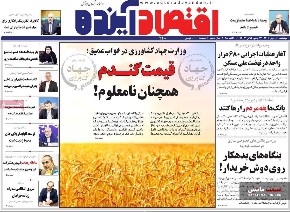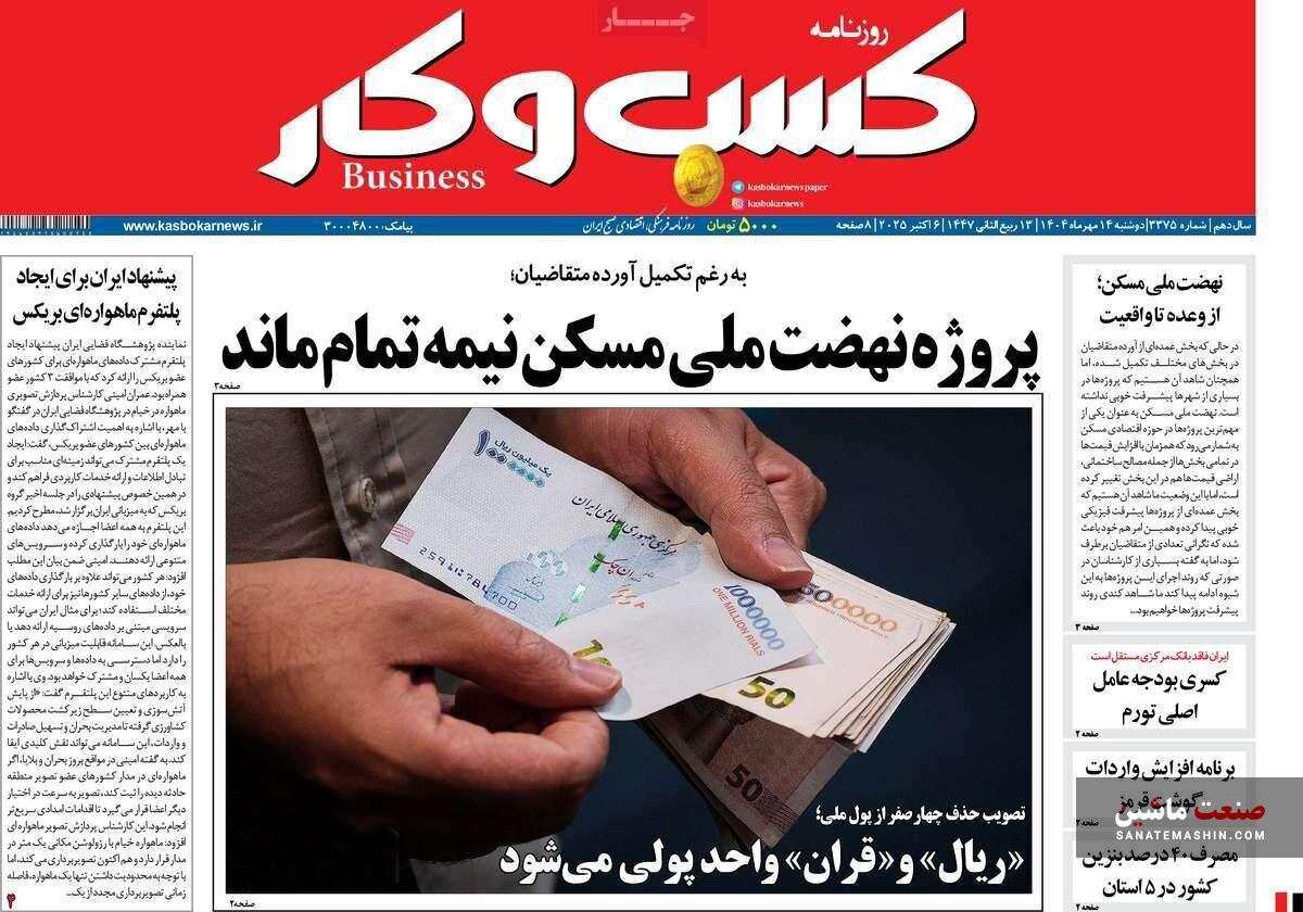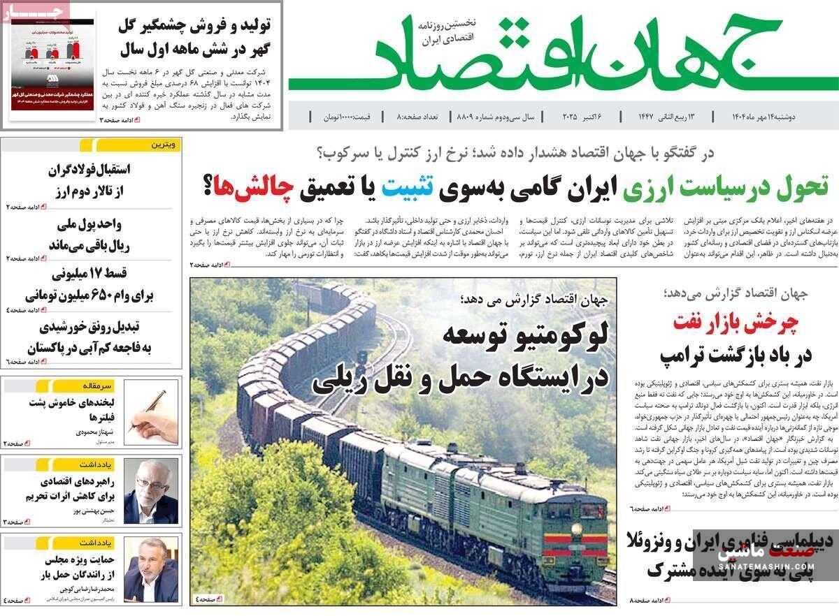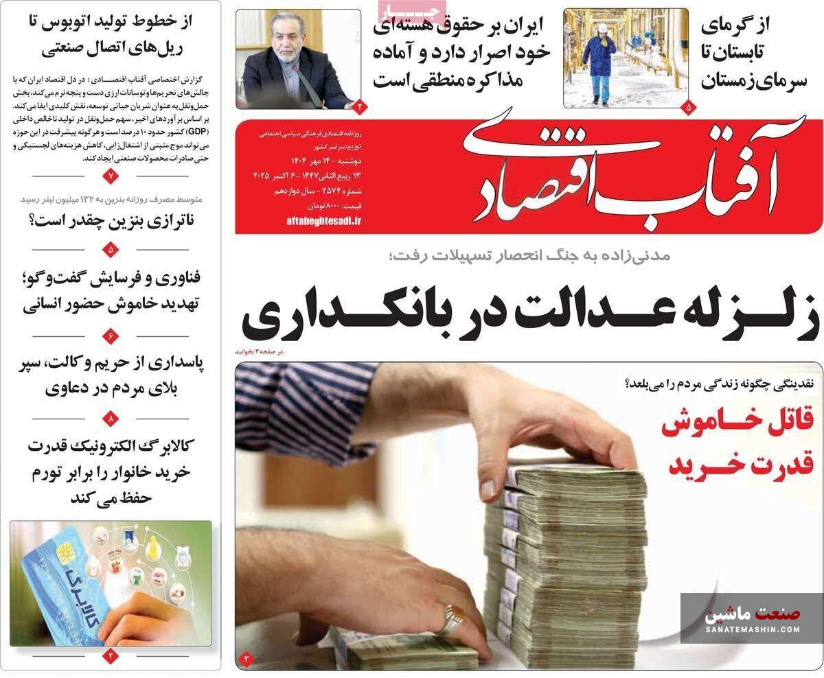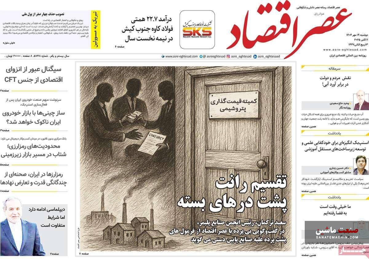 به گزارش صنعت ماشین ؛ صفحه نخست روزنامه های اقتصادی 14 مهر 1404 به شرح زیر است: