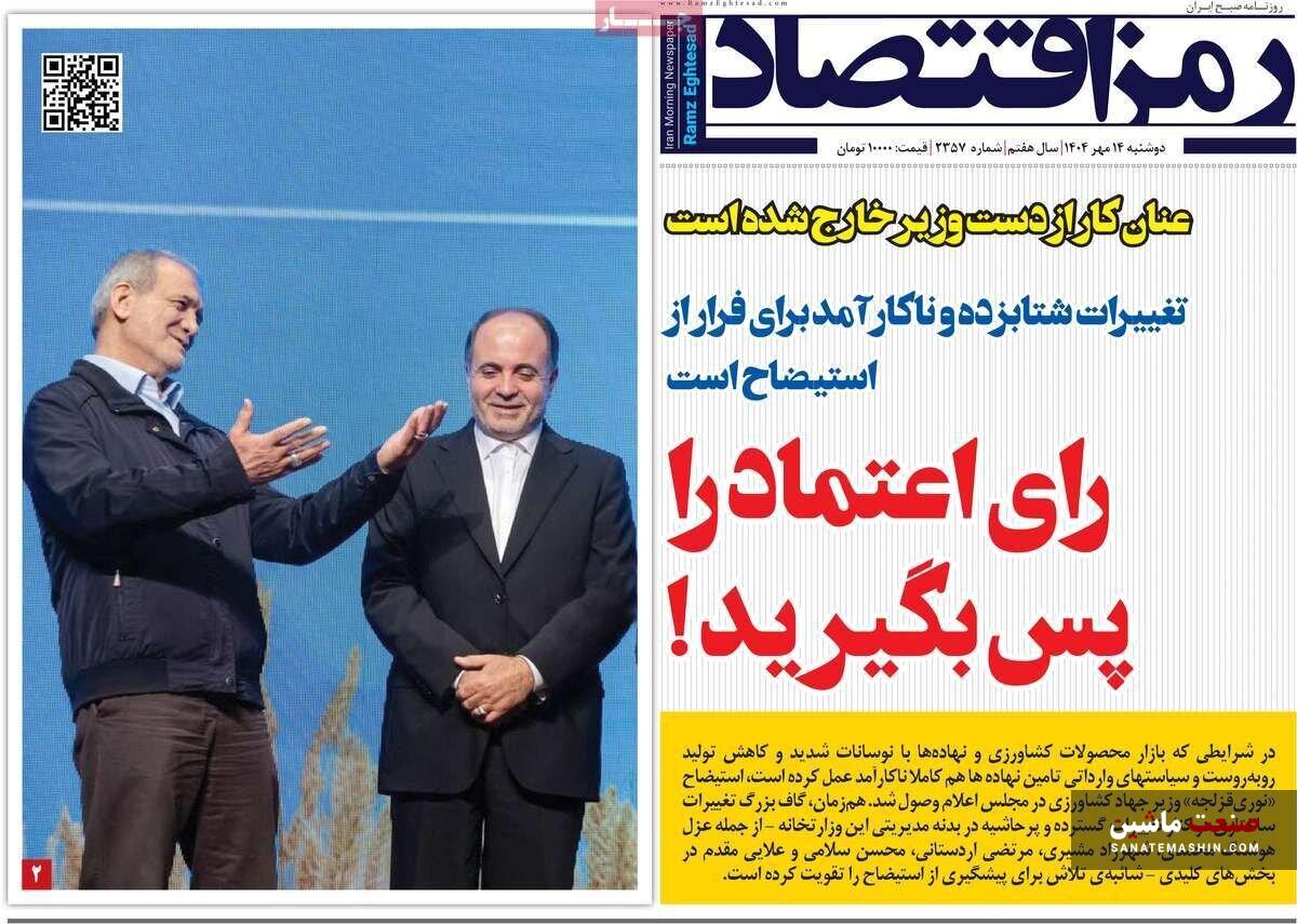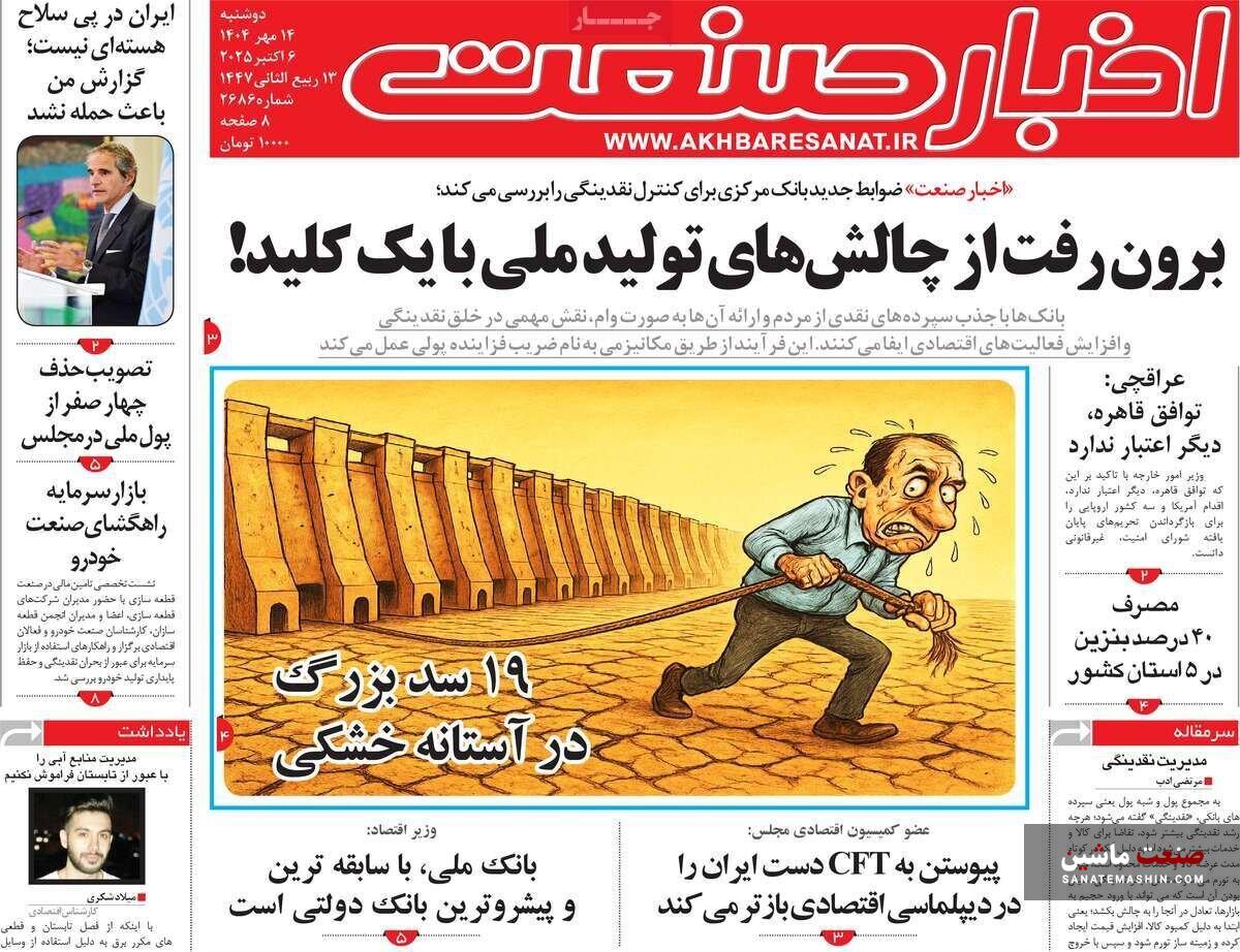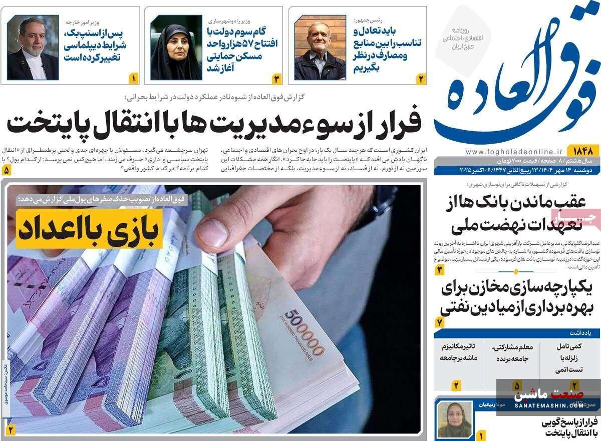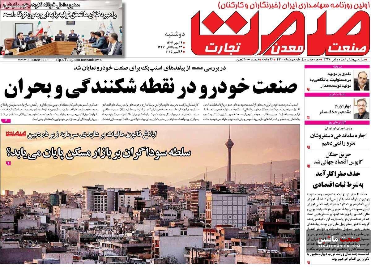 به گزارش صنعت ماشین ؛ صفحه نخست روزنامه های اقتصادی 14 مهر 1404 به شرح زیر است: