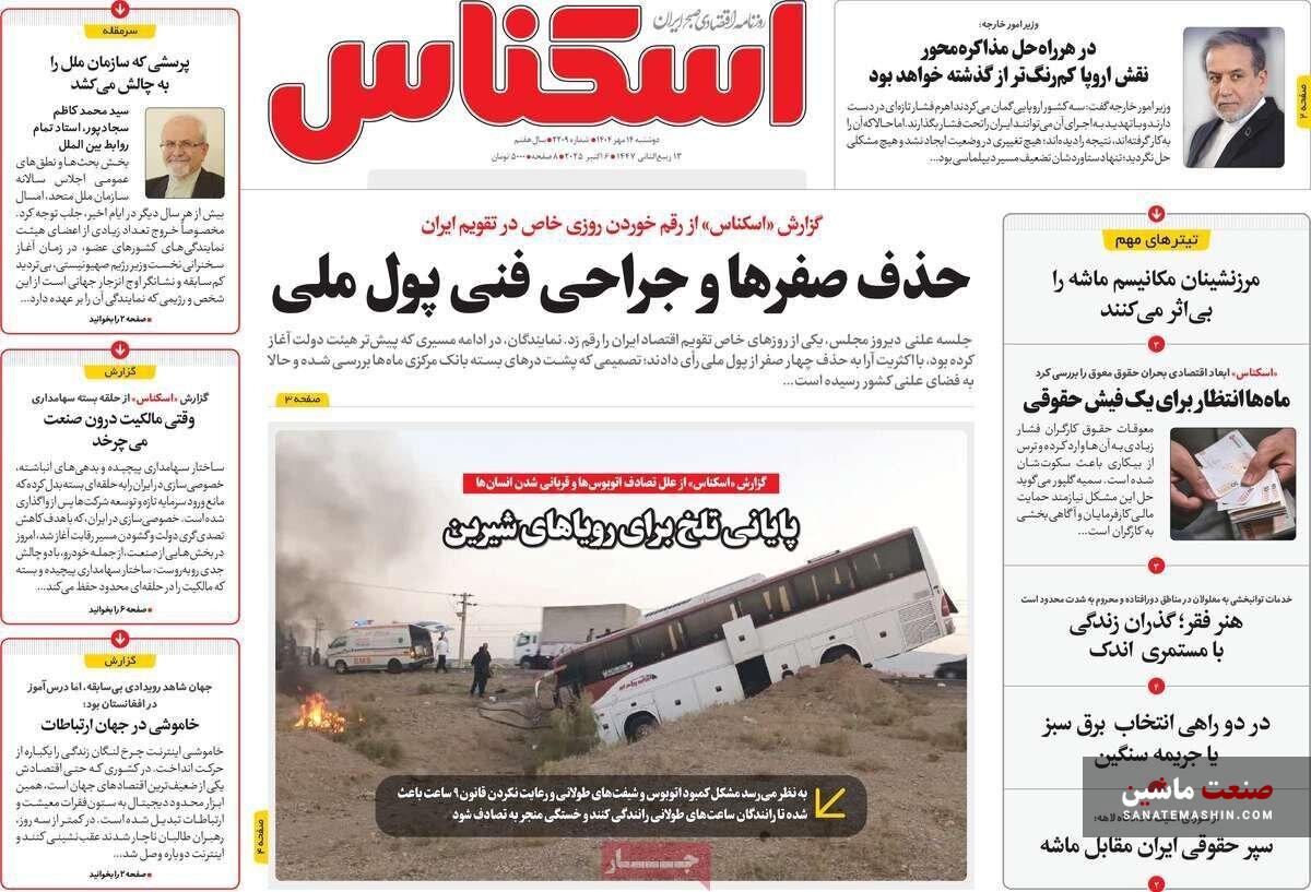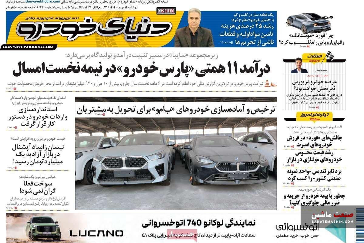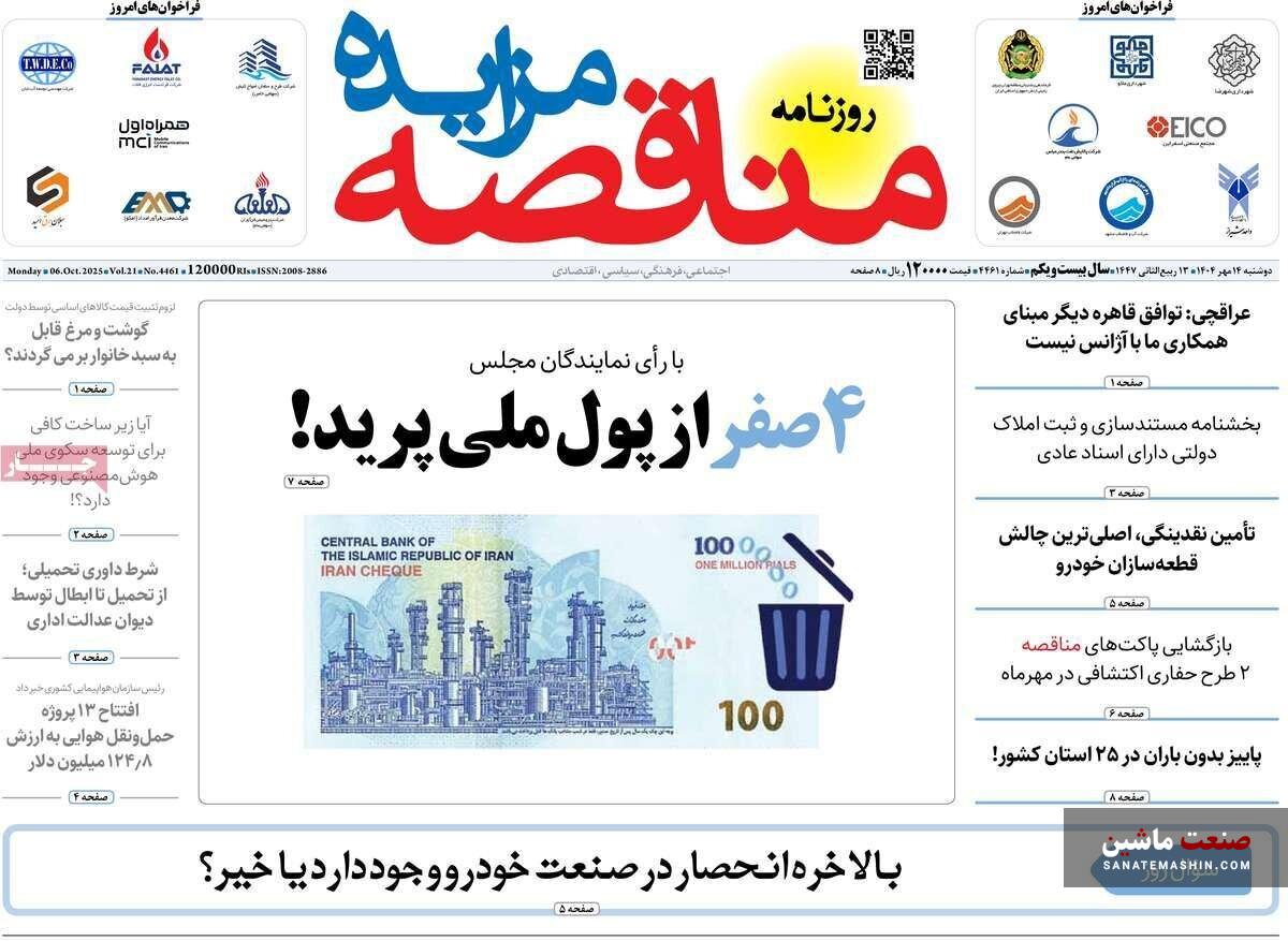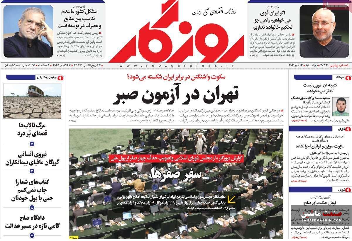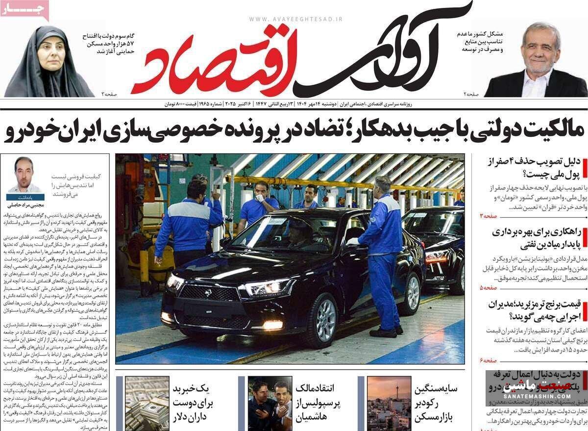به گزارش صنعت ماشین ؛ صفحه نخست روزنامه های اقتصادی 14 مهر 1404 به شرح زیر است: