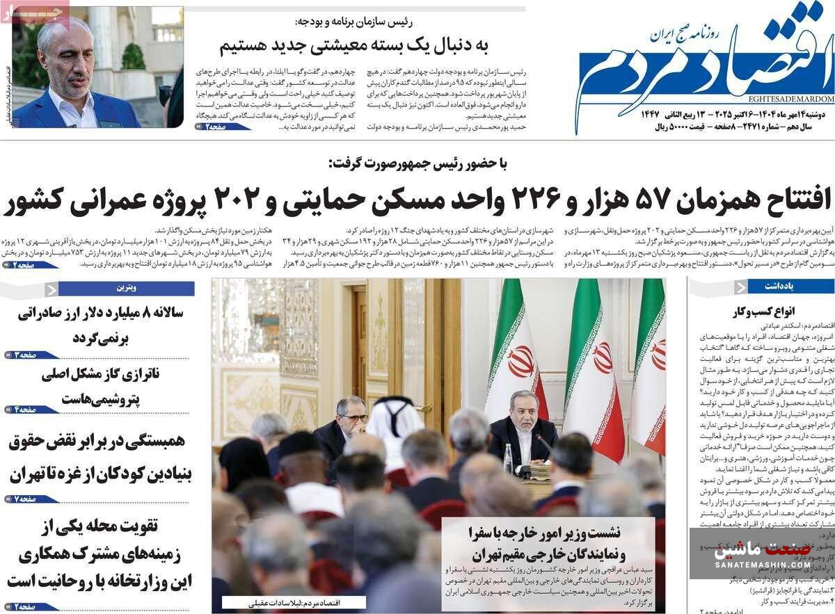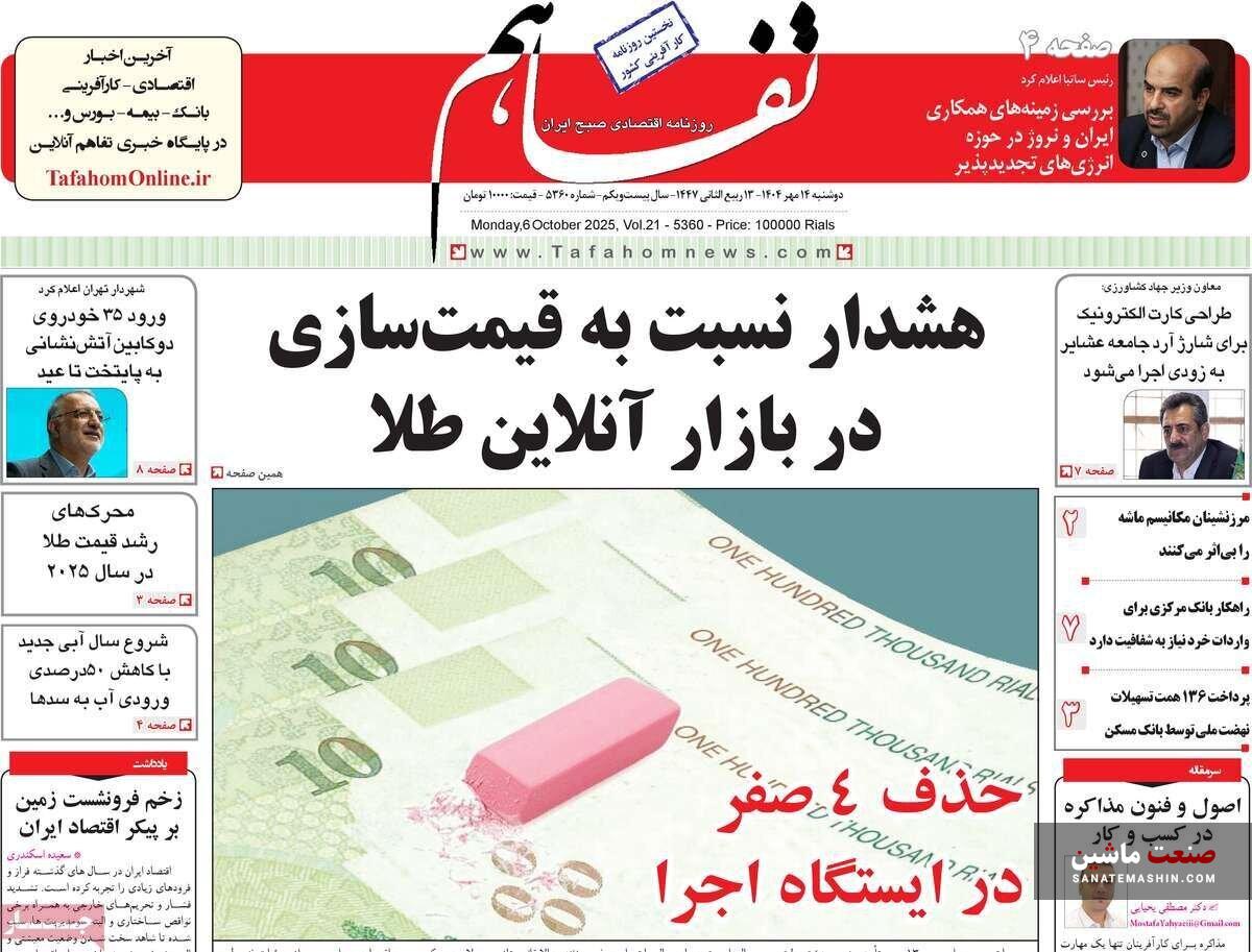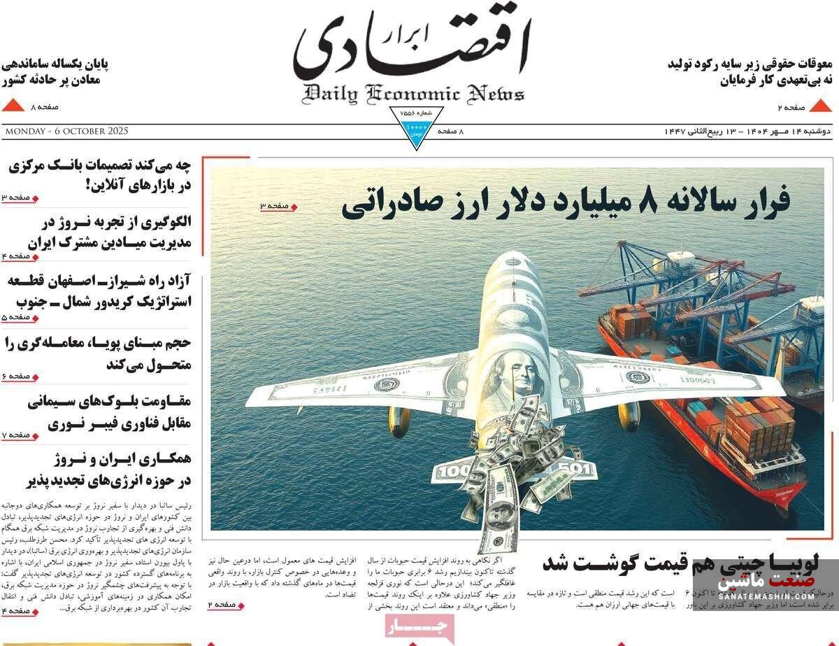 صفحه نخست روزنامه های اقتصادی 6 مهر 1404