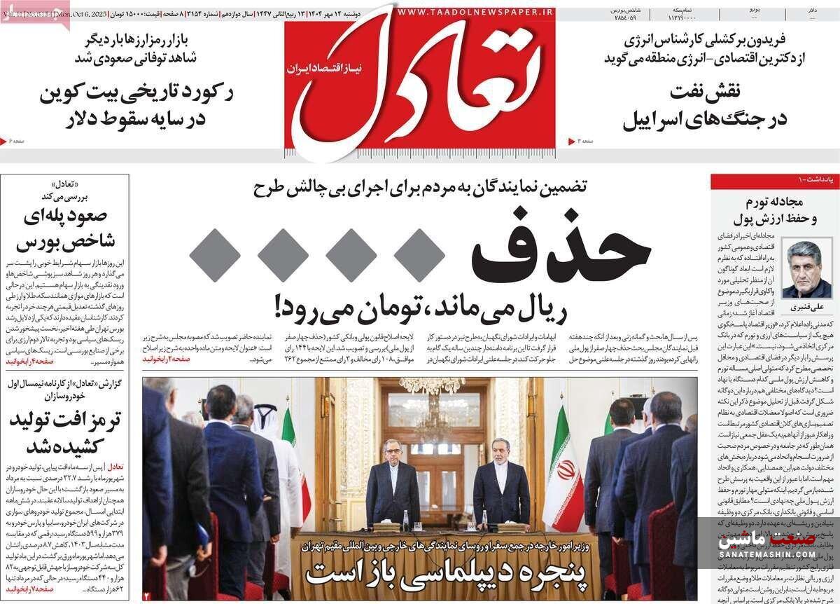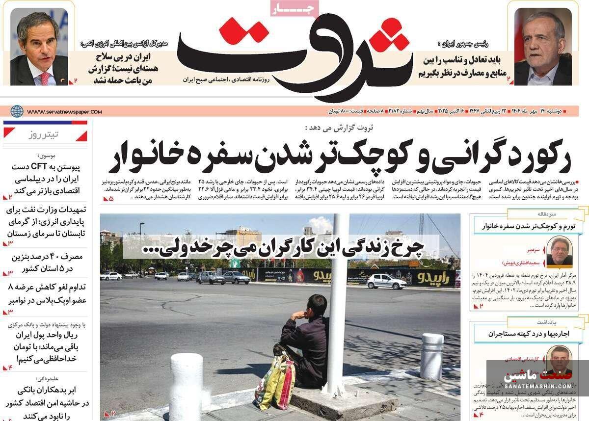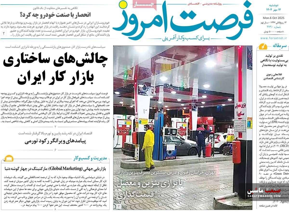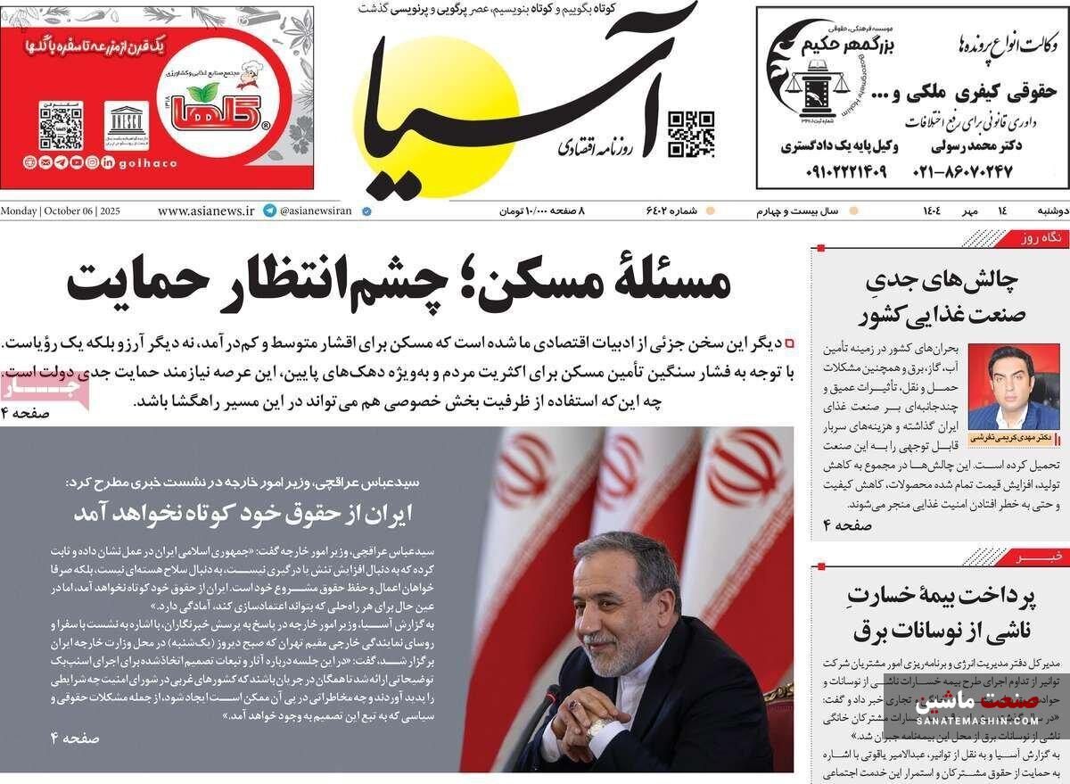 صفحه نخست روزنامه های اقتصادی 6 مهر 1404