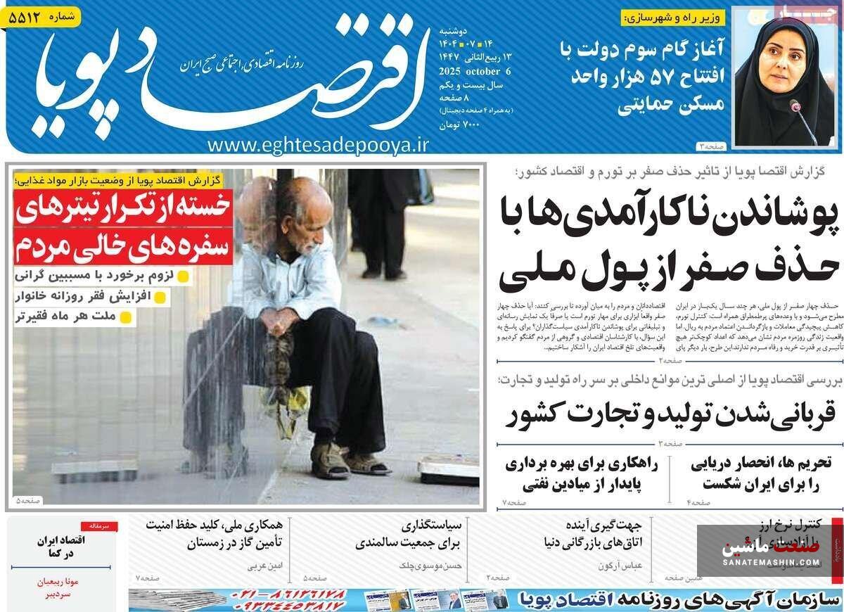 صفحه نخست روزنامه های اقتصادی 8 مهر 1404