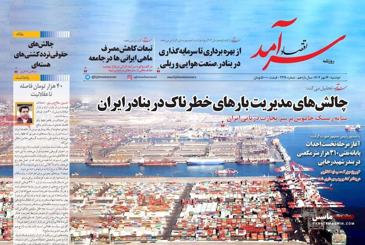 صفحه نخست روزنامه های اقتصادی 5 مهر 1404
