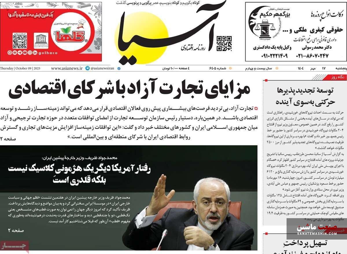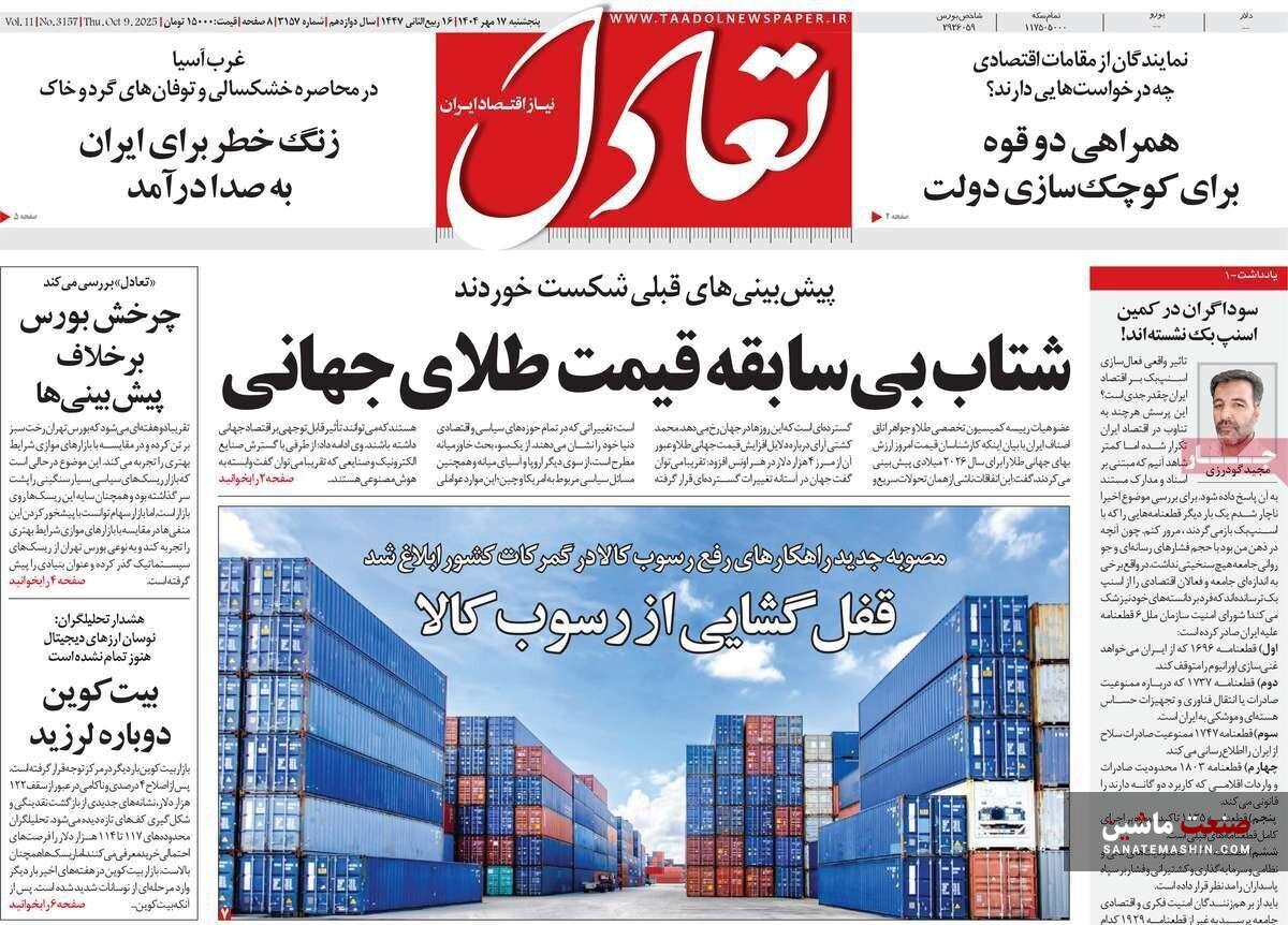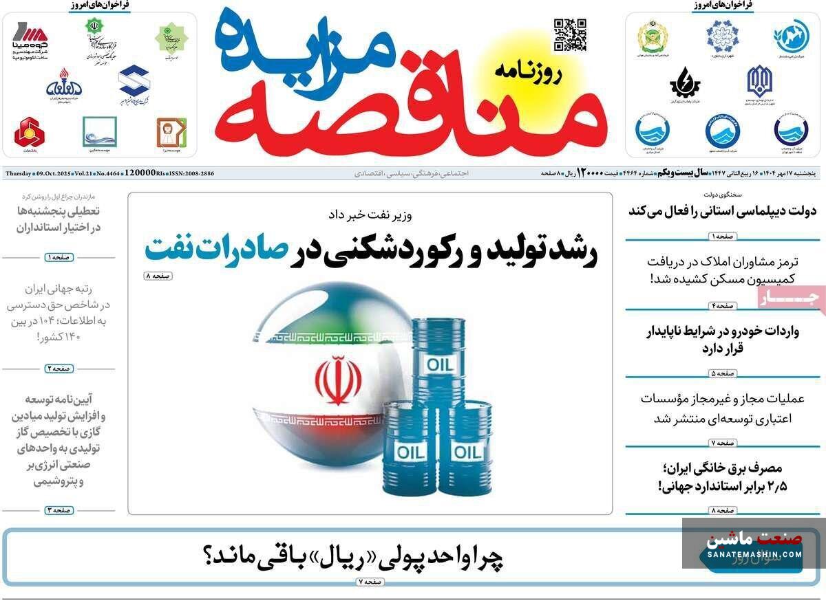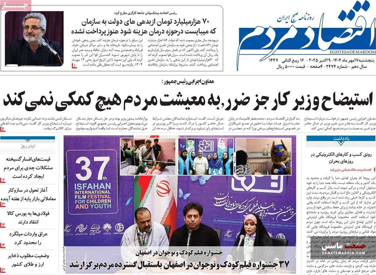 صفحه نخست روزنامه های اقتصادی 9 مهر 1404