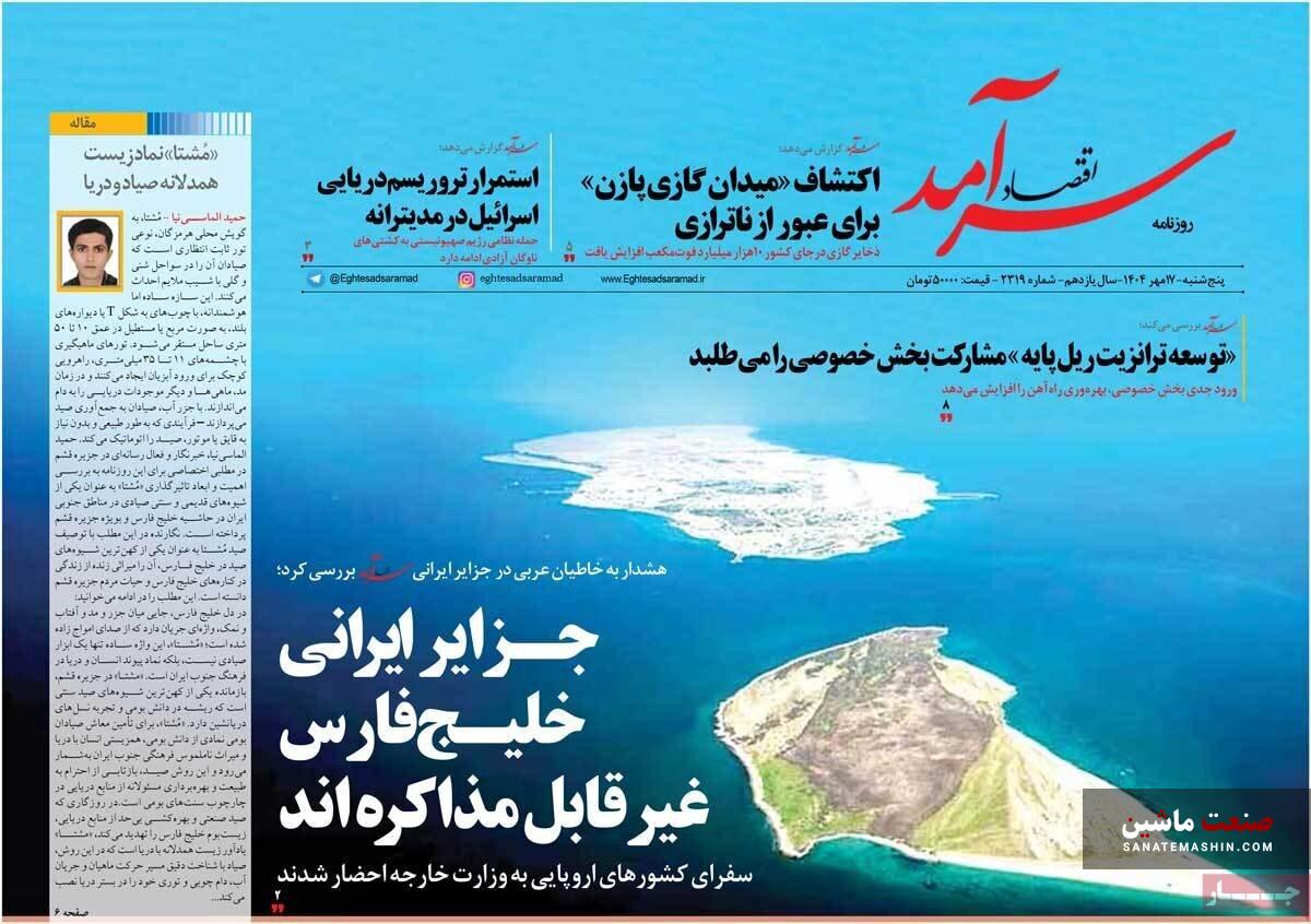 صفحه نخست روزنامه های اقتصادی 15 مهر 1404