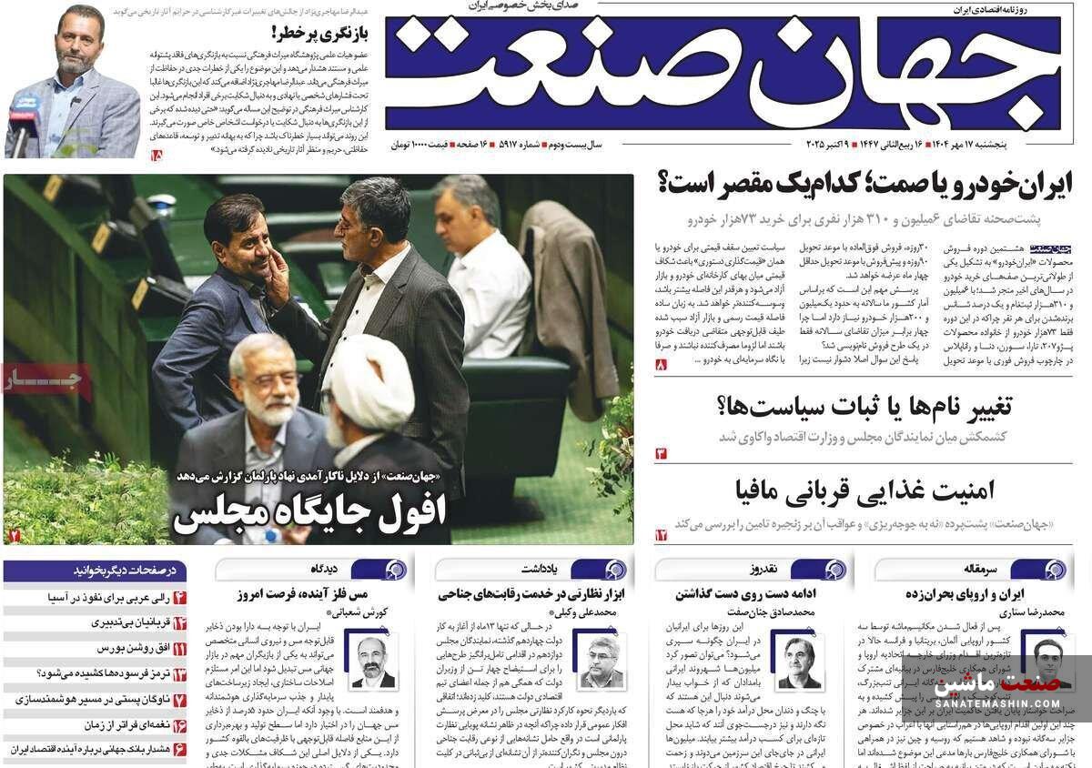 به گزارش صنعت ماشین ؛ صفحه نخست روزنامه های اقتصادی 17 مهر 1404 به شرح زیر است: