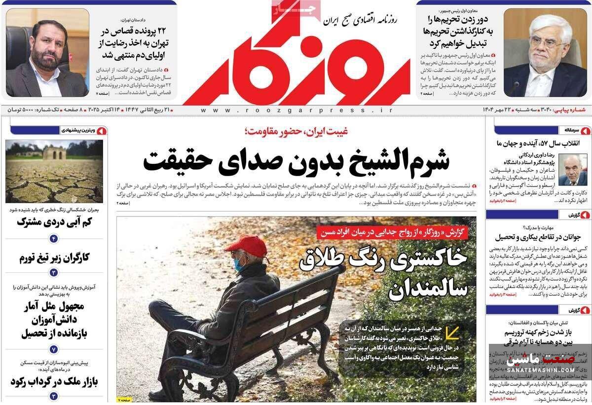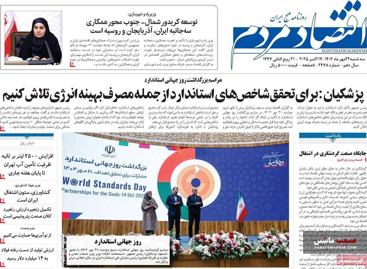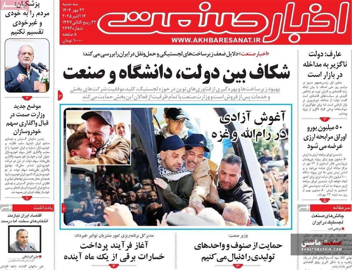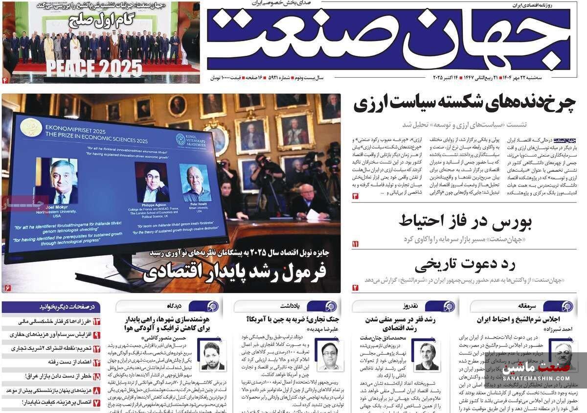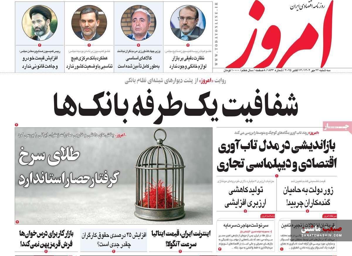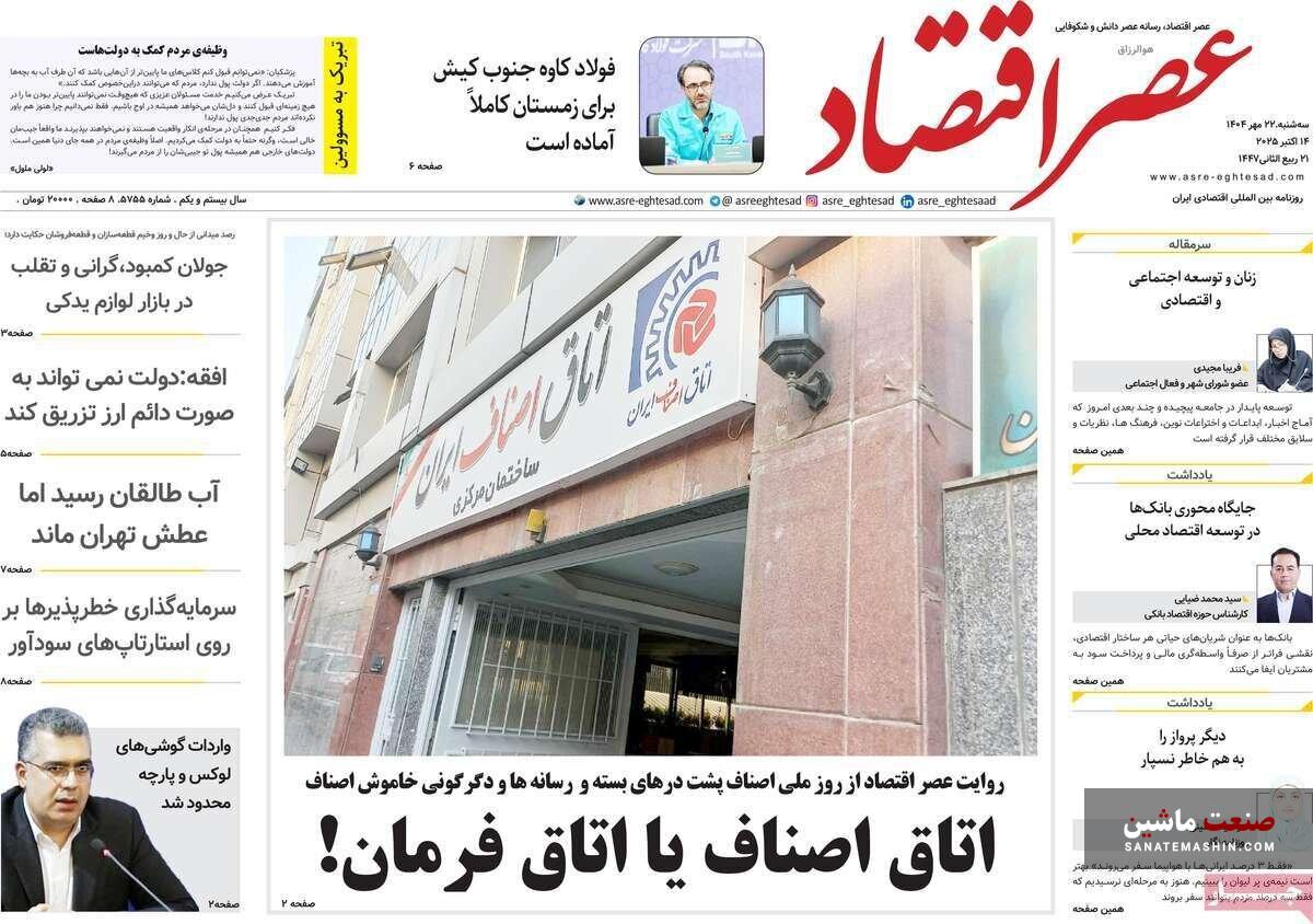 صفحه نخست روزنامه های اقتصادی 15 مهر 1404