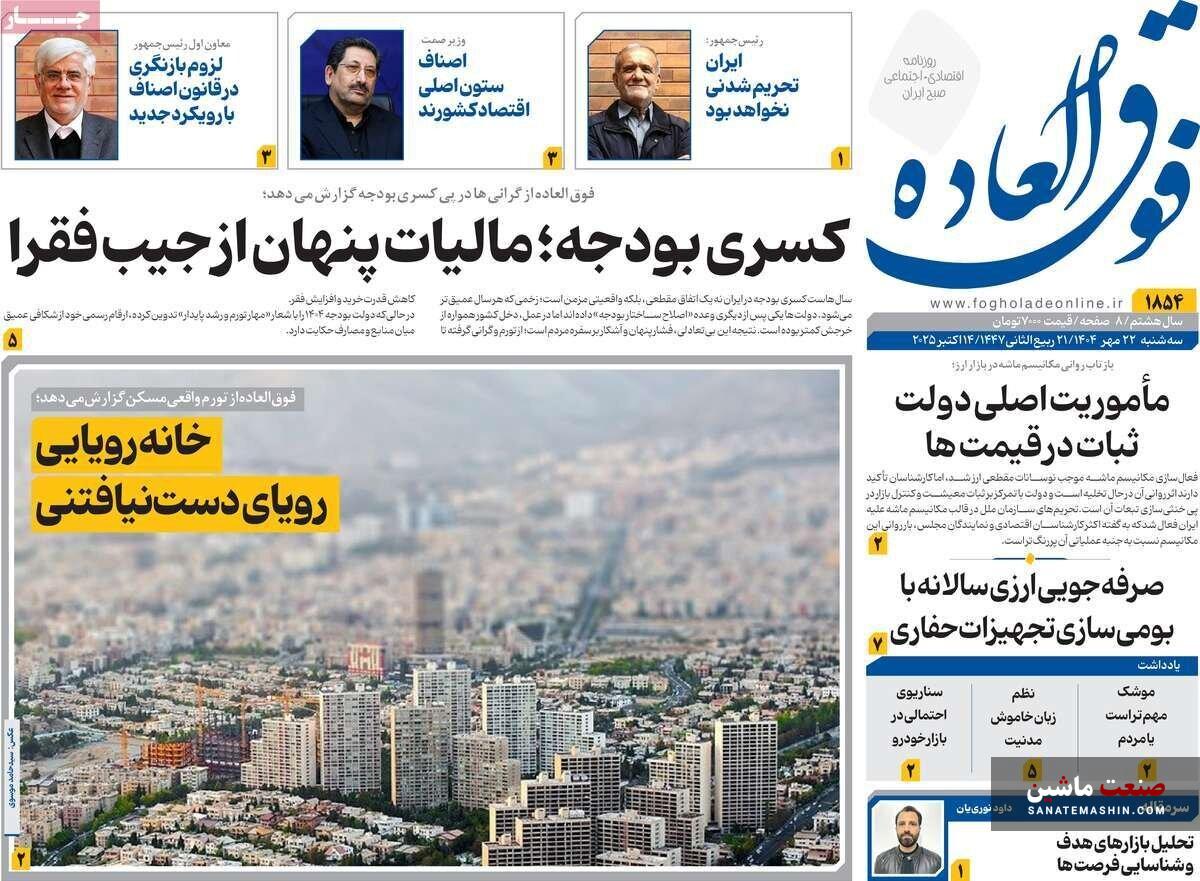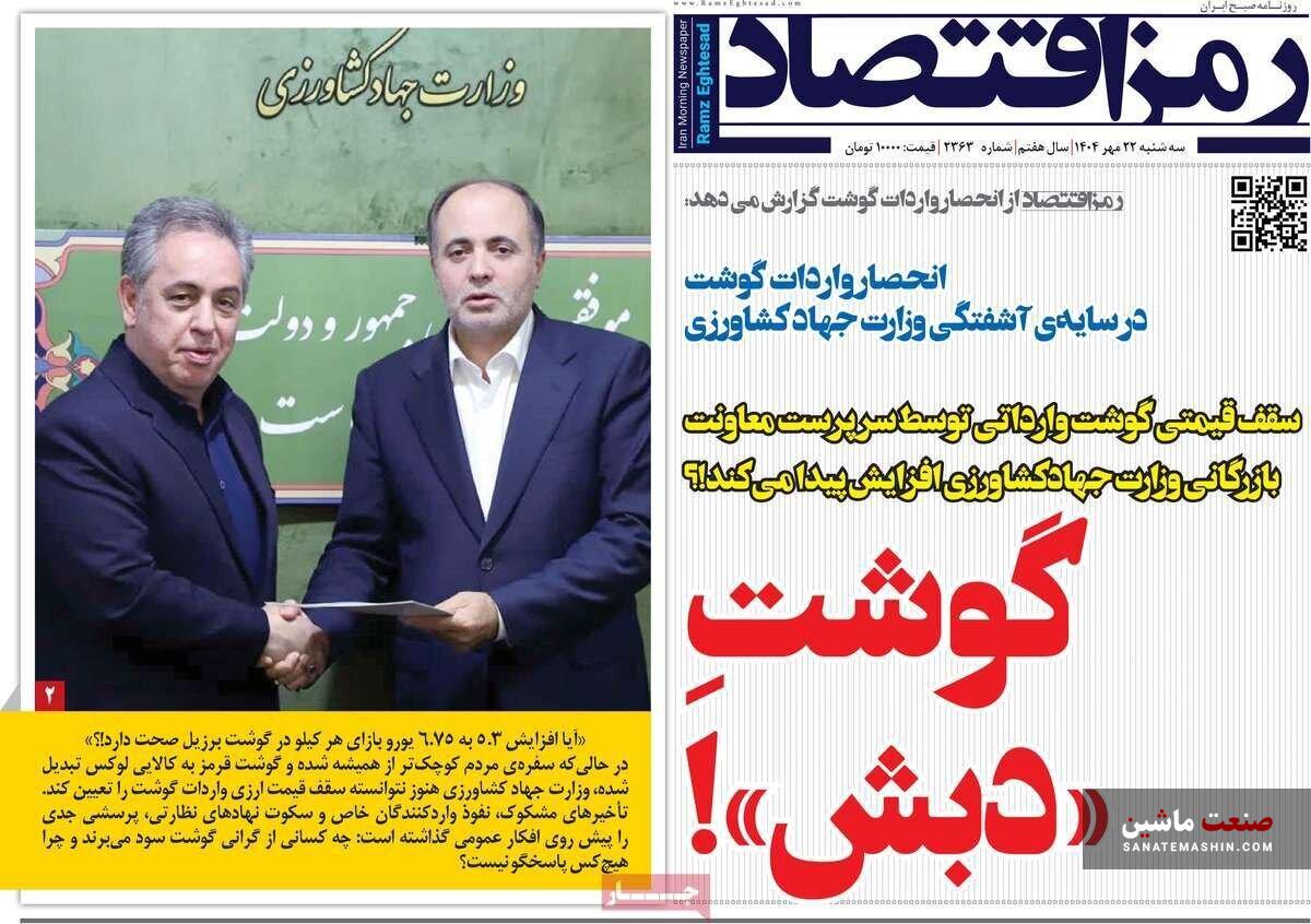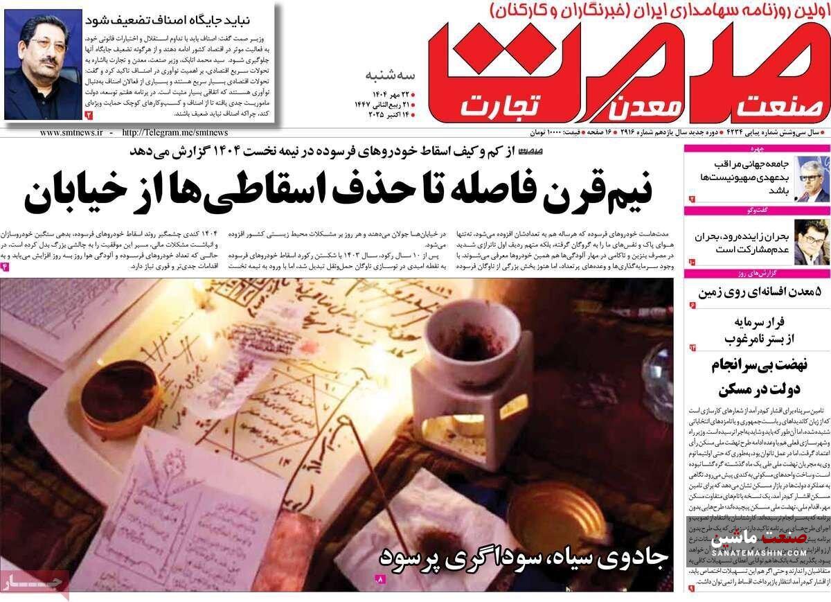 به گزارش صنعت ماشین ؛ صفحه نخست روزنامه های اقتصادی 22 مهر 1404 به شرح زیر است: