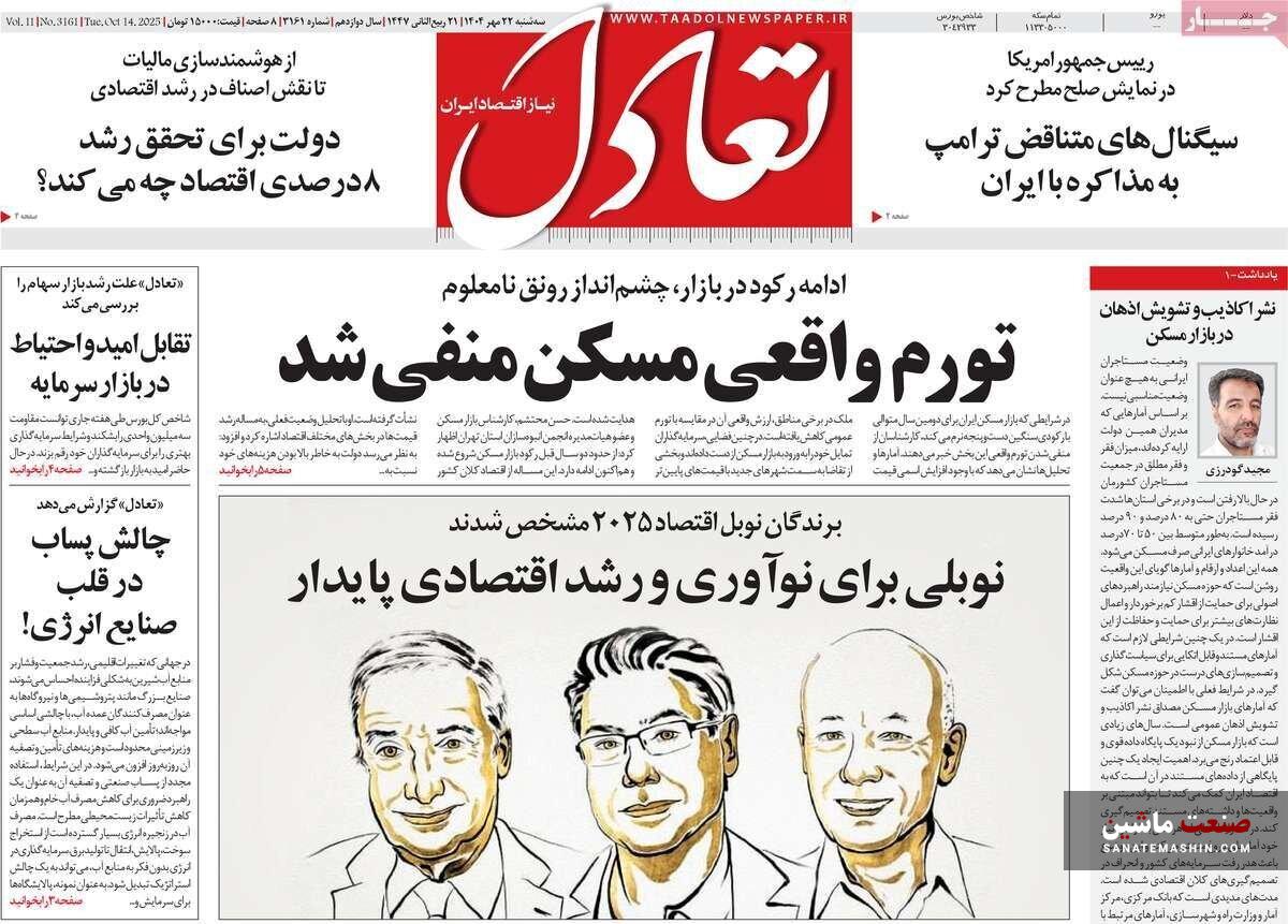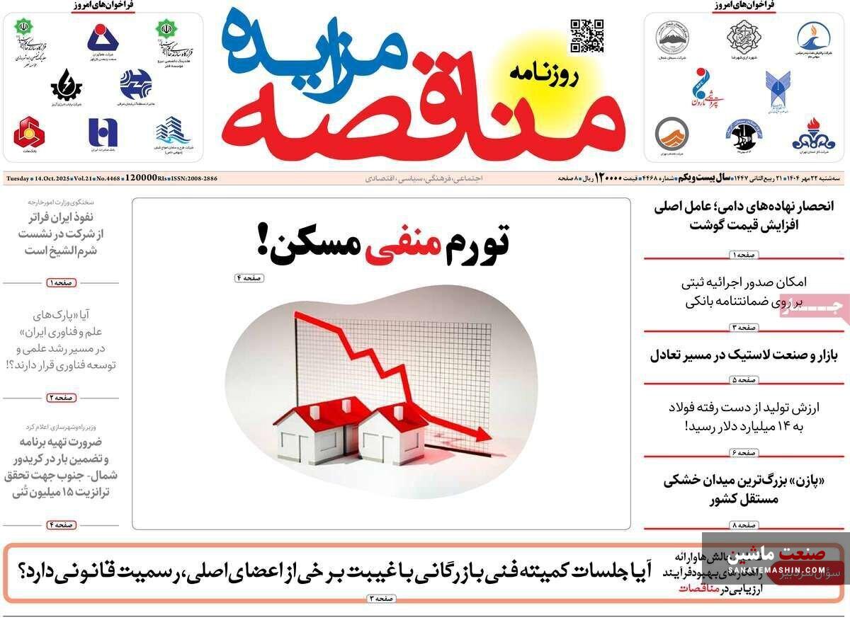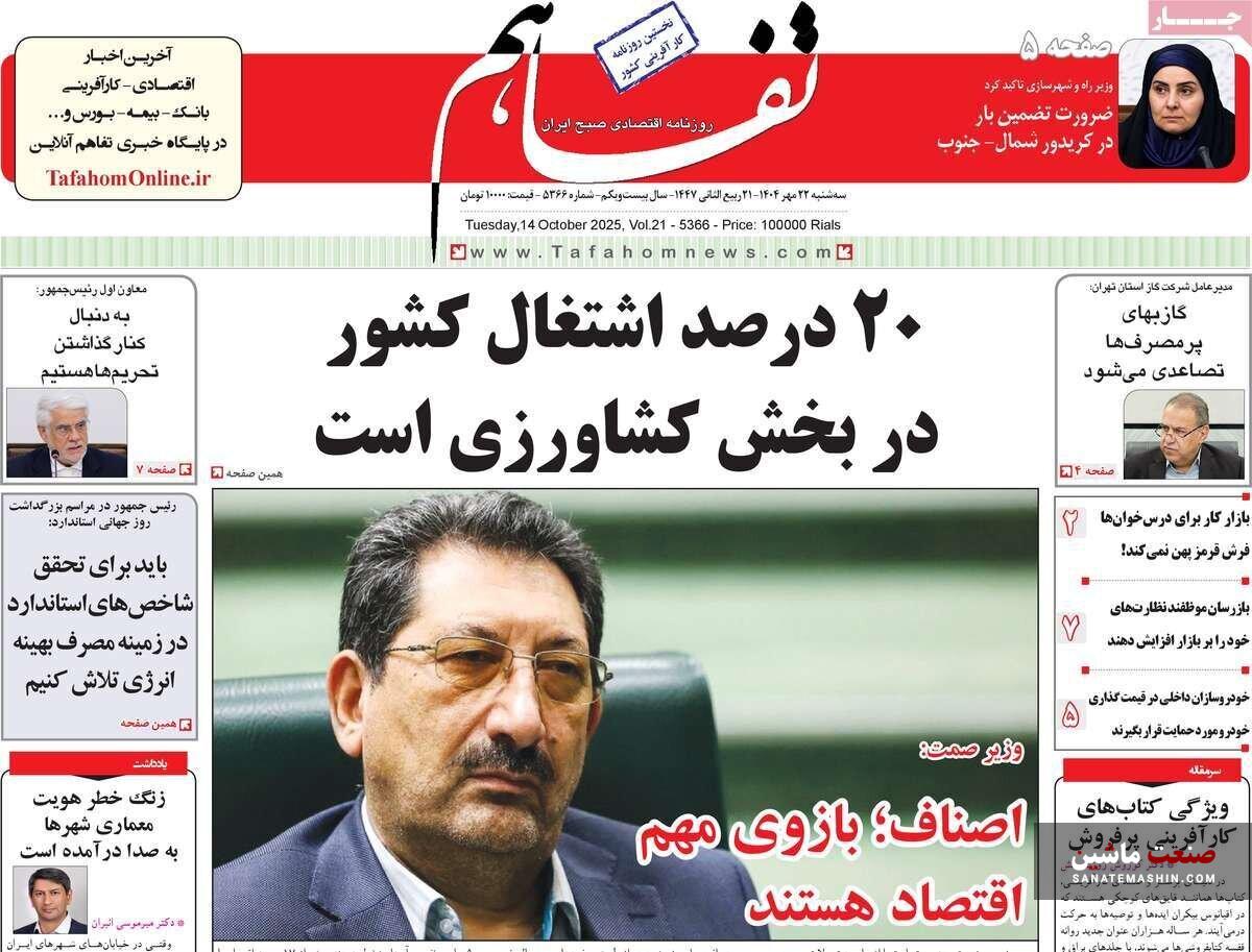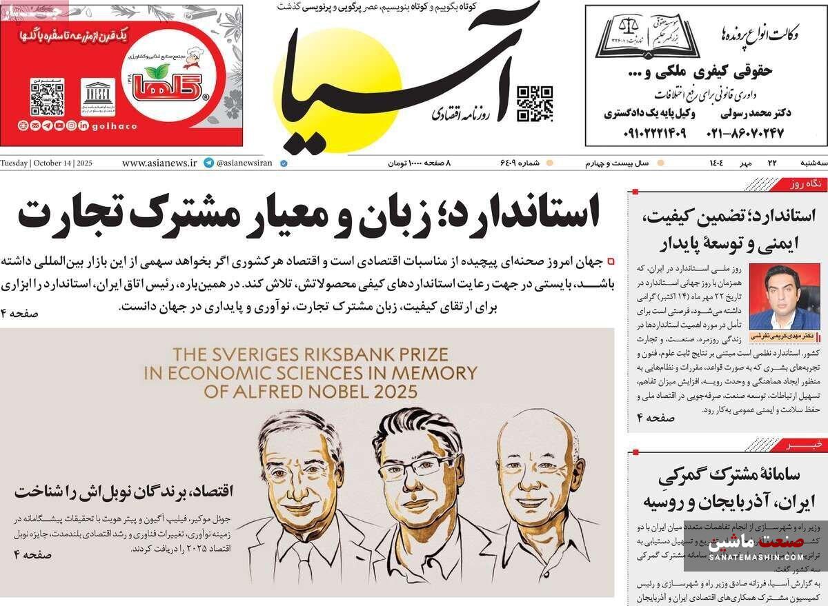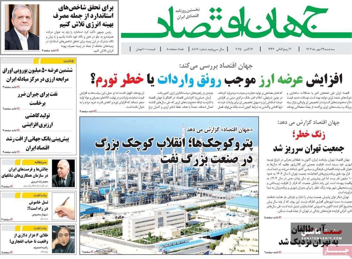 صفحه نخست روزنامه های اقتصادی 14 مهر 1404