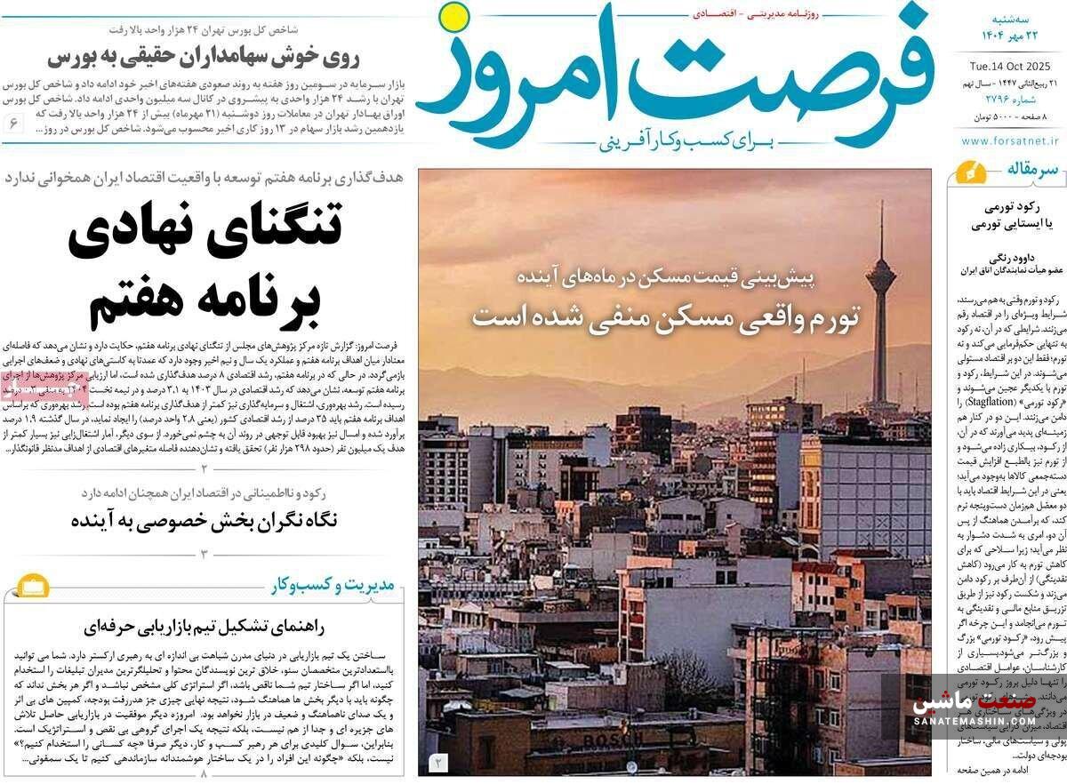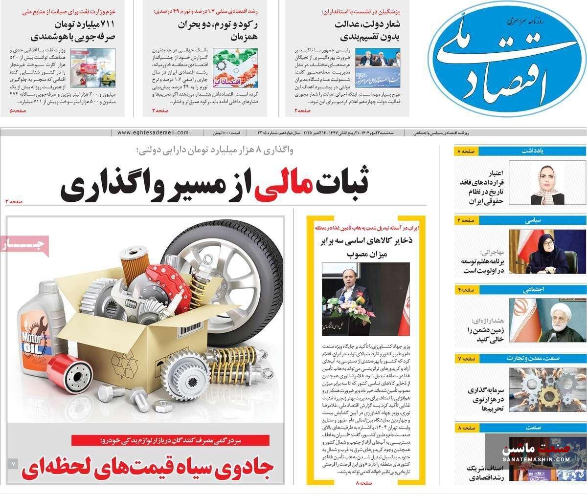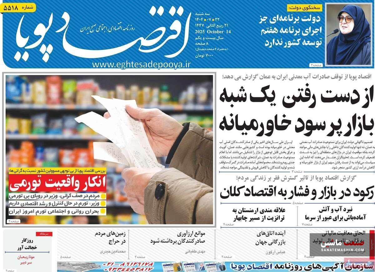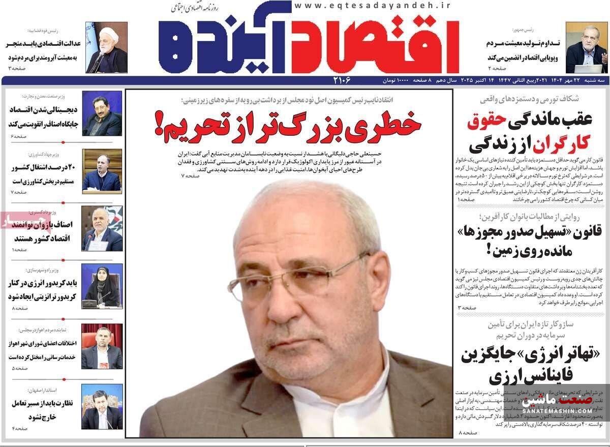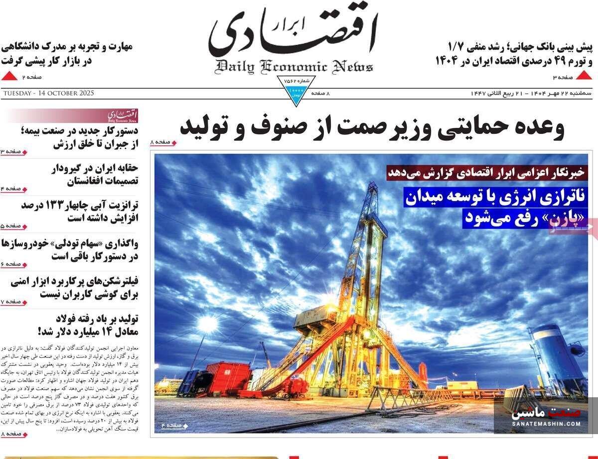 صفحه نخست روزنامه های اقتصادی 21 مهر 1404