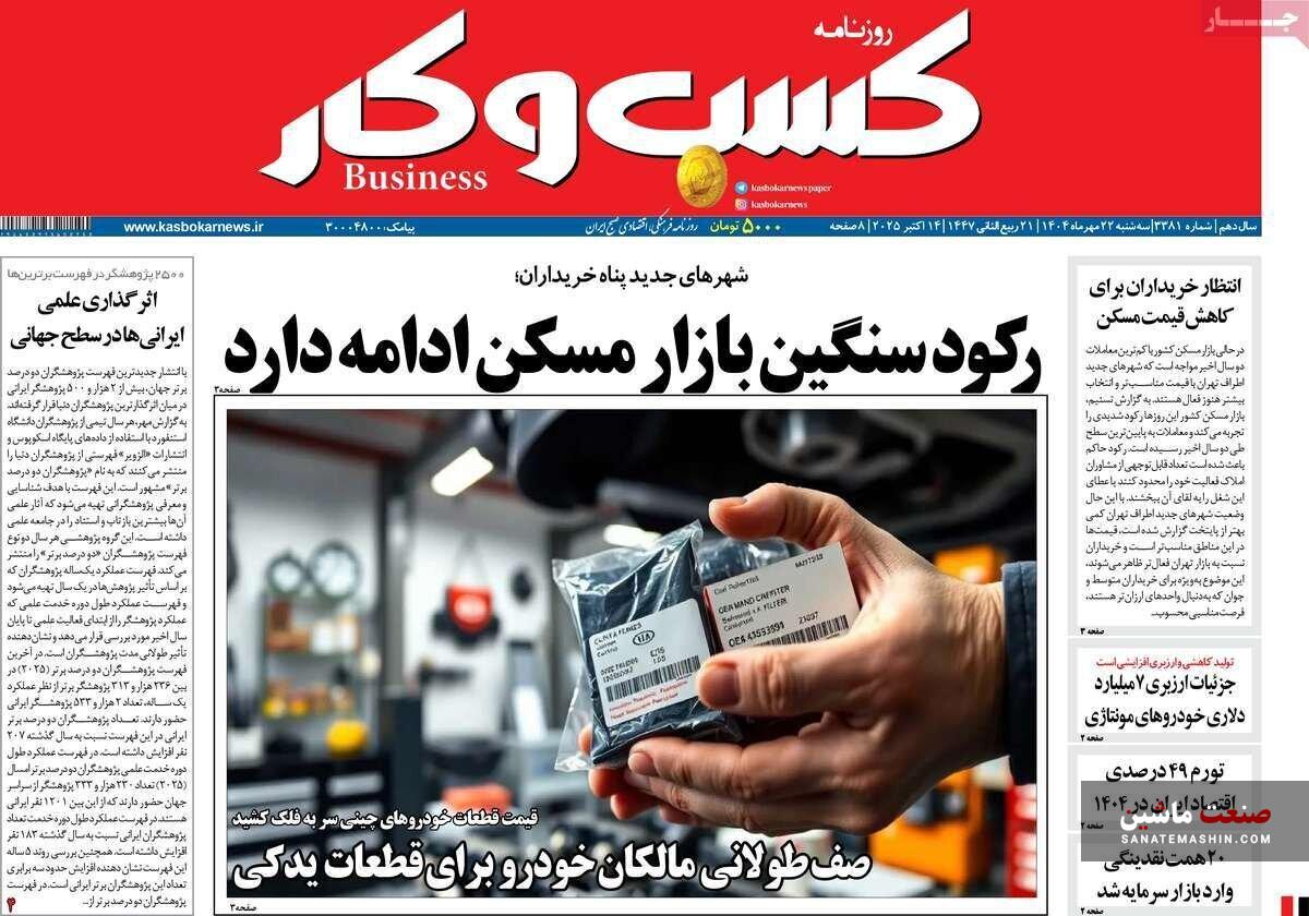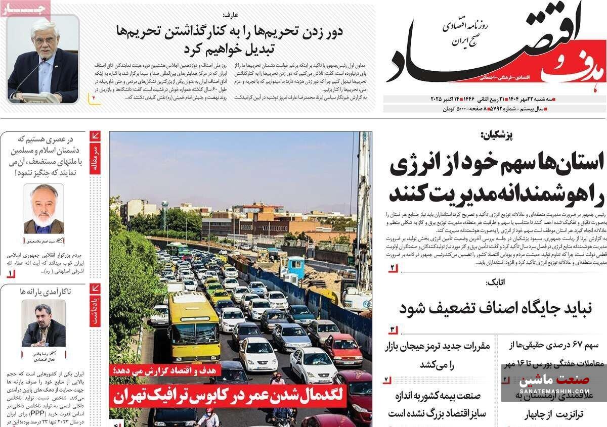 صفحه نخست روزنامه های اقتصادی 17 مهر 1404