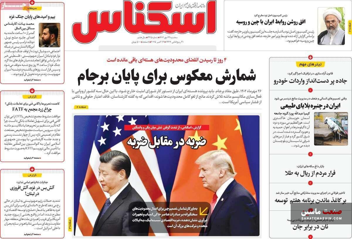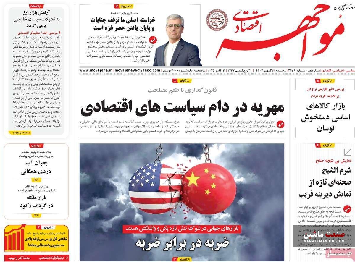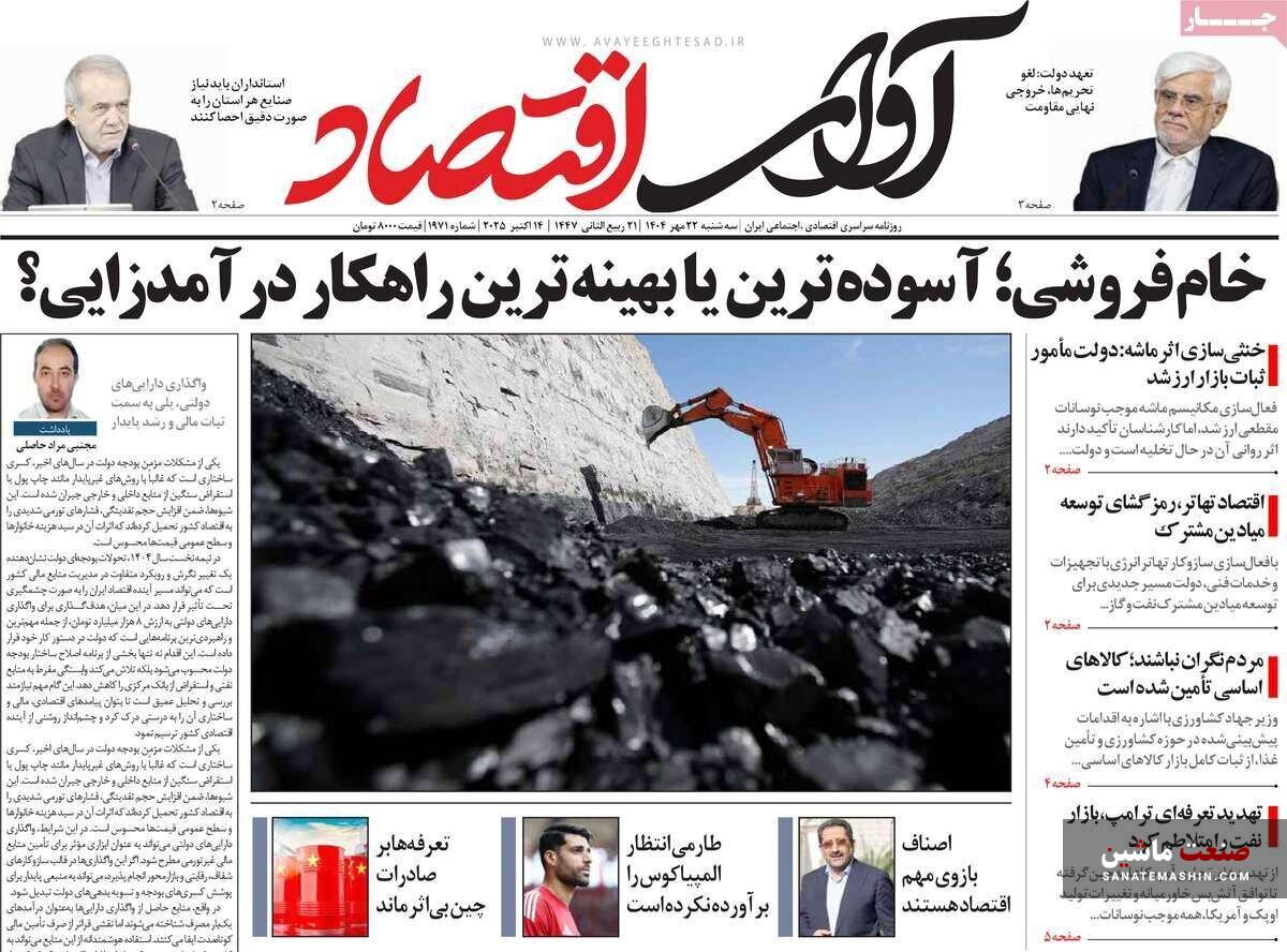 صفحه نخست روزنامه های اقتصادی 20 مهر 1404