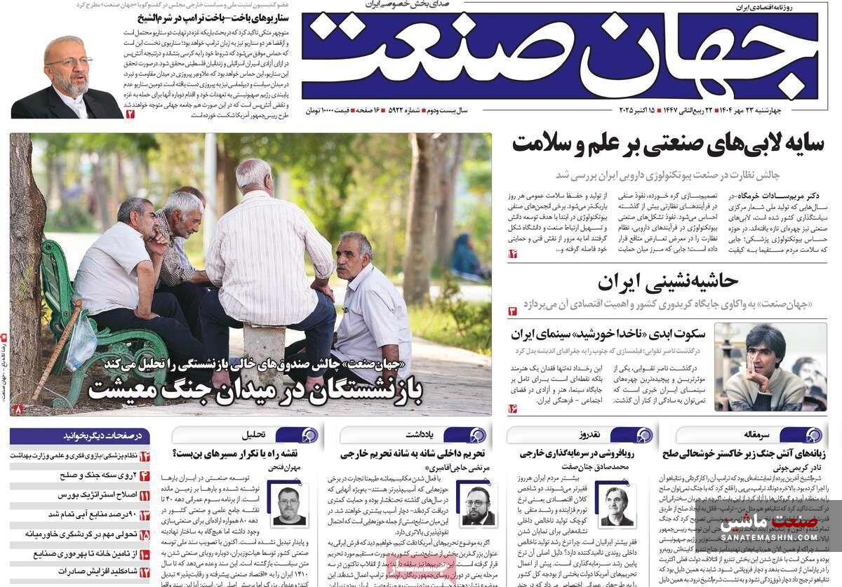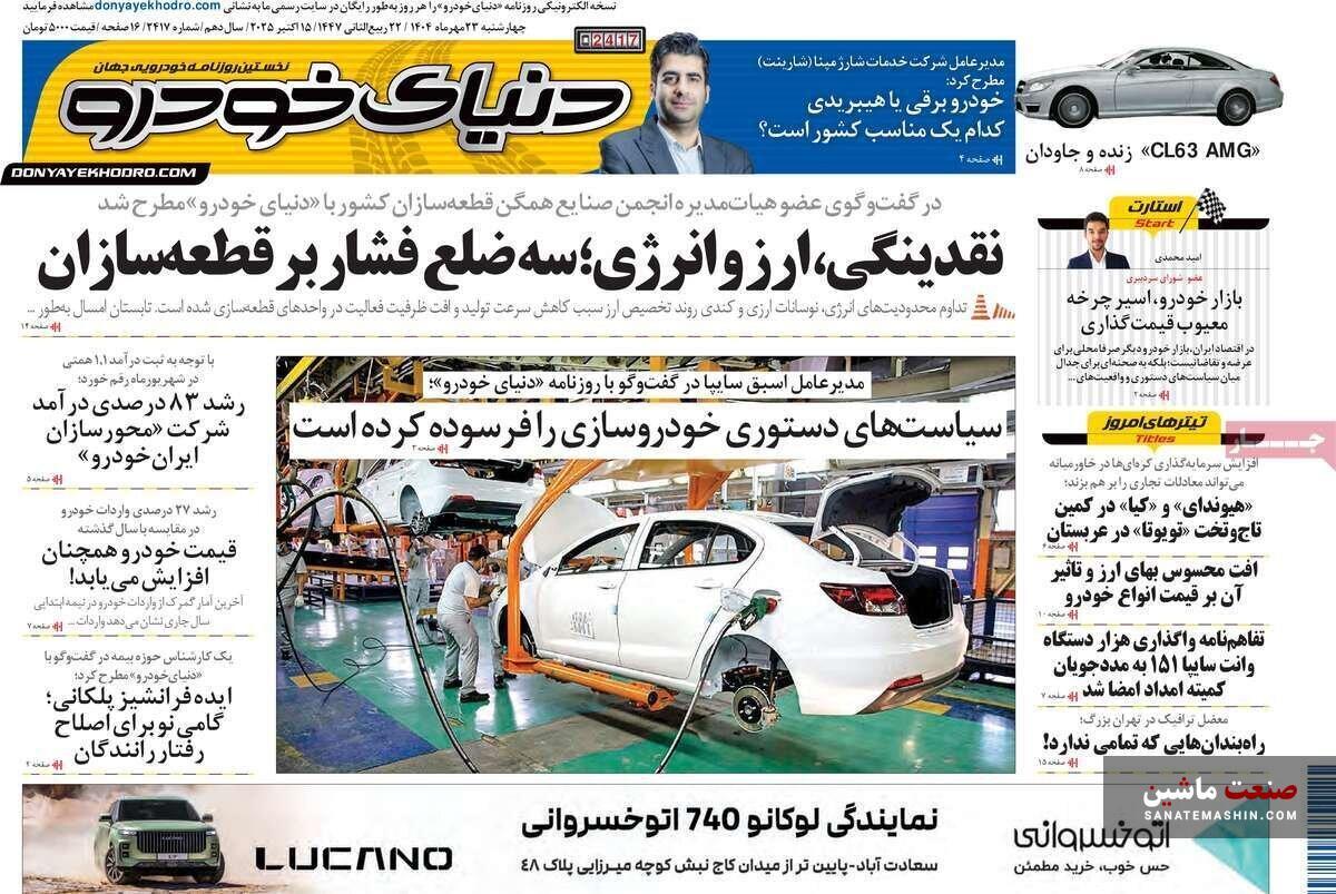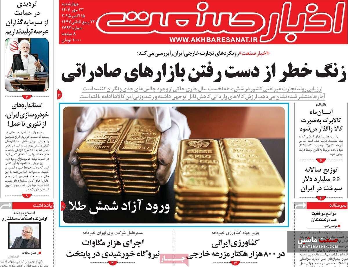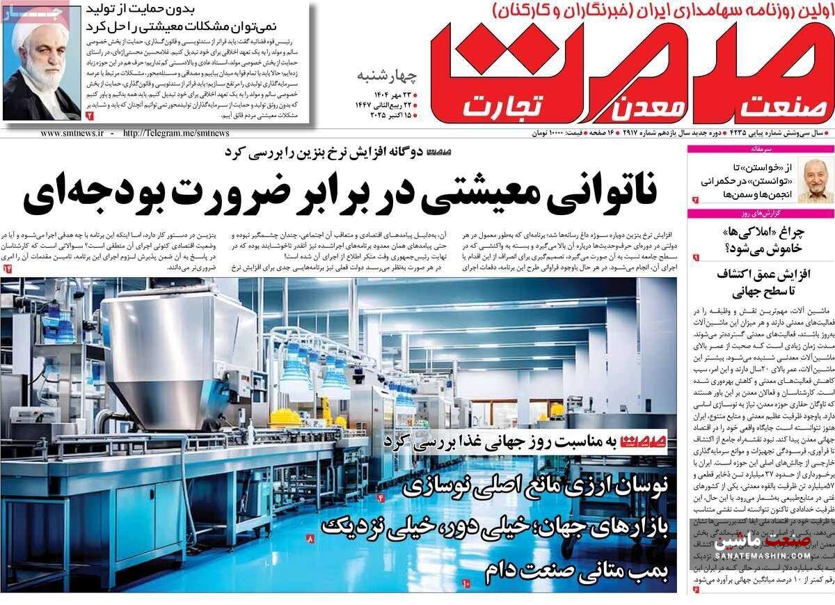 صنعت ماشین: صفحه نخست روزنامه های اقتصادی 23 مهر 1404 در صنعت ماشین منتشر شد.