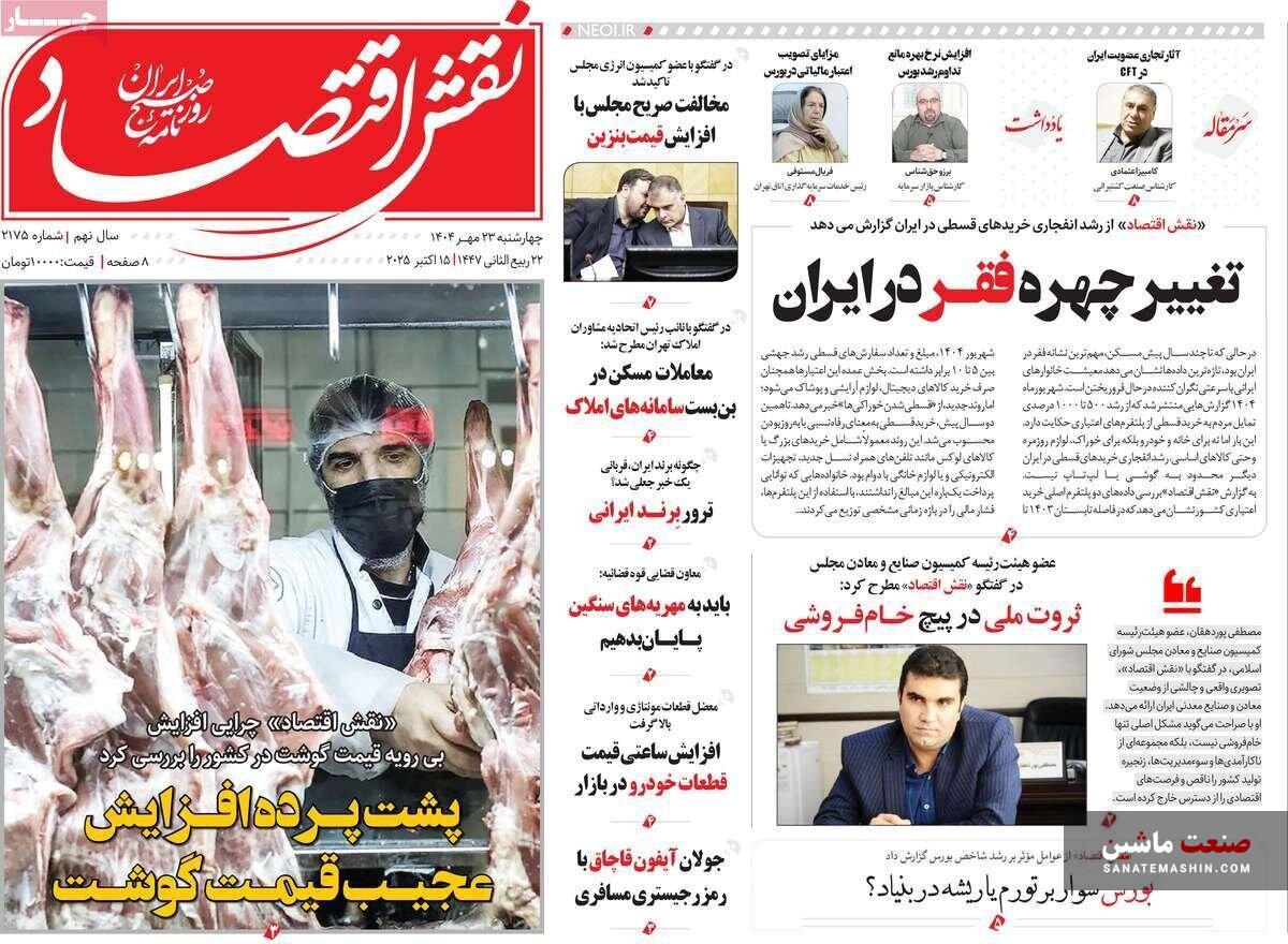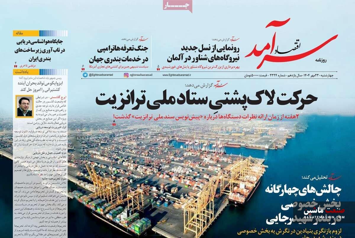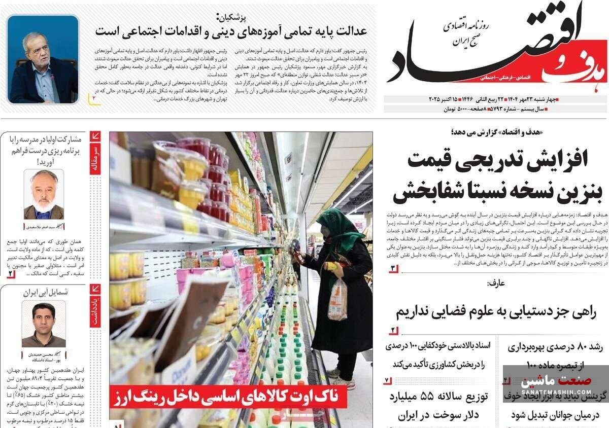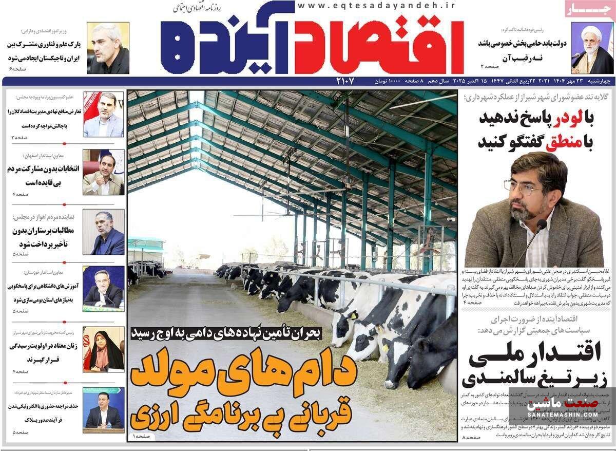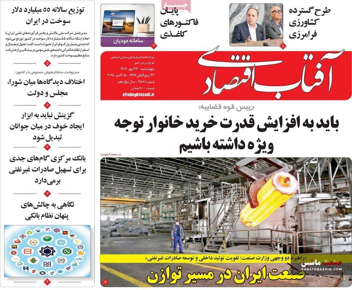 صفحه نخست روزنامه های اقتصادی 23 مهر 1404