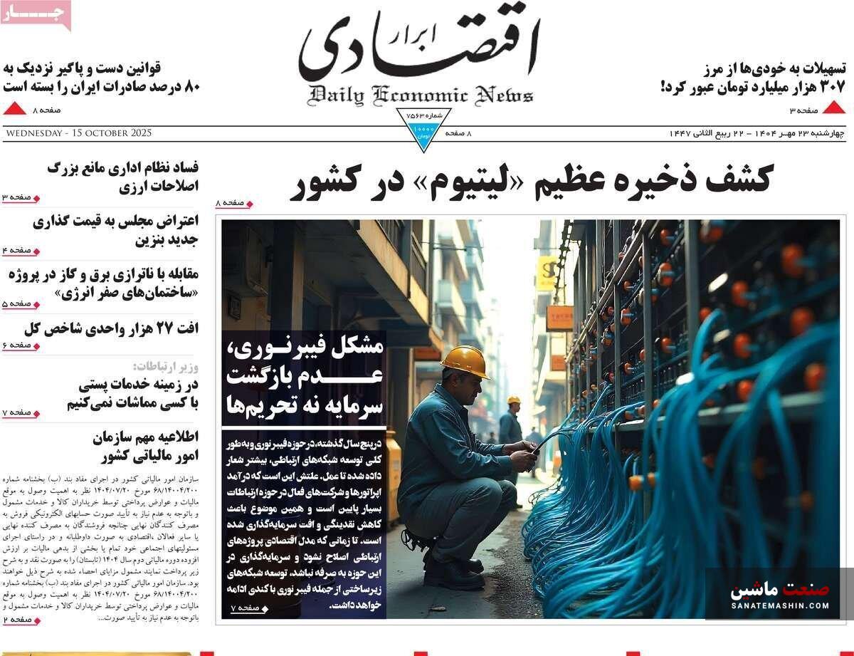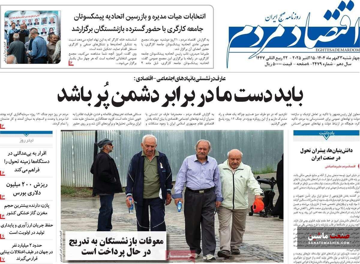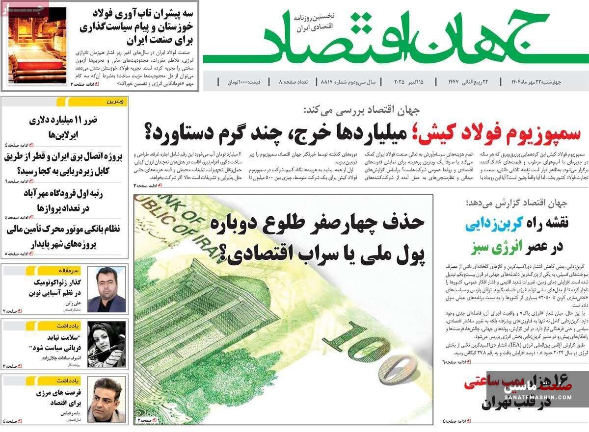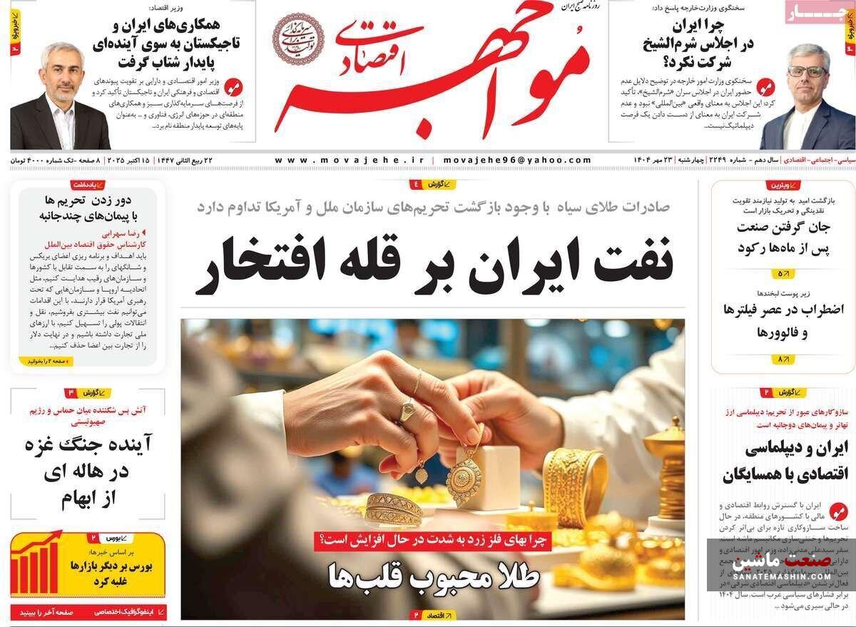 صفحه نخست روزنامه های اقتصادی 23 مهر 1404
