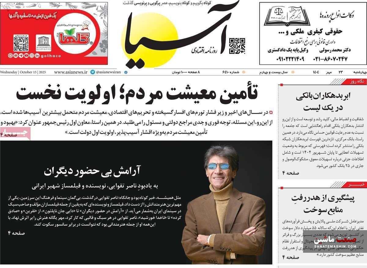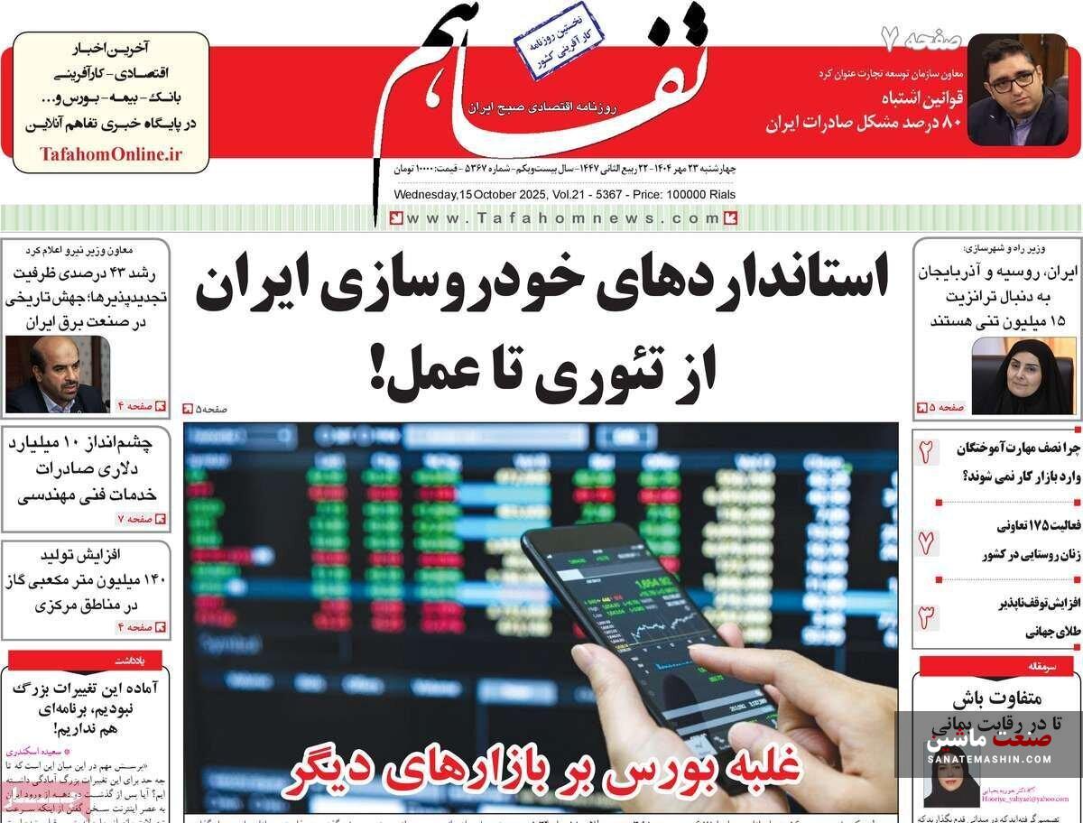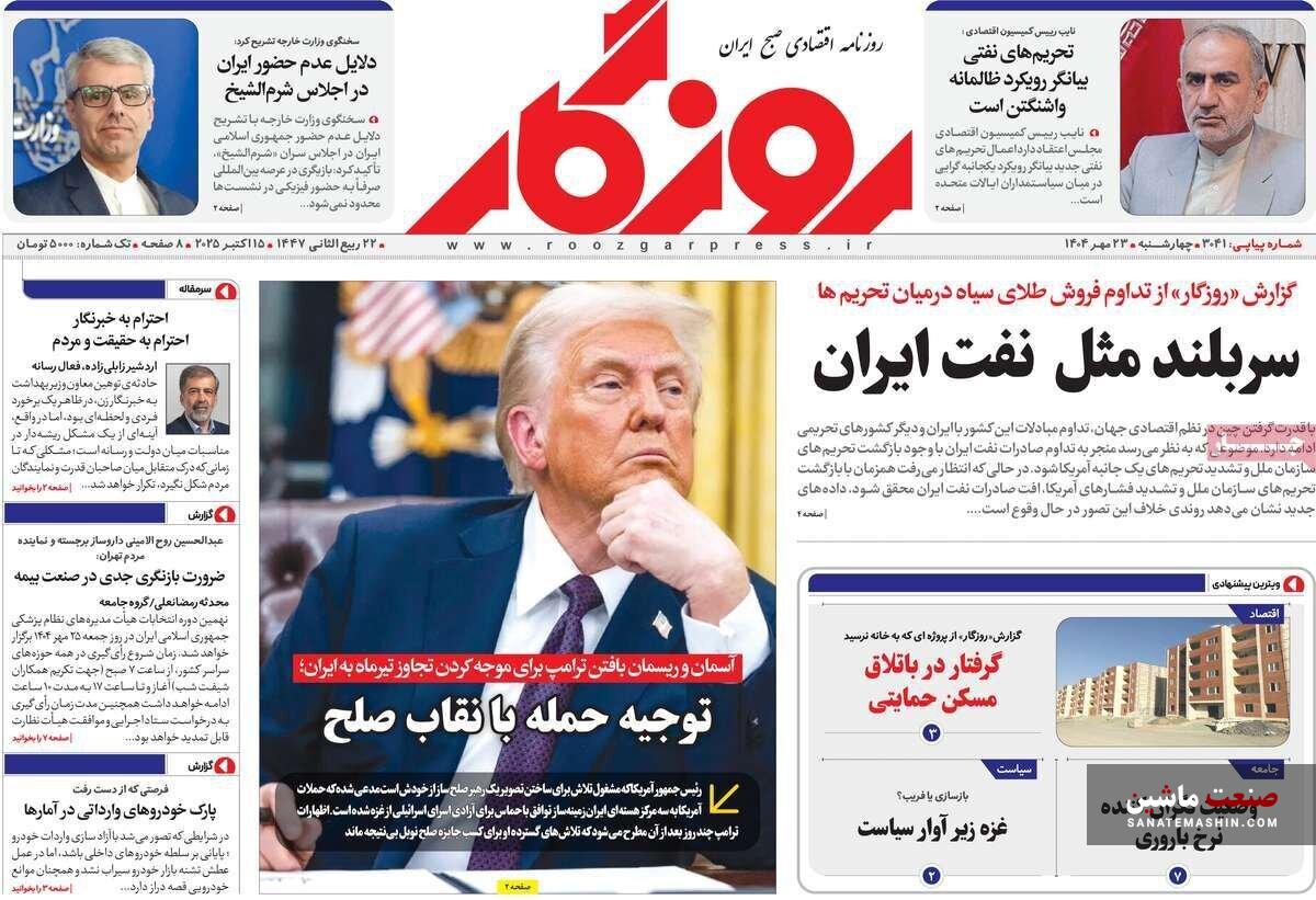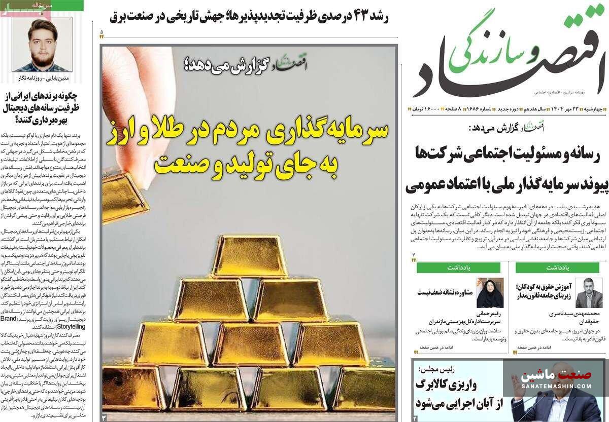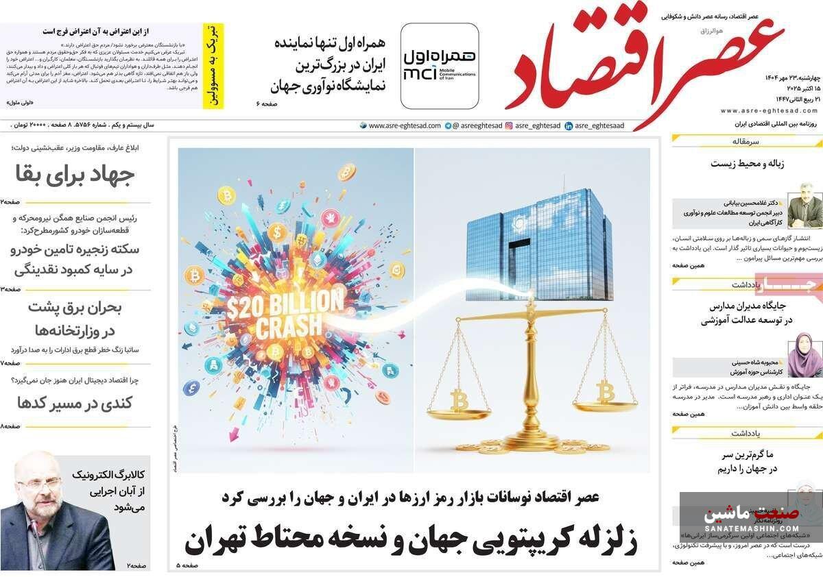 صفحه نخست روزنامه های اقتصادی 23 مهر 1404
