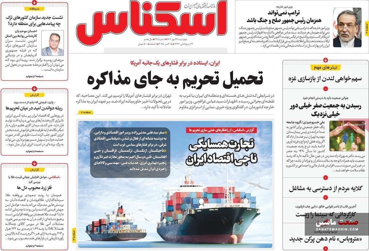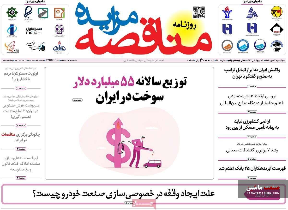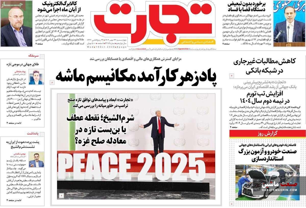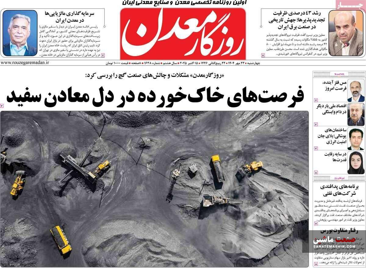 به گزارش صنعت ماشین ؛ صفحه نخست روزنامه های اقتصادی 23 مهر 1404 به شرح زیر است: