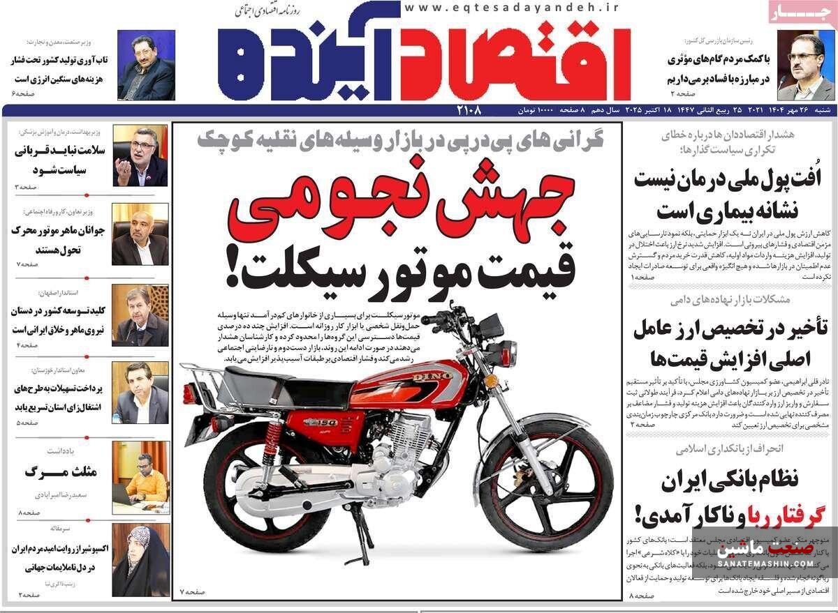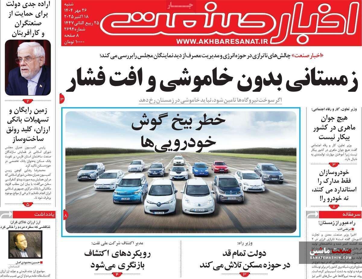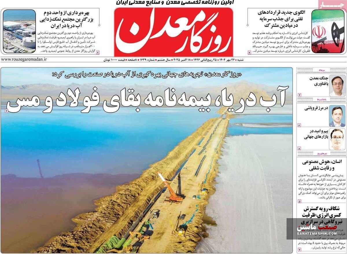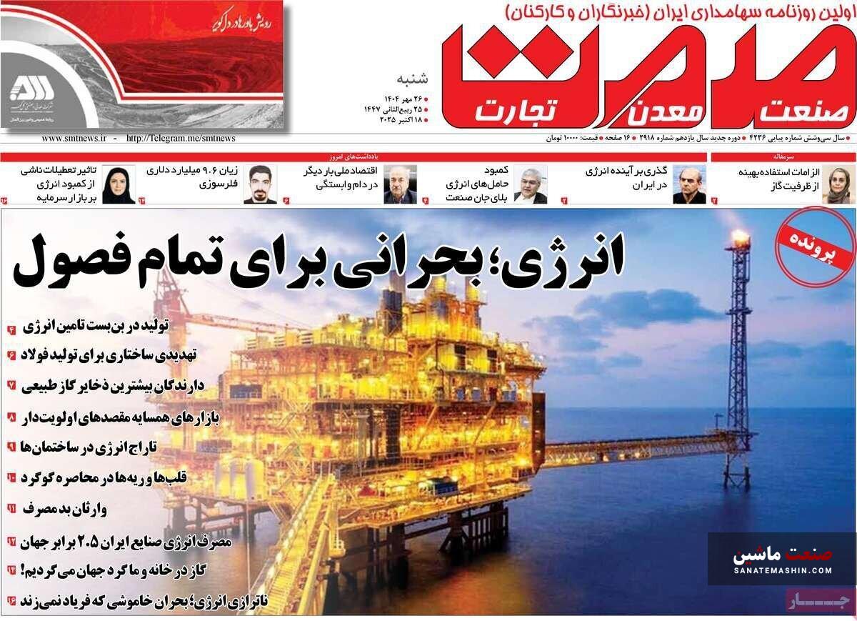 به گزارش صنعت ماشین ؛ صفحه نخست روزنامه های اقتصادی 25 مهر 1404 به شرح زیر است: