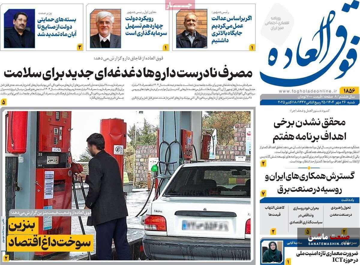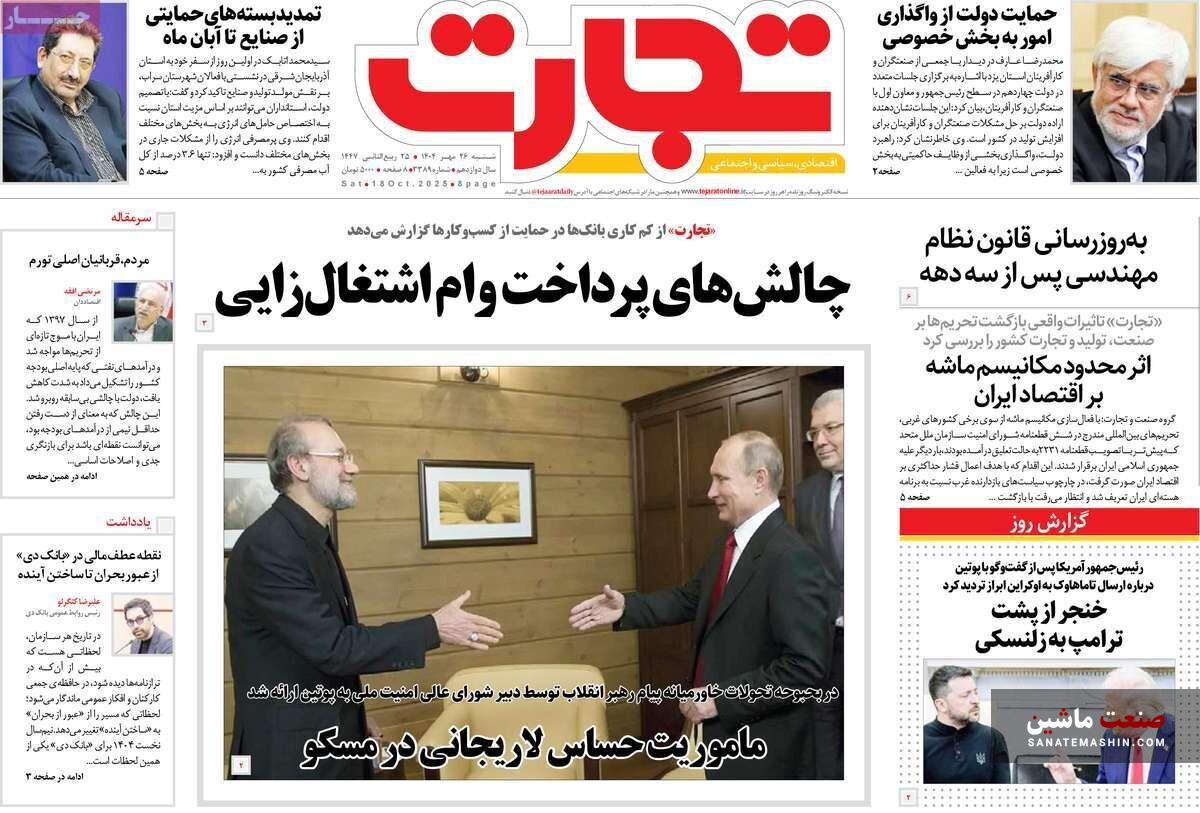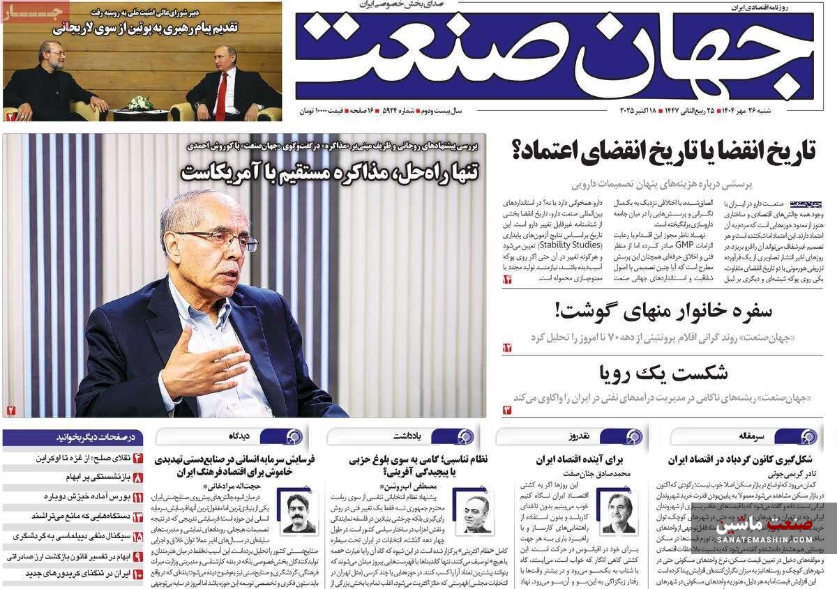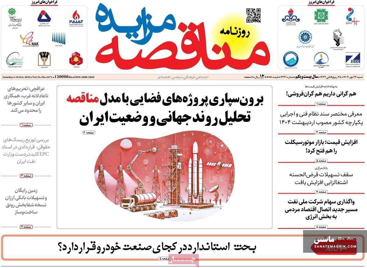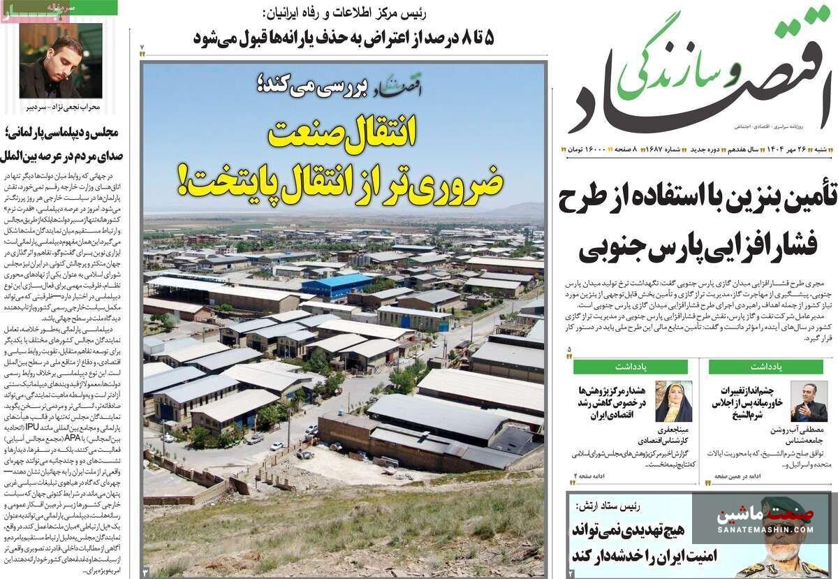 به گزارش صنعت ماشین ؛ صفحه نخست روزنامه های اقتصادی 25 مهر 1404 به شرح زیر است: