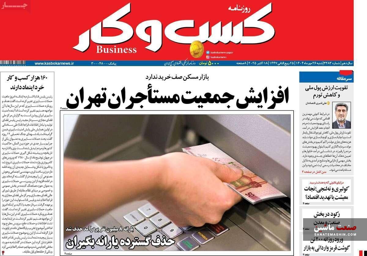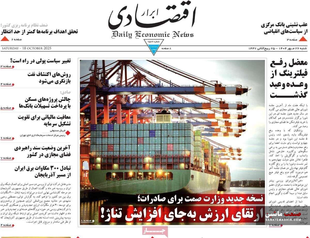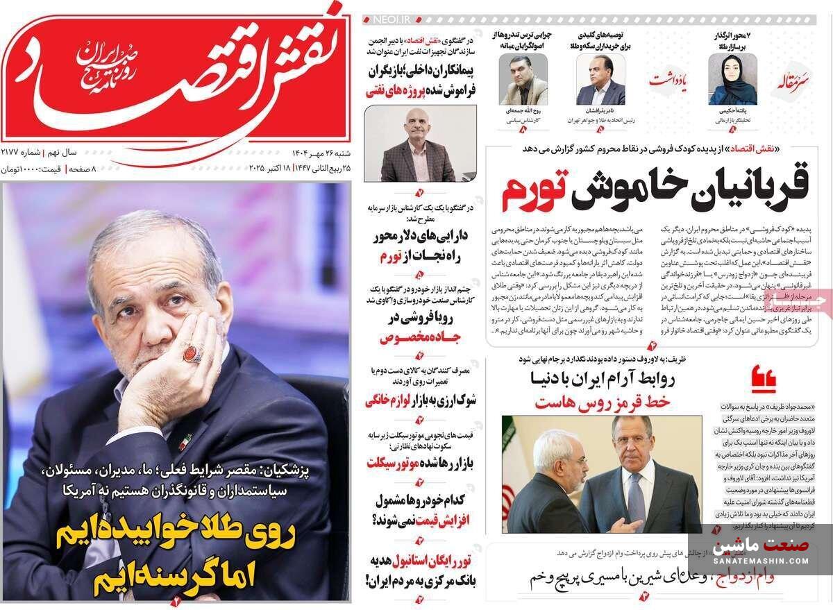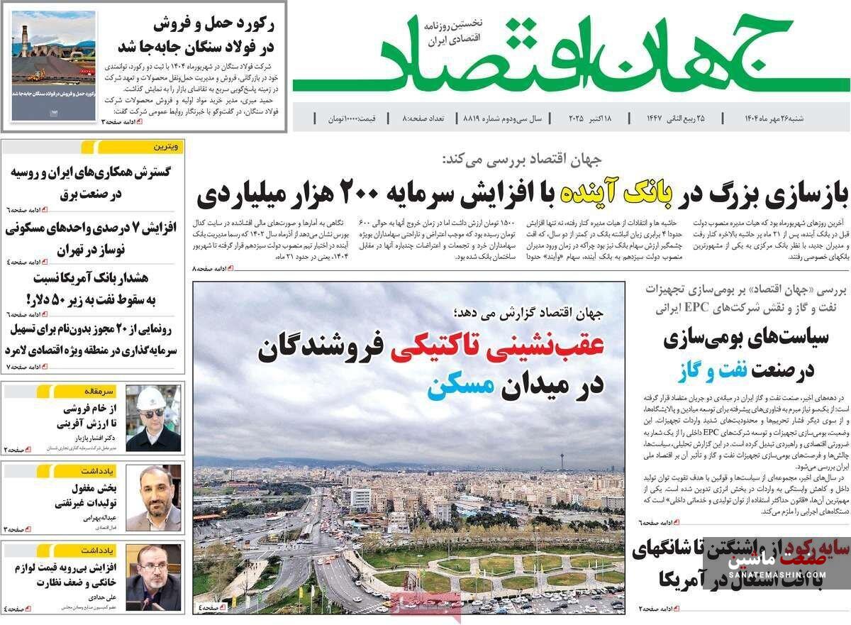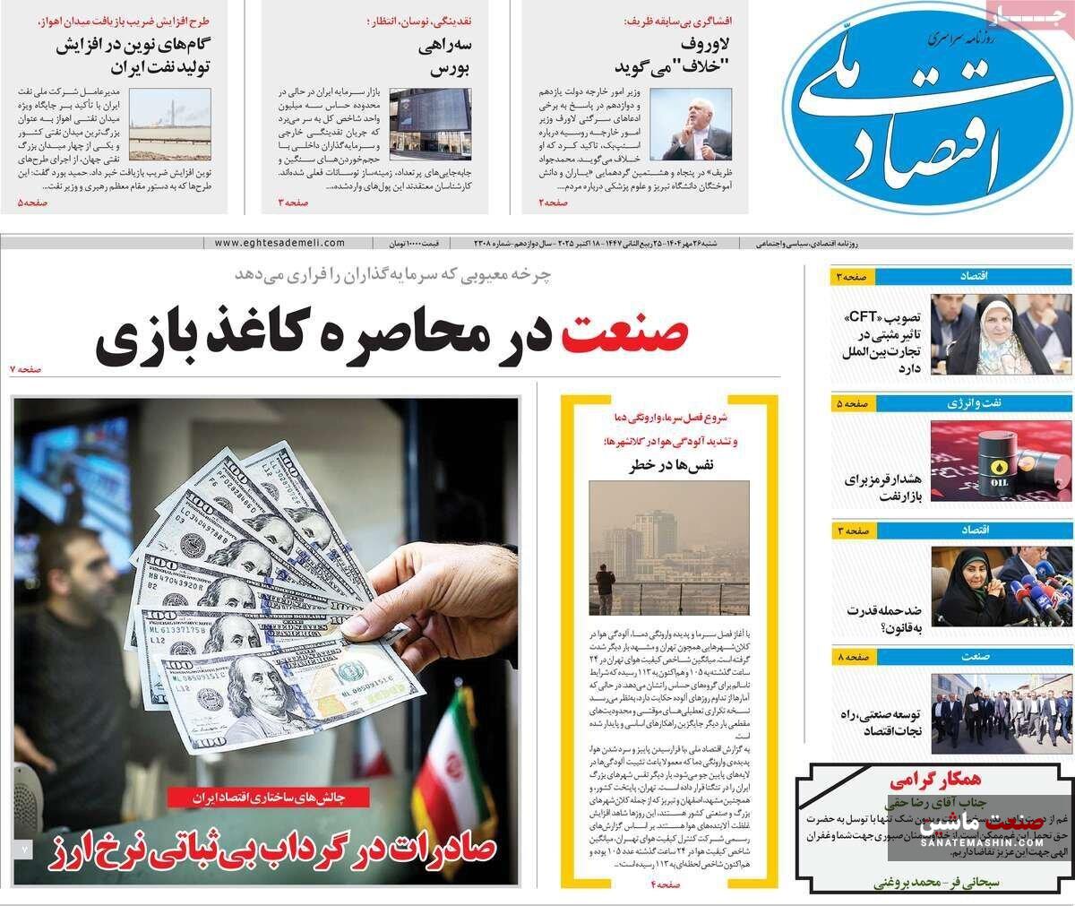 صفحه نخست روزنامه های اقتصادی 19 مهر 1404