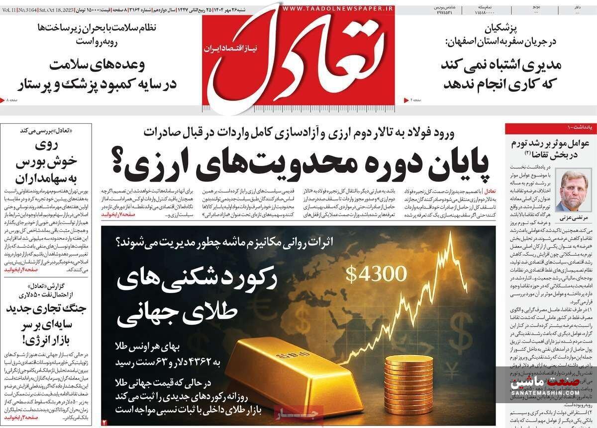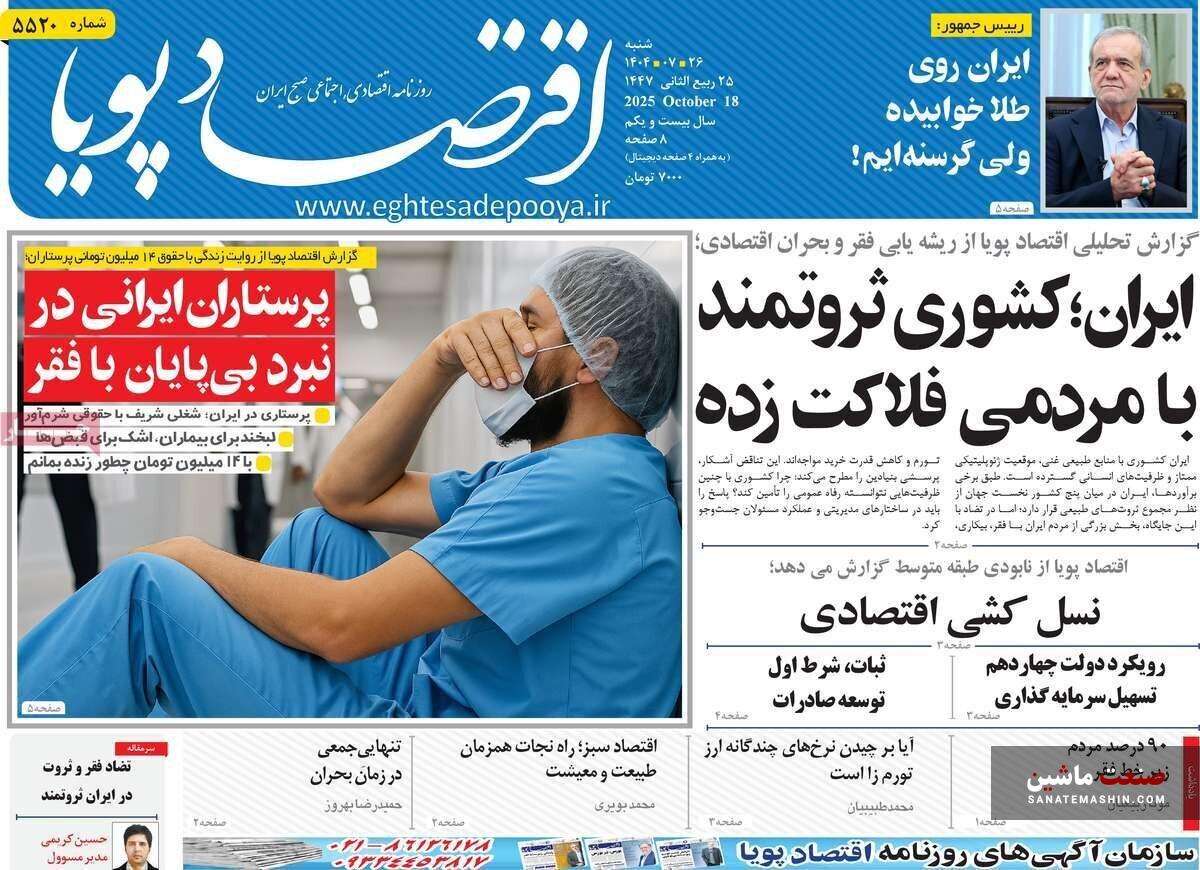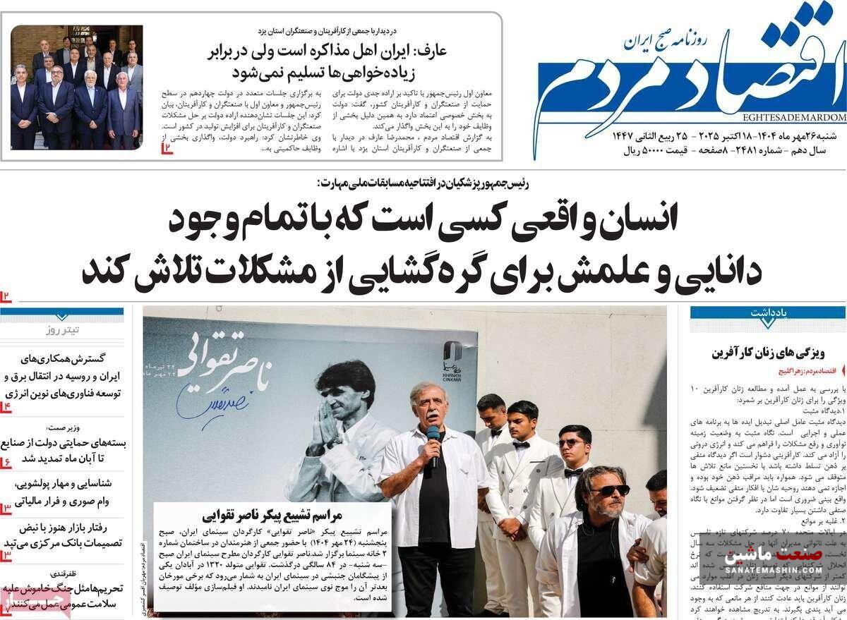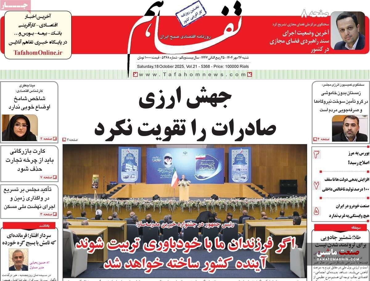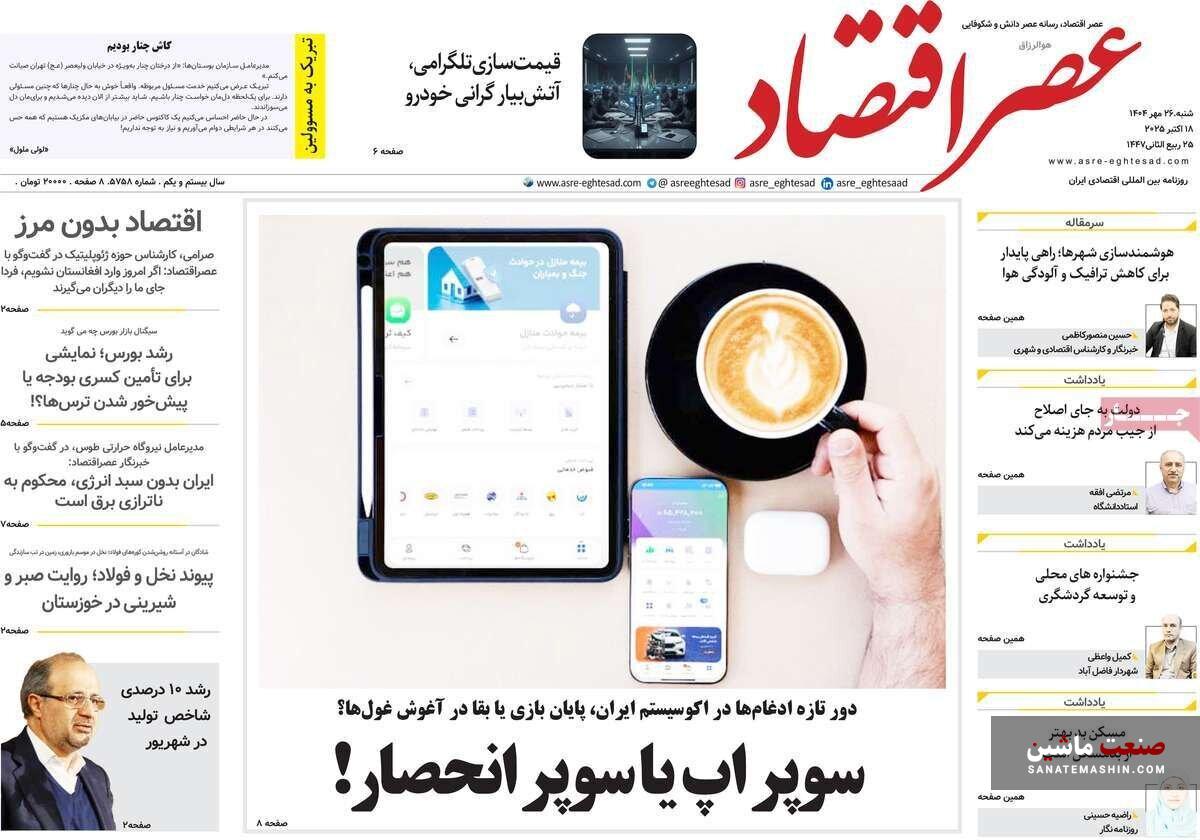 صفحه نخست روزنامه های اقتصادی 19 مهر 1404