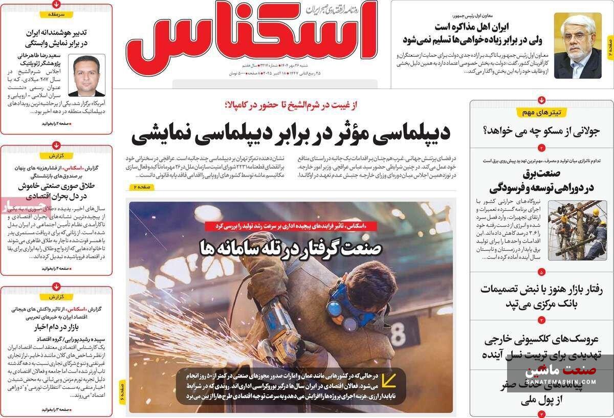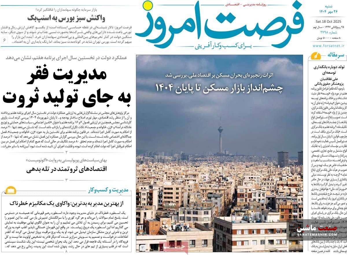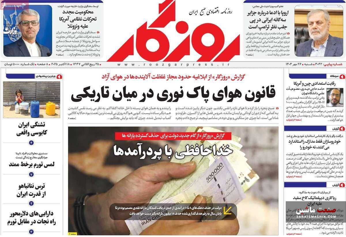 صفحه نخست روزنامه های اقتصادی 20 مهر 1404