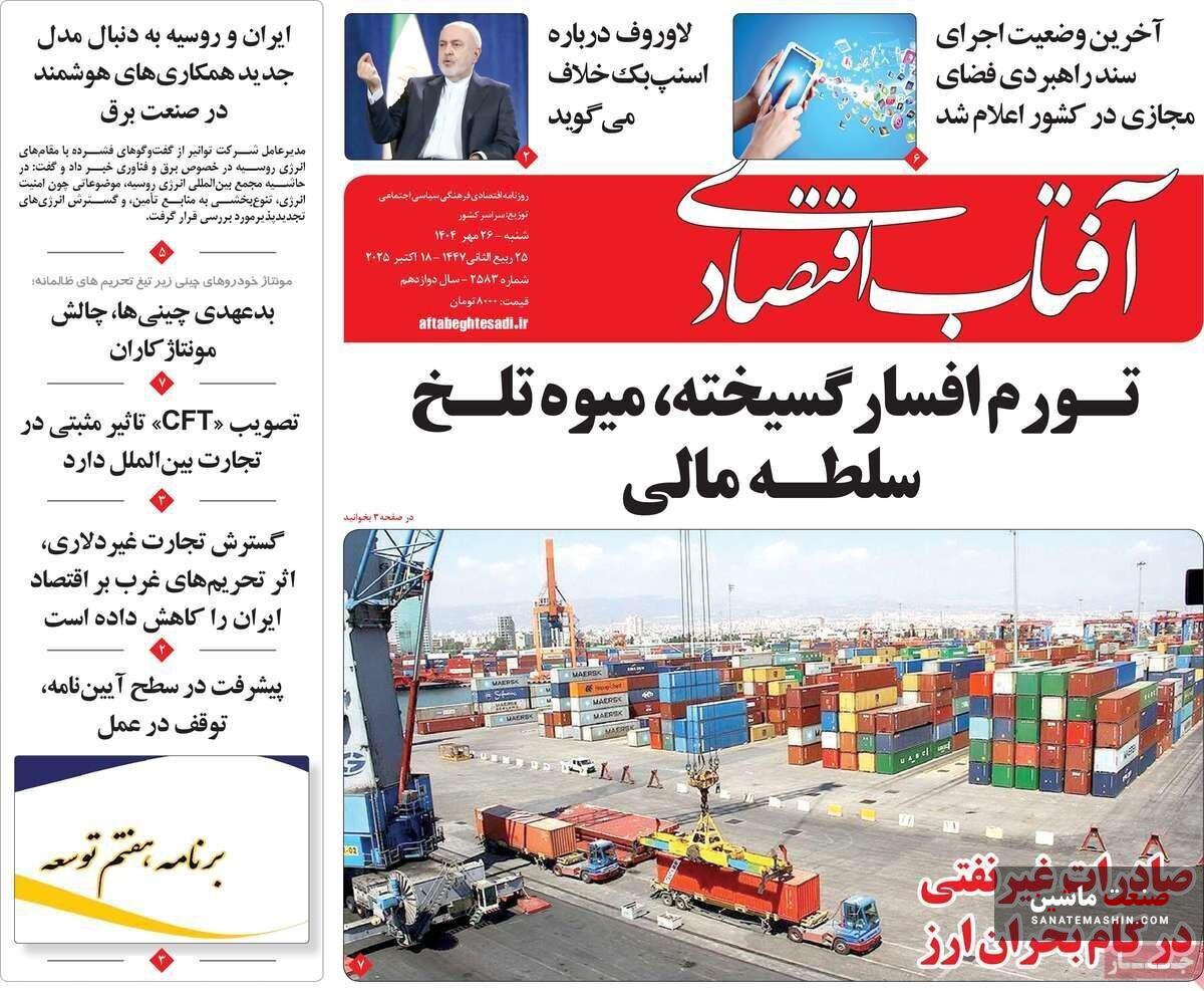 صفحه نخست روزنامه های اقتصادی 24 مهر 1404