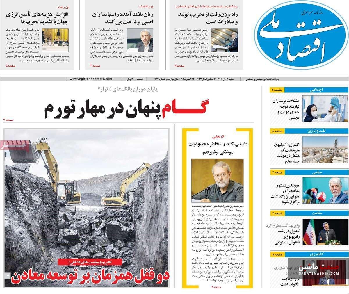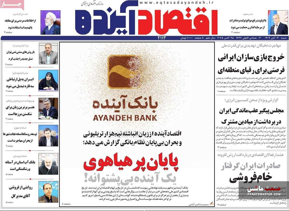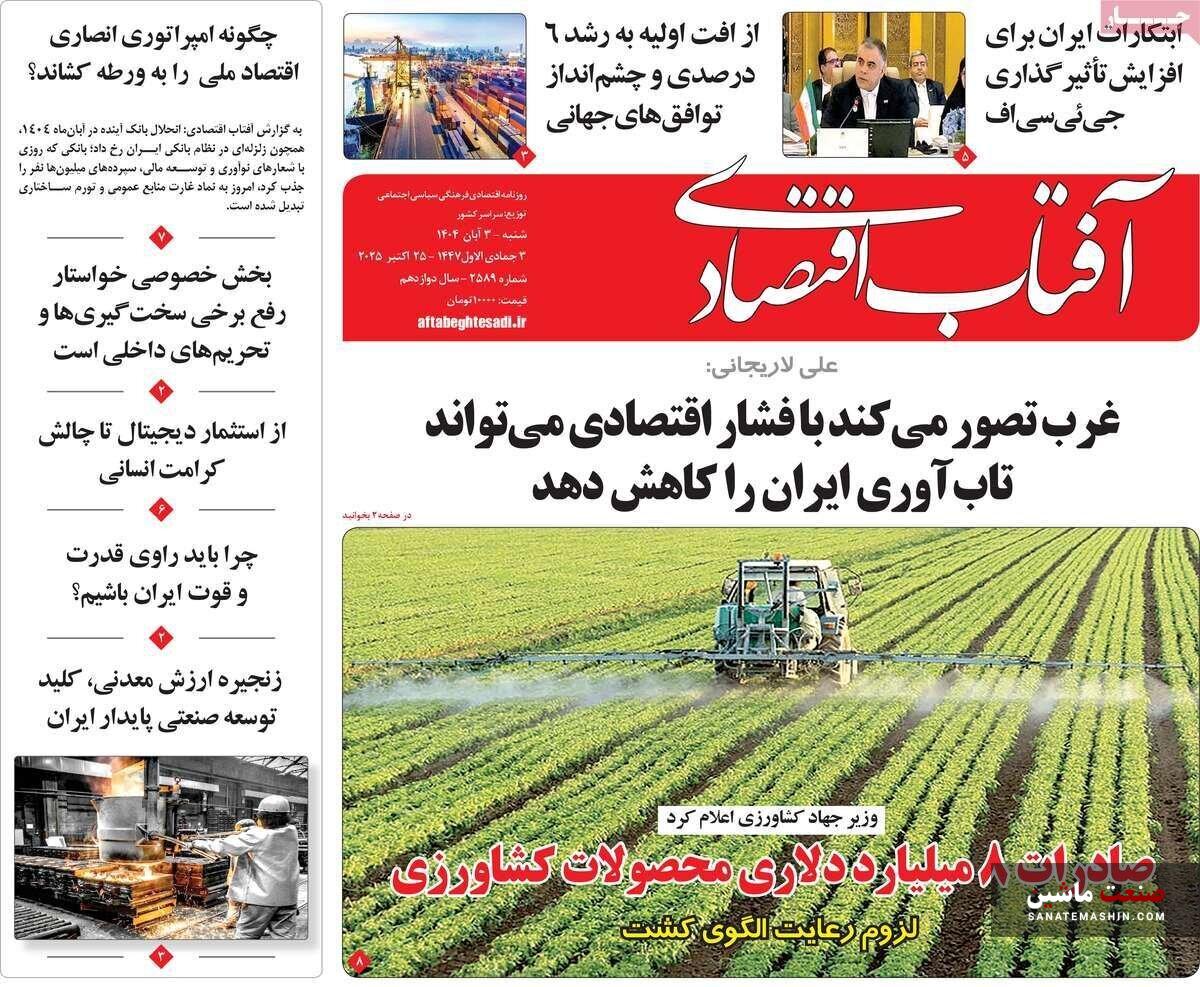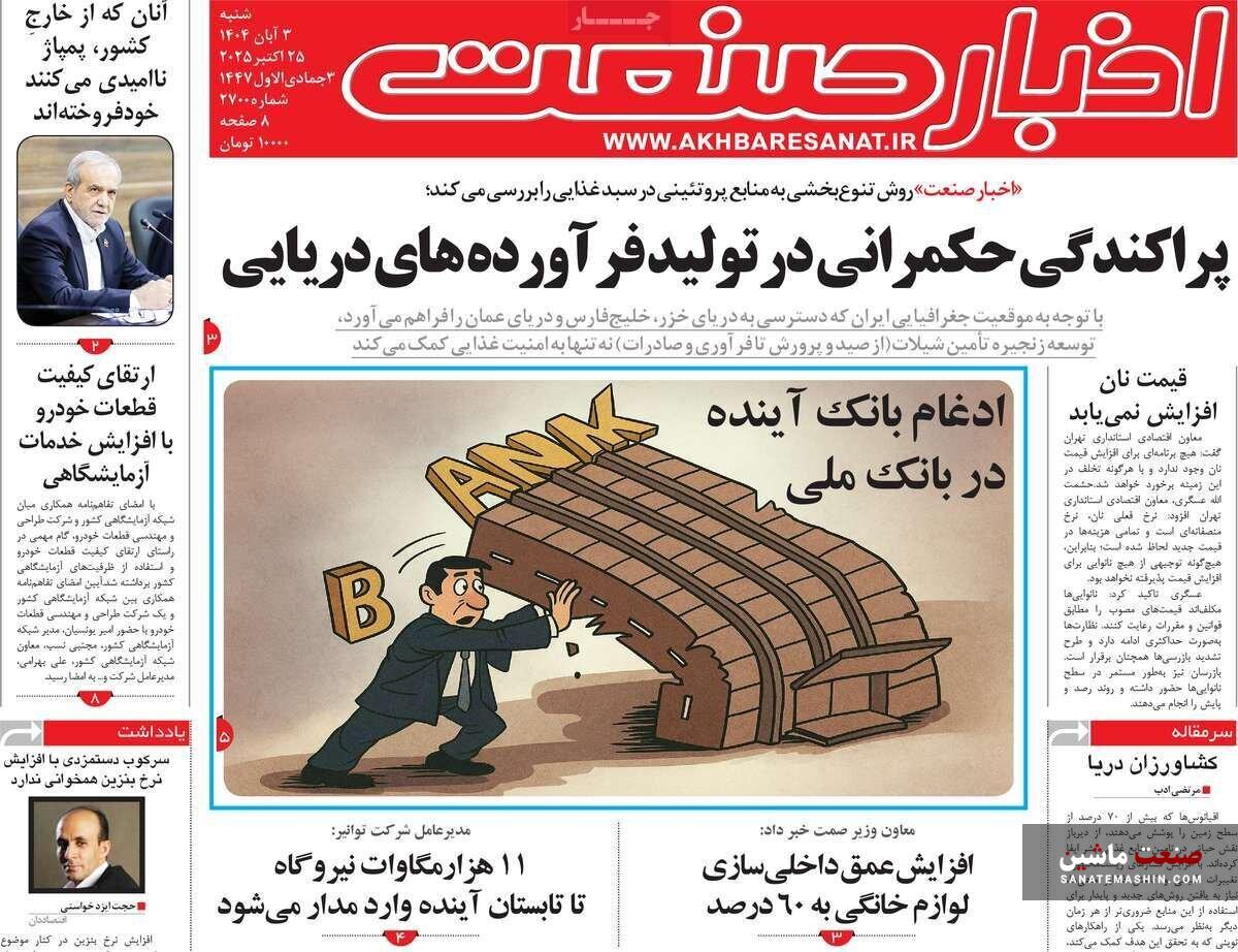 به گزارش صنعت ماشین ؛ صفحه نخست روزنامه های اقتصادی 3 آبان 1404 به شرح زیر است: