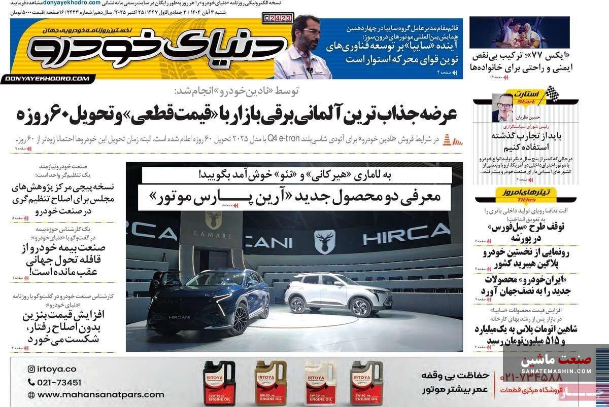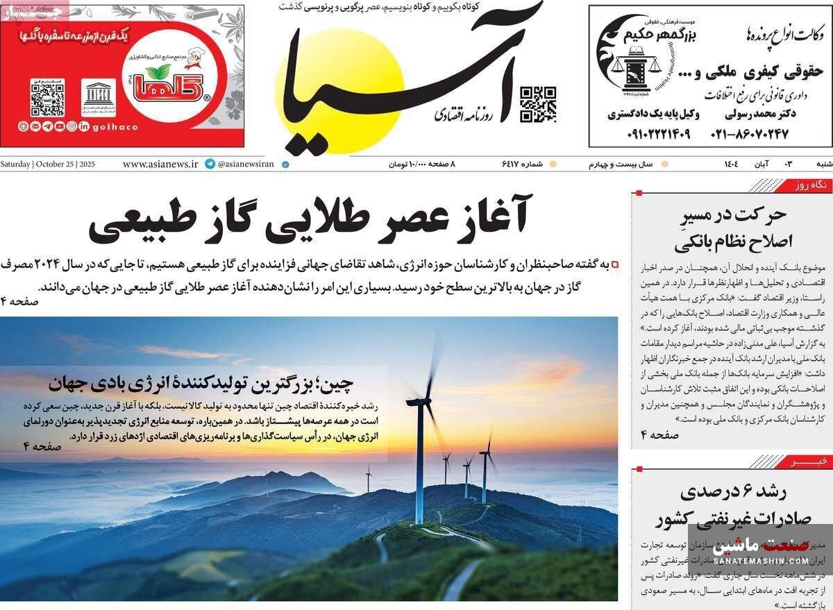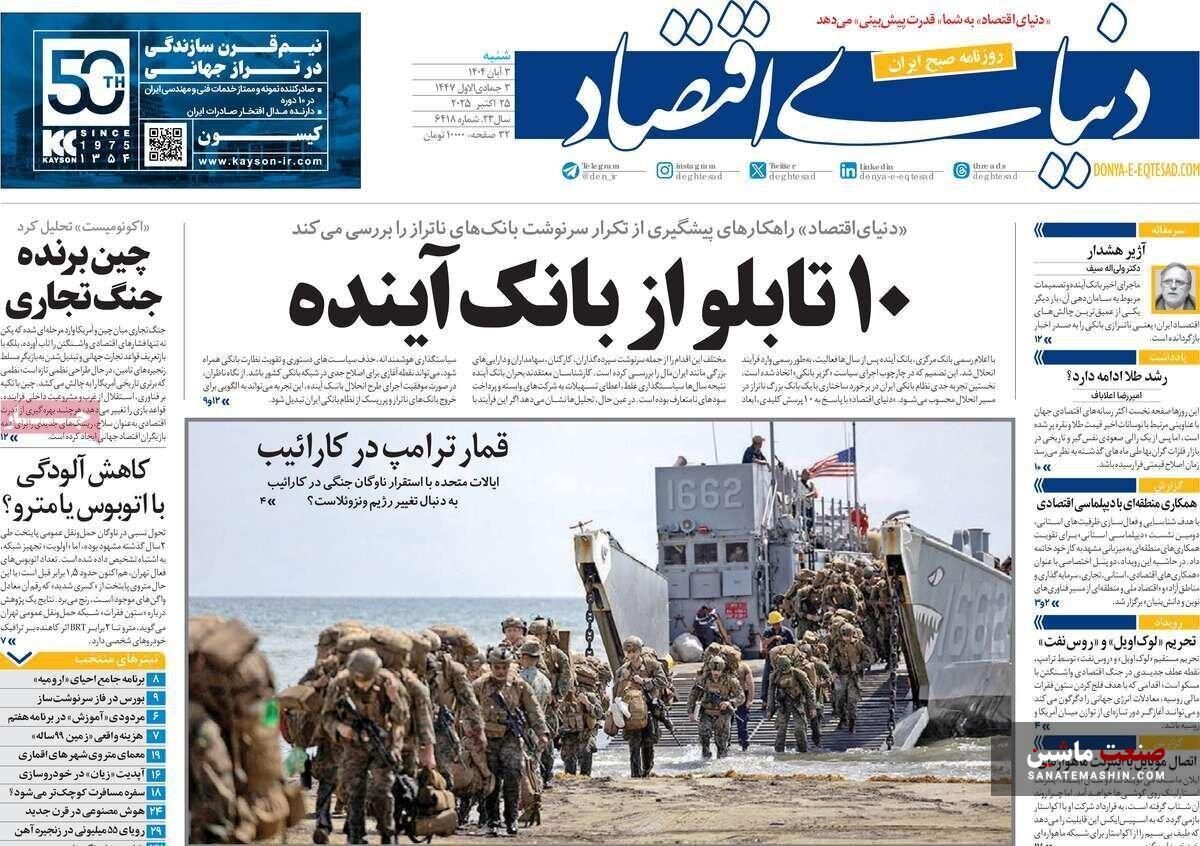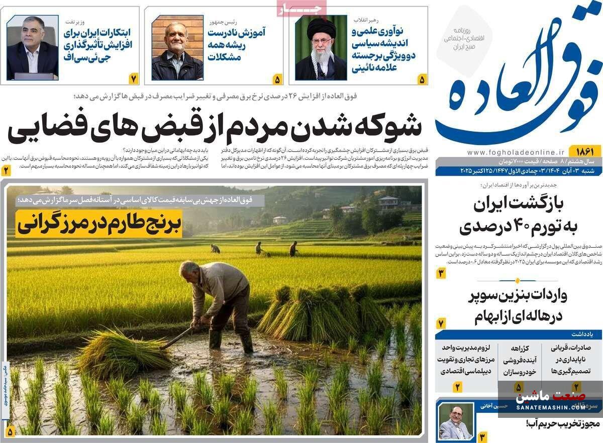 به گزارش صنعت ماشین ؛ صفحه نخست روزنامه های اقتصادی 3 آبان 1404 به شرح زیر است: