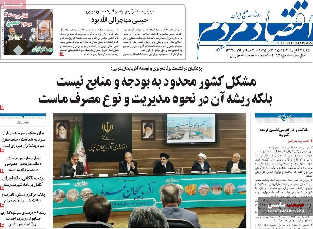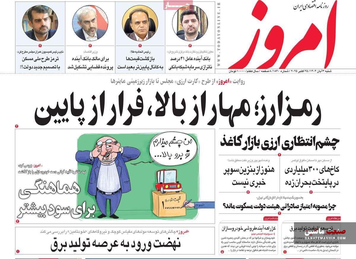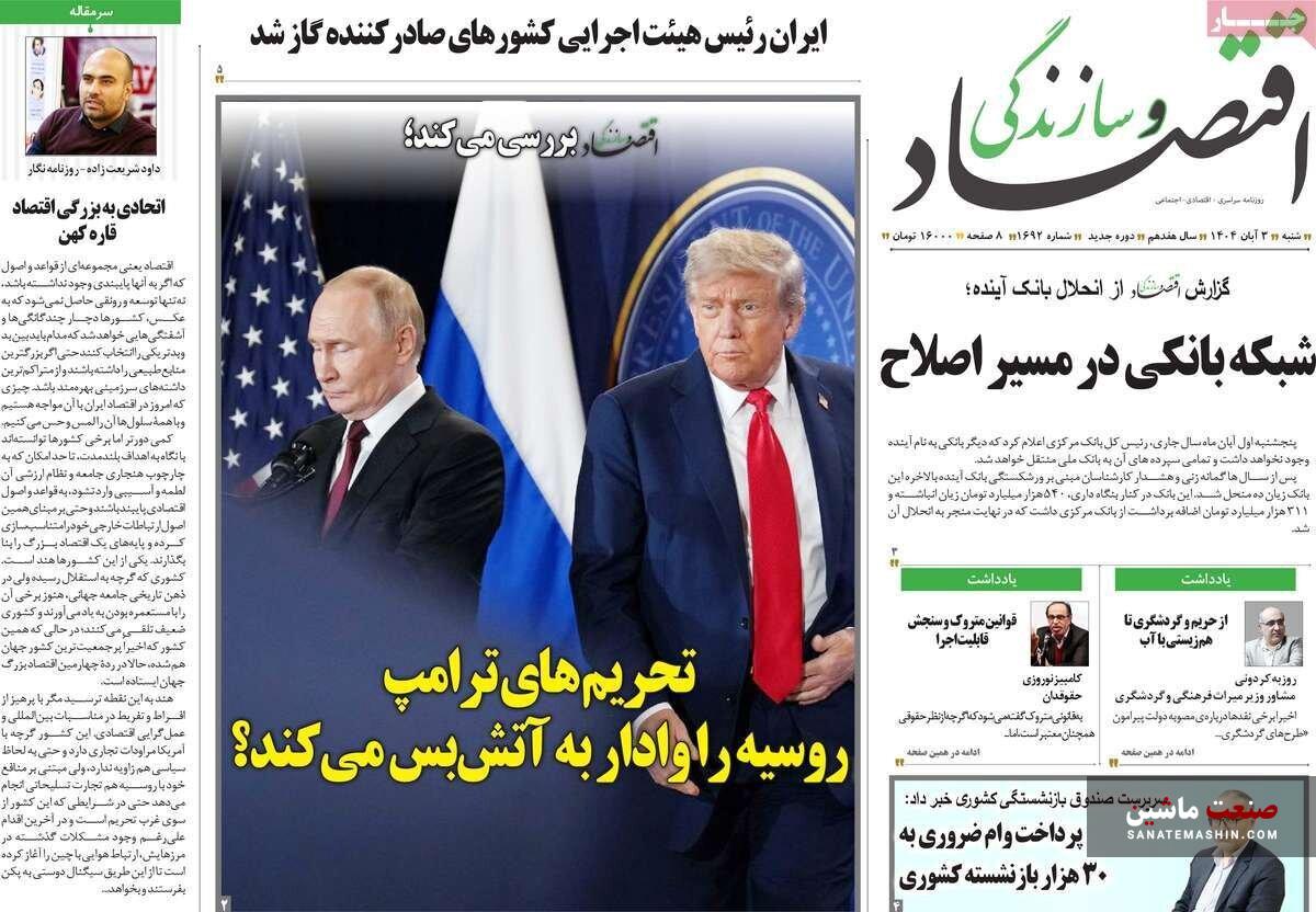 صفحه نخست روزنامه های اقتصادی 1 آبان 1404