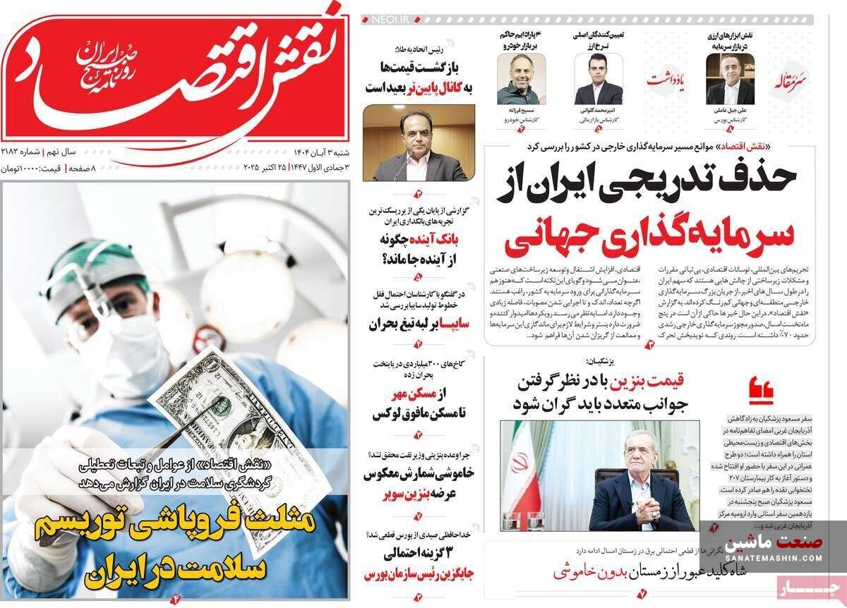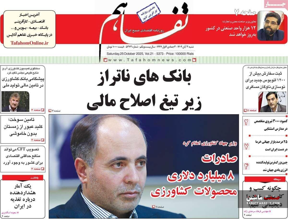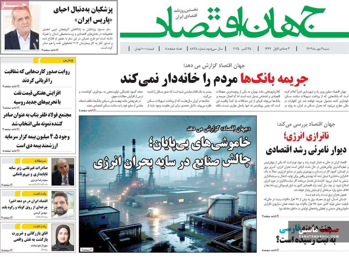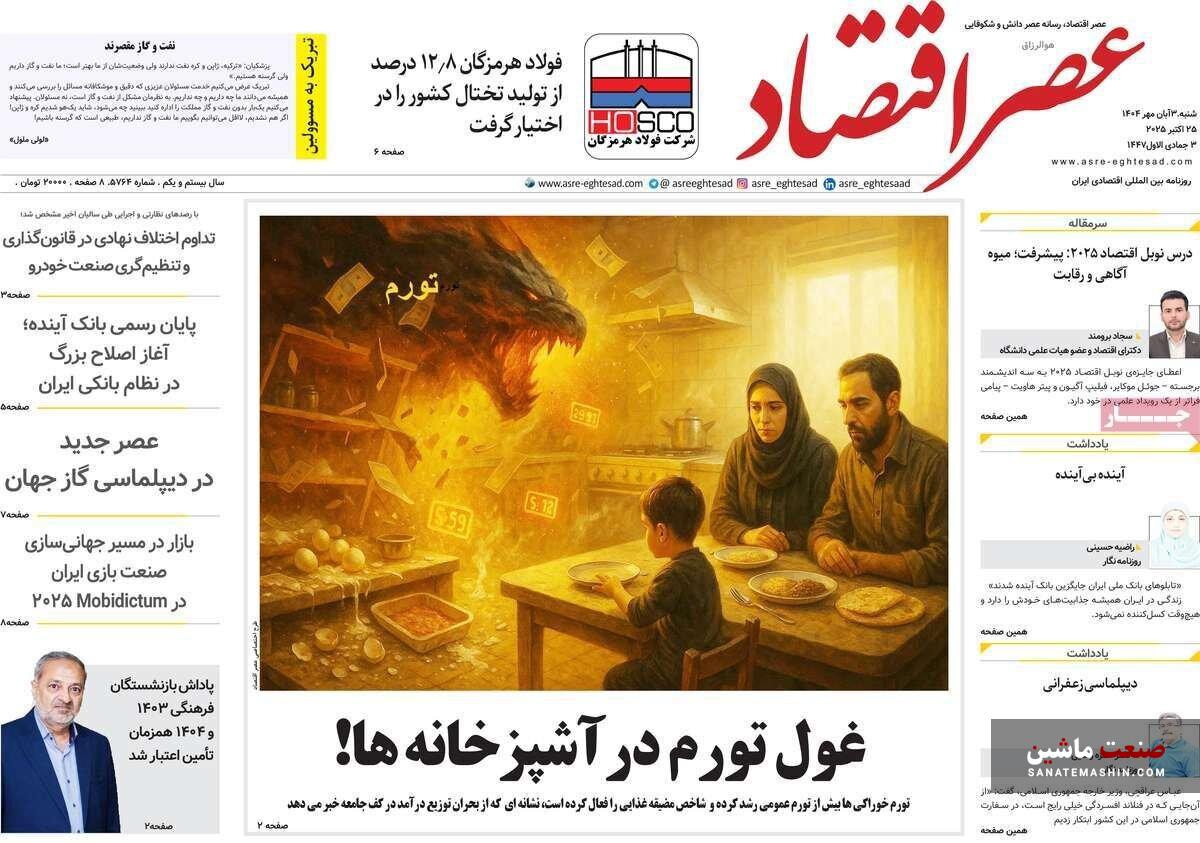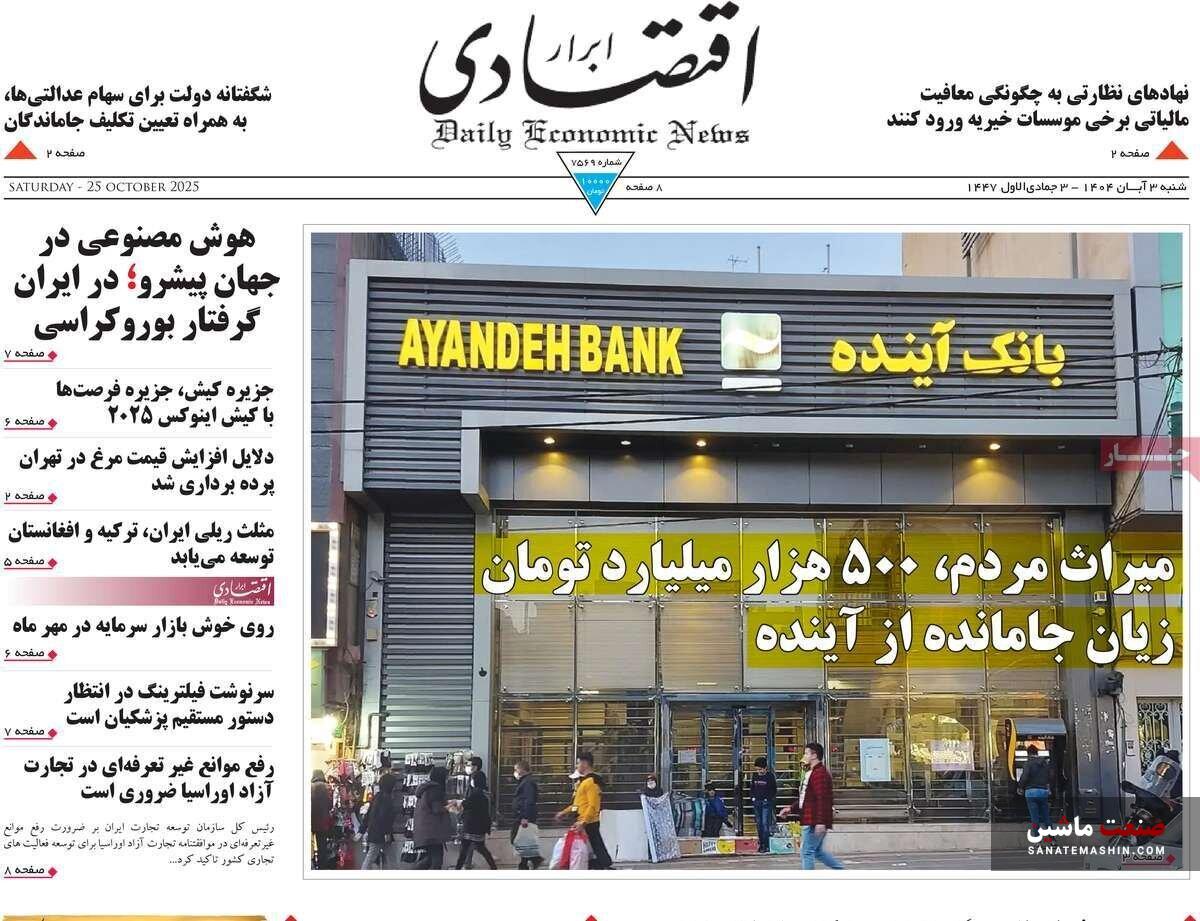 صفحه نخست روزنامه های اقتصادی 26 مهر 1404