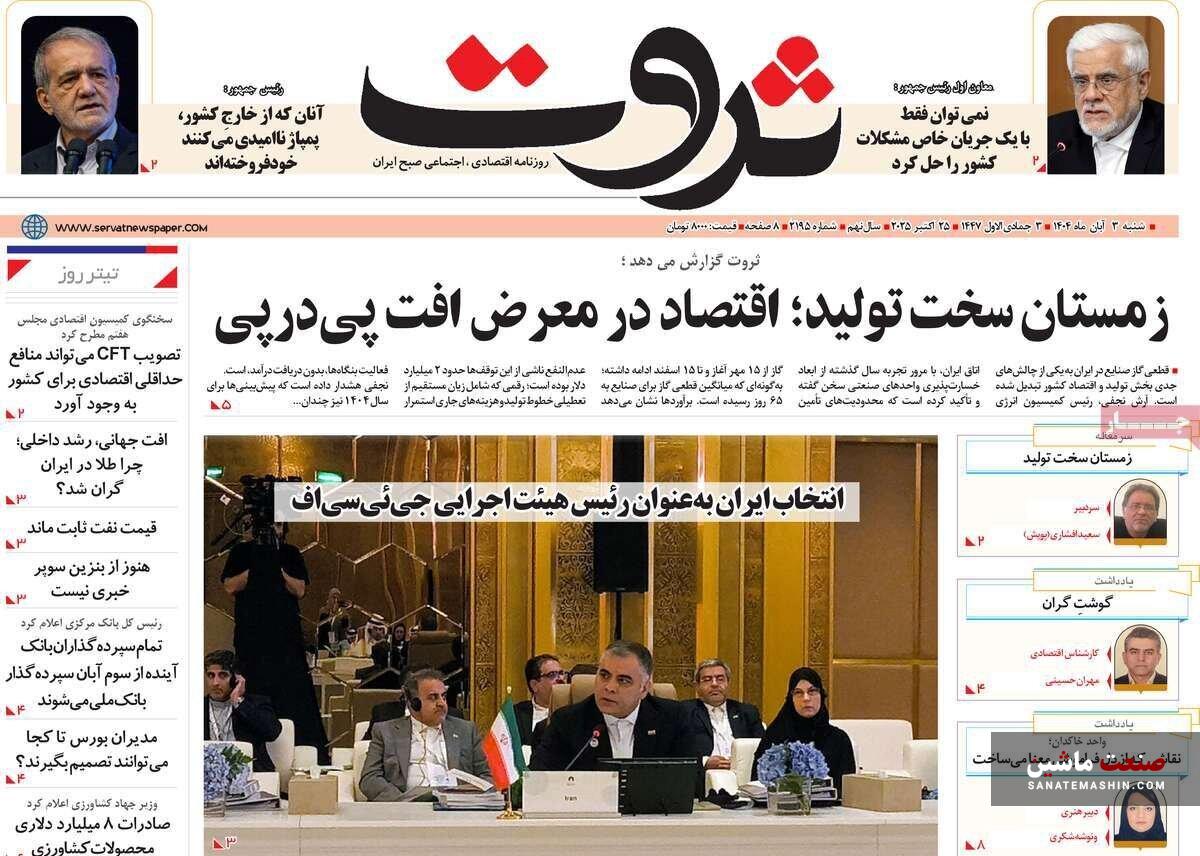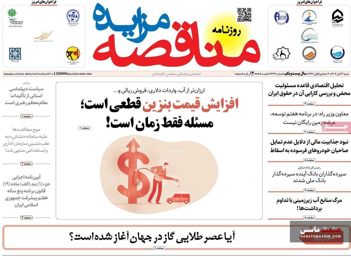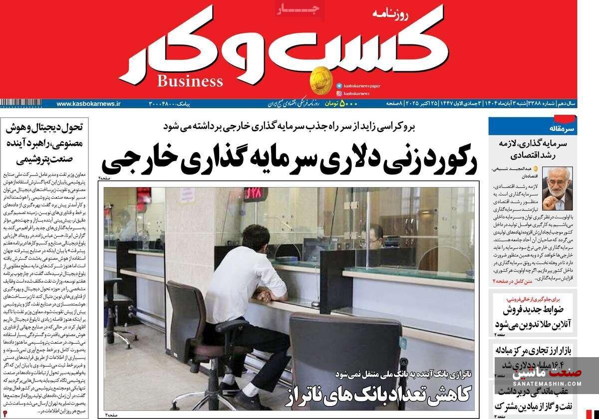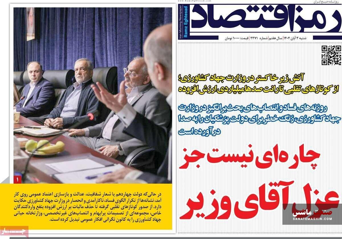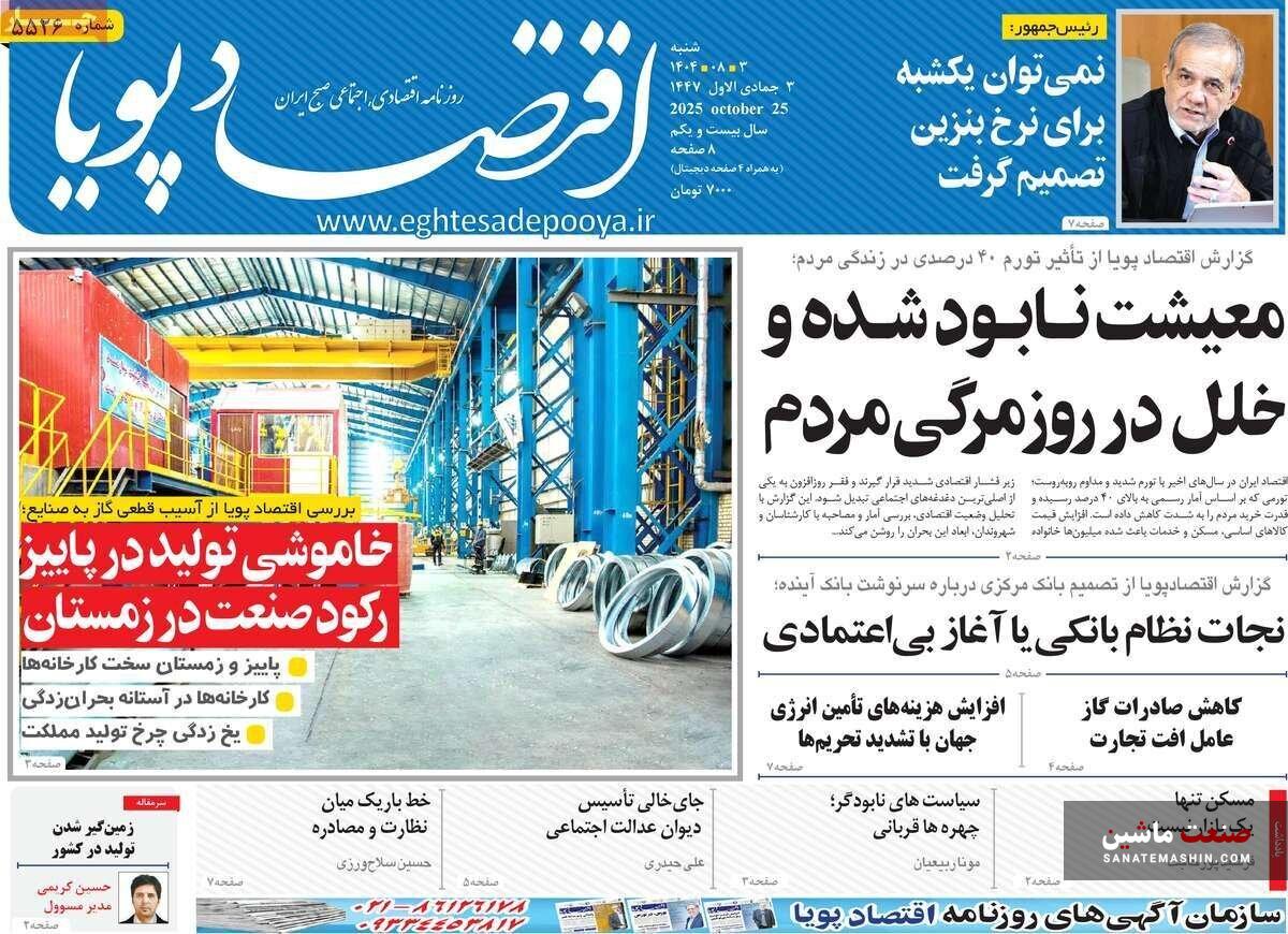 صفحه نخست روزنامه های اقتصادی 26 مهر 1404