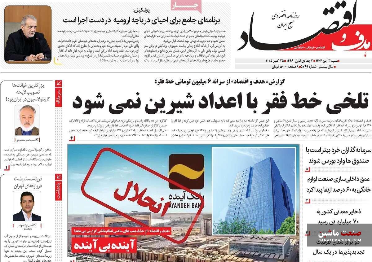 صفحه نخست روزنامه های اقتصادی 23 مهر 1404