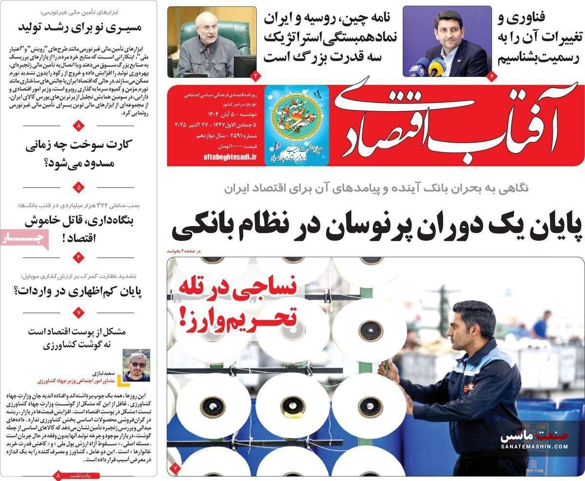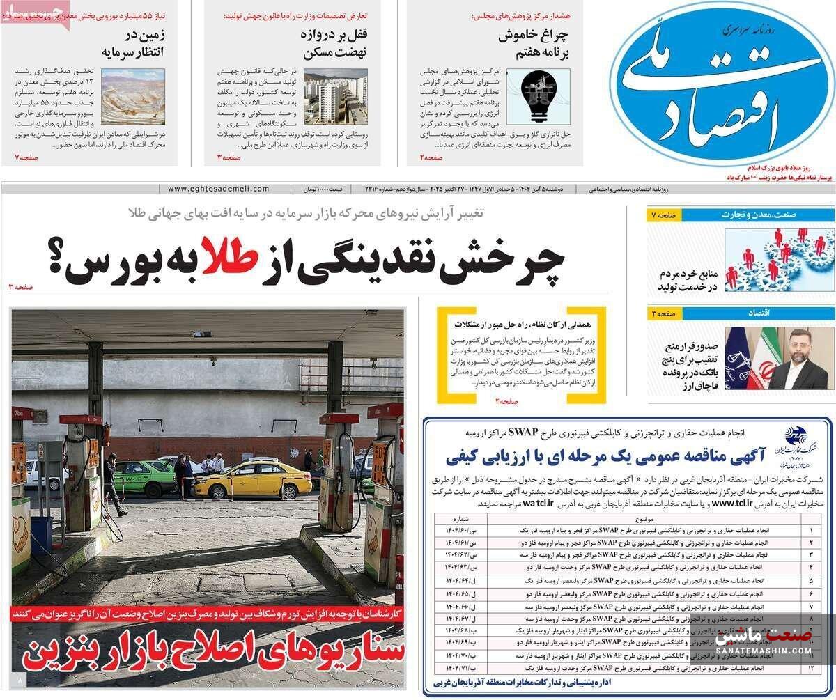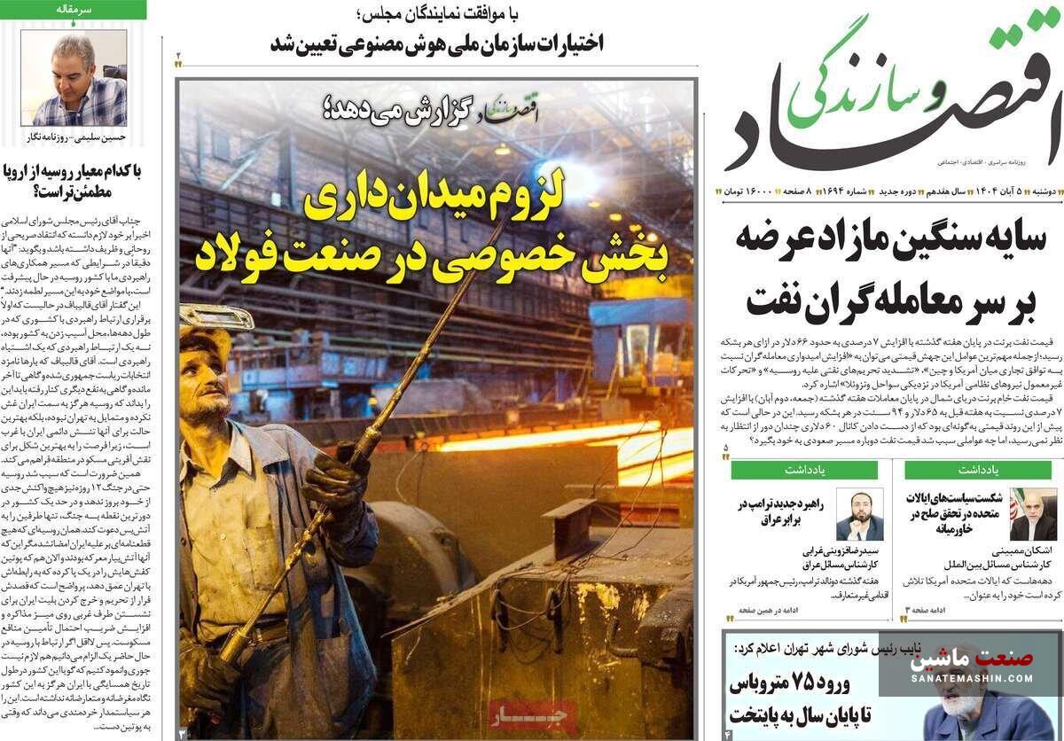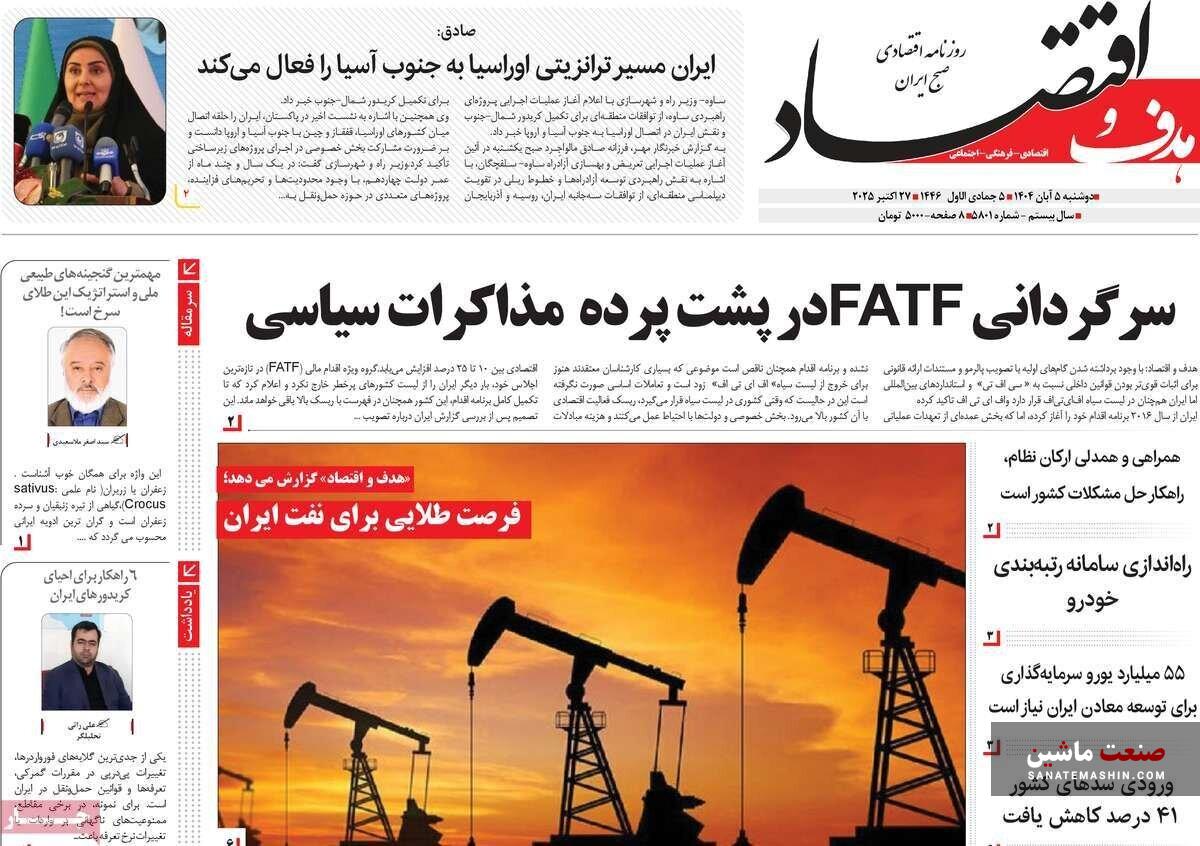 صفحه نخست روزنامه های اقتصادی 5 آبان 1404