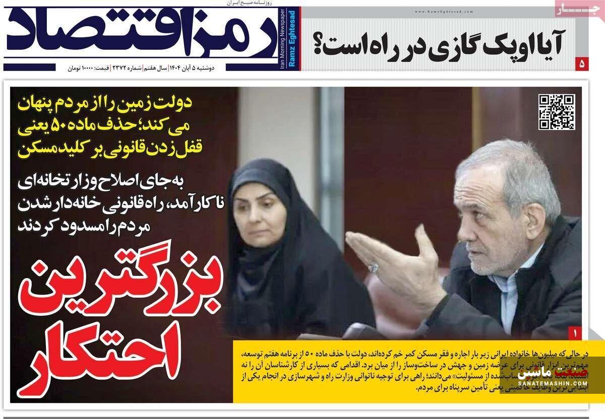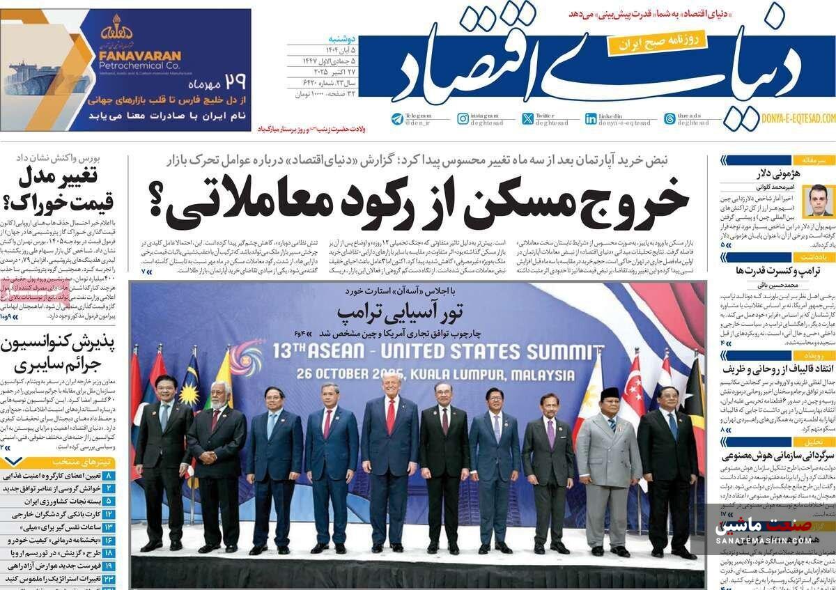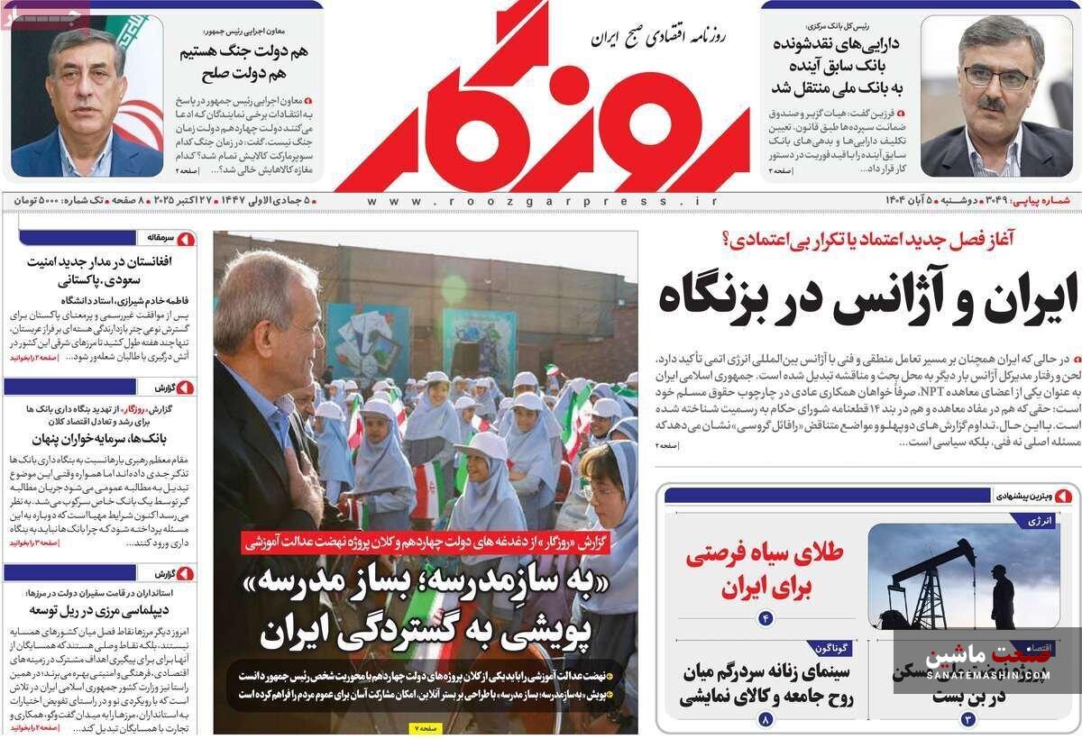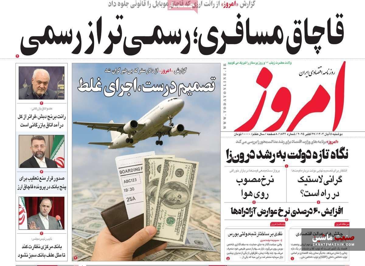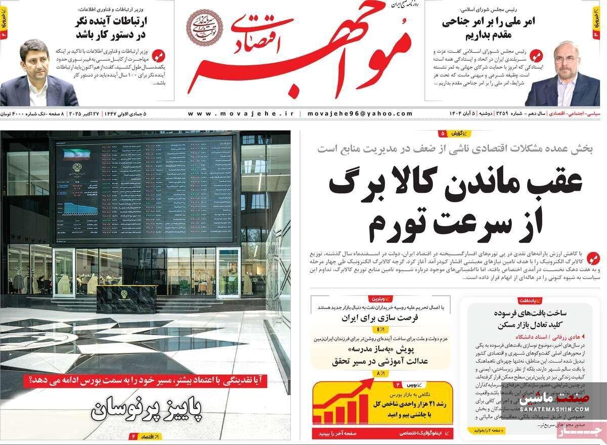 صفحه نخست روزنامه های اقتصادی 5 آبان 1404