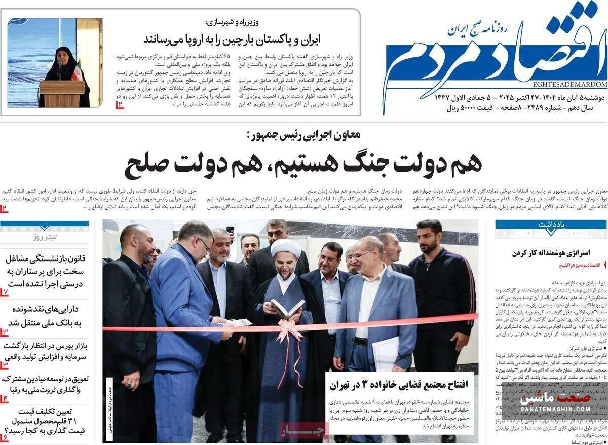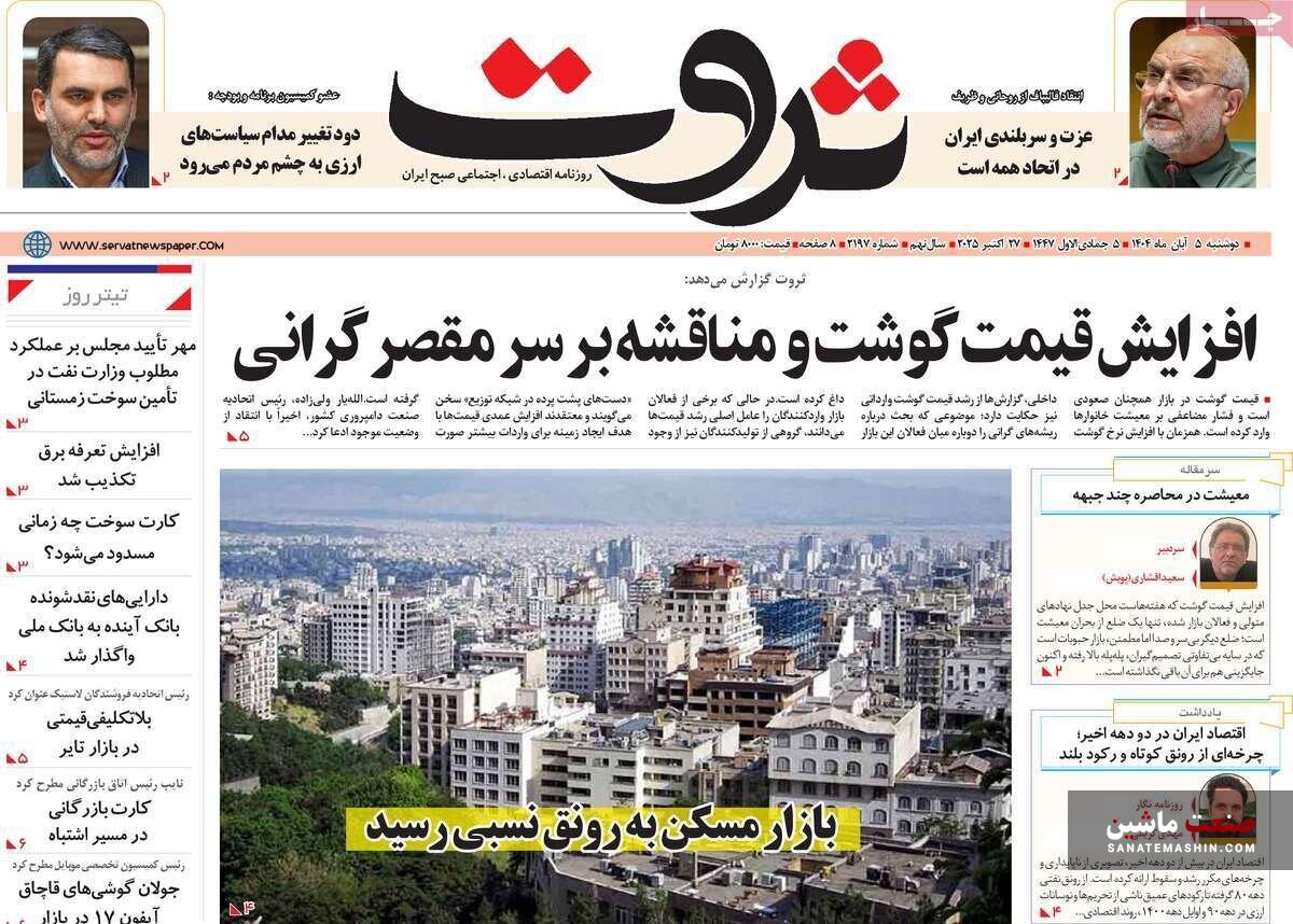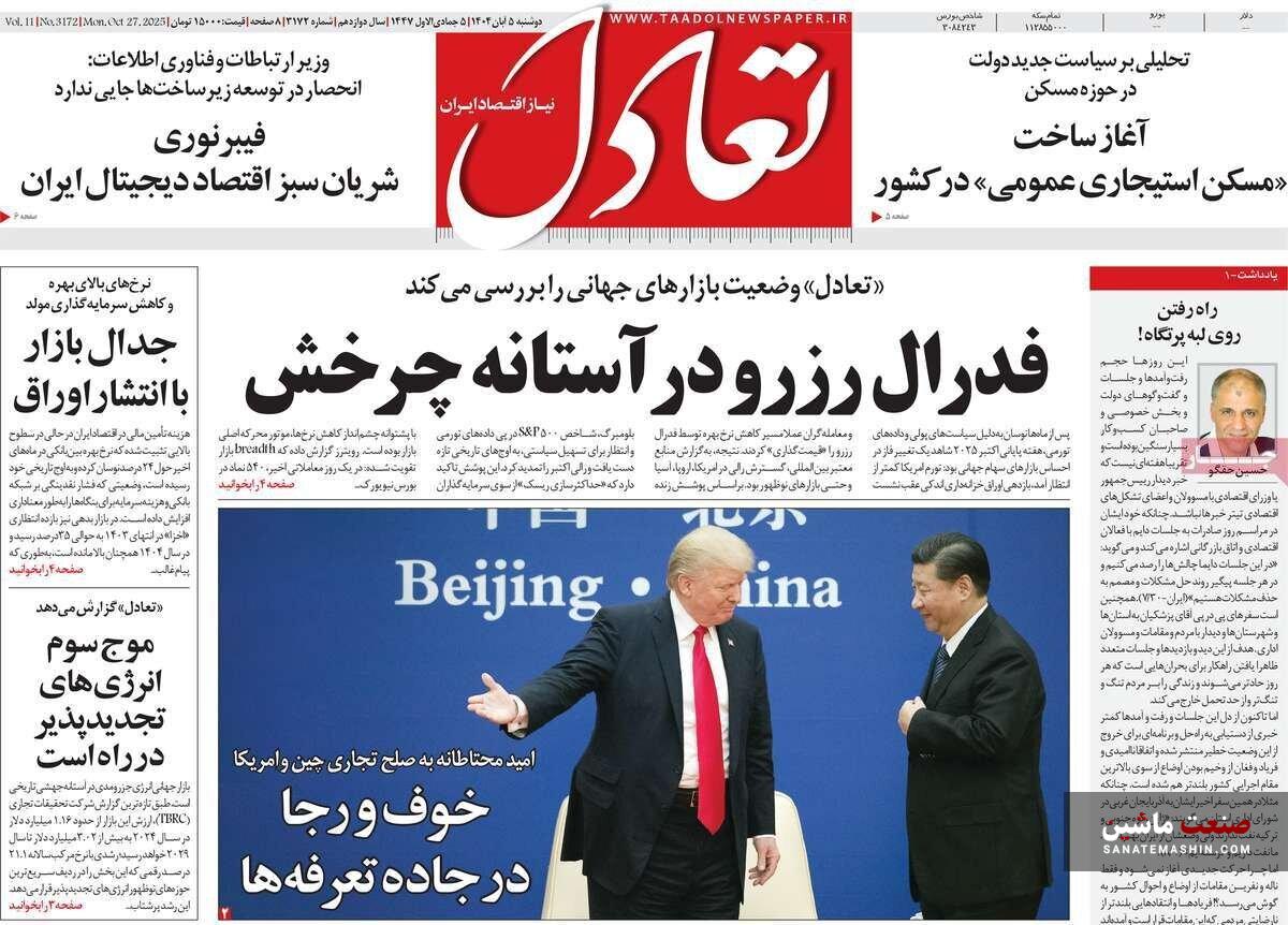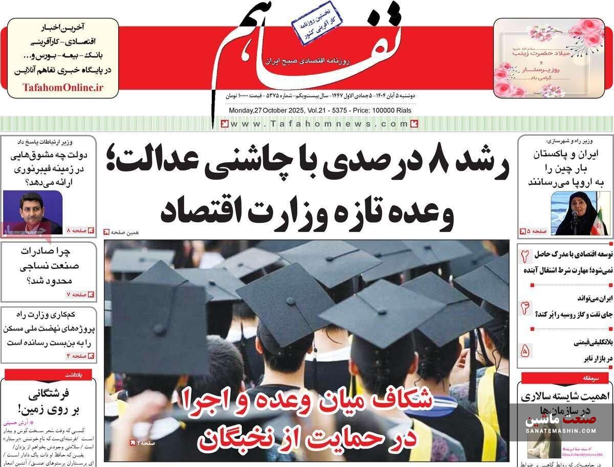 صفحه نخست روزنامه های اقتصادی 5 آبان 1404