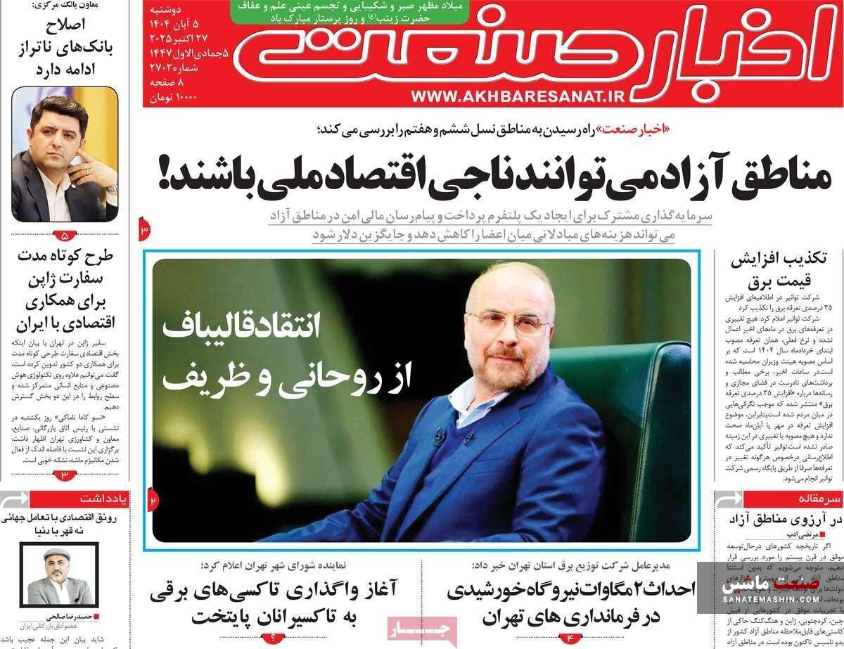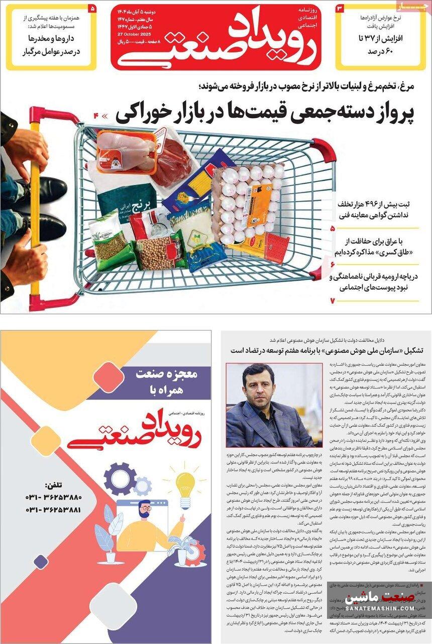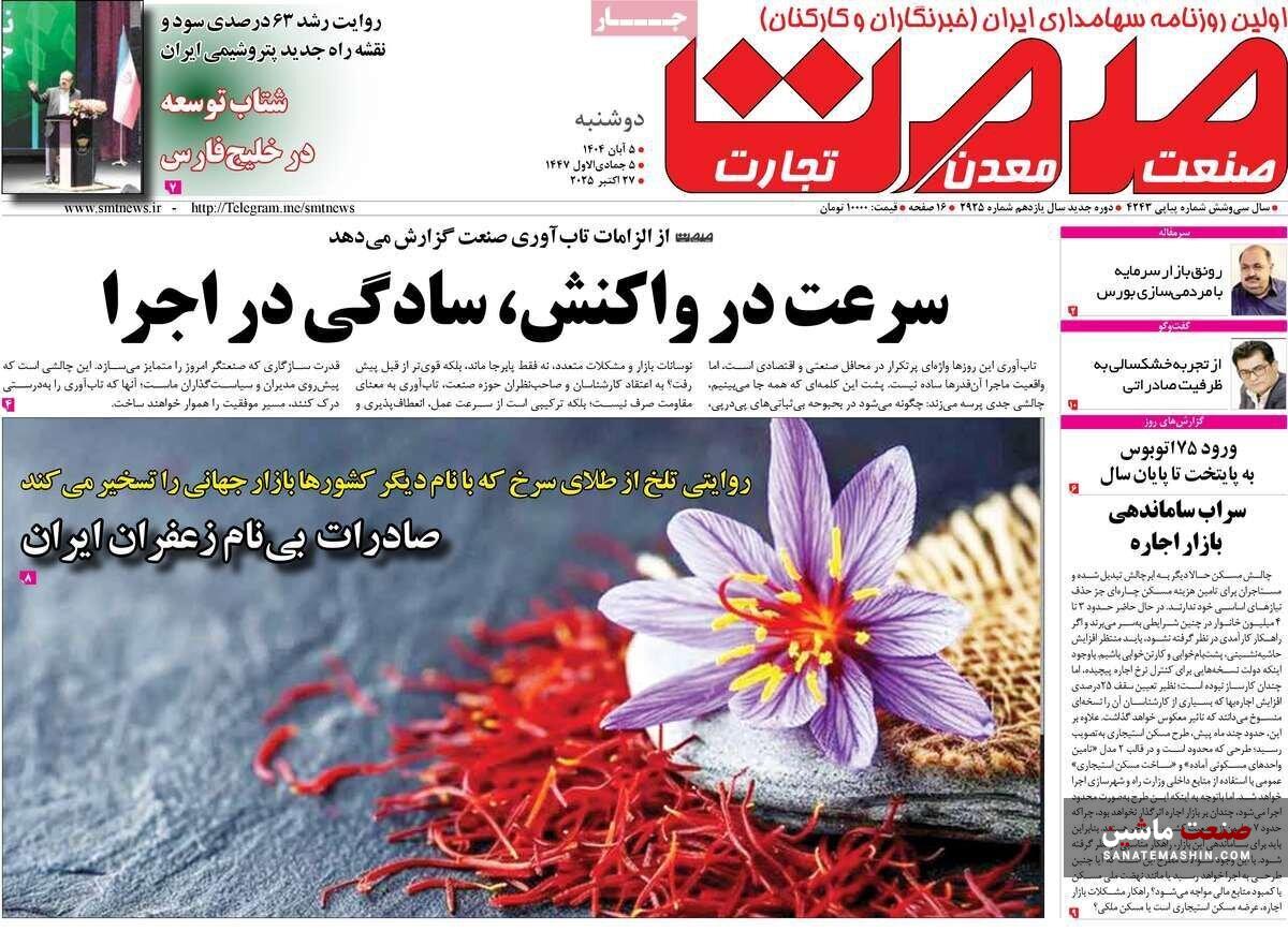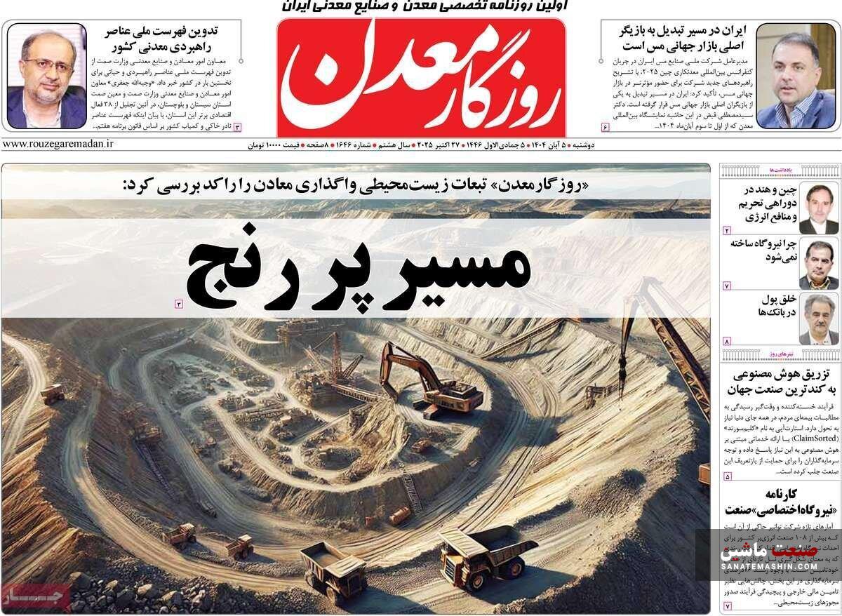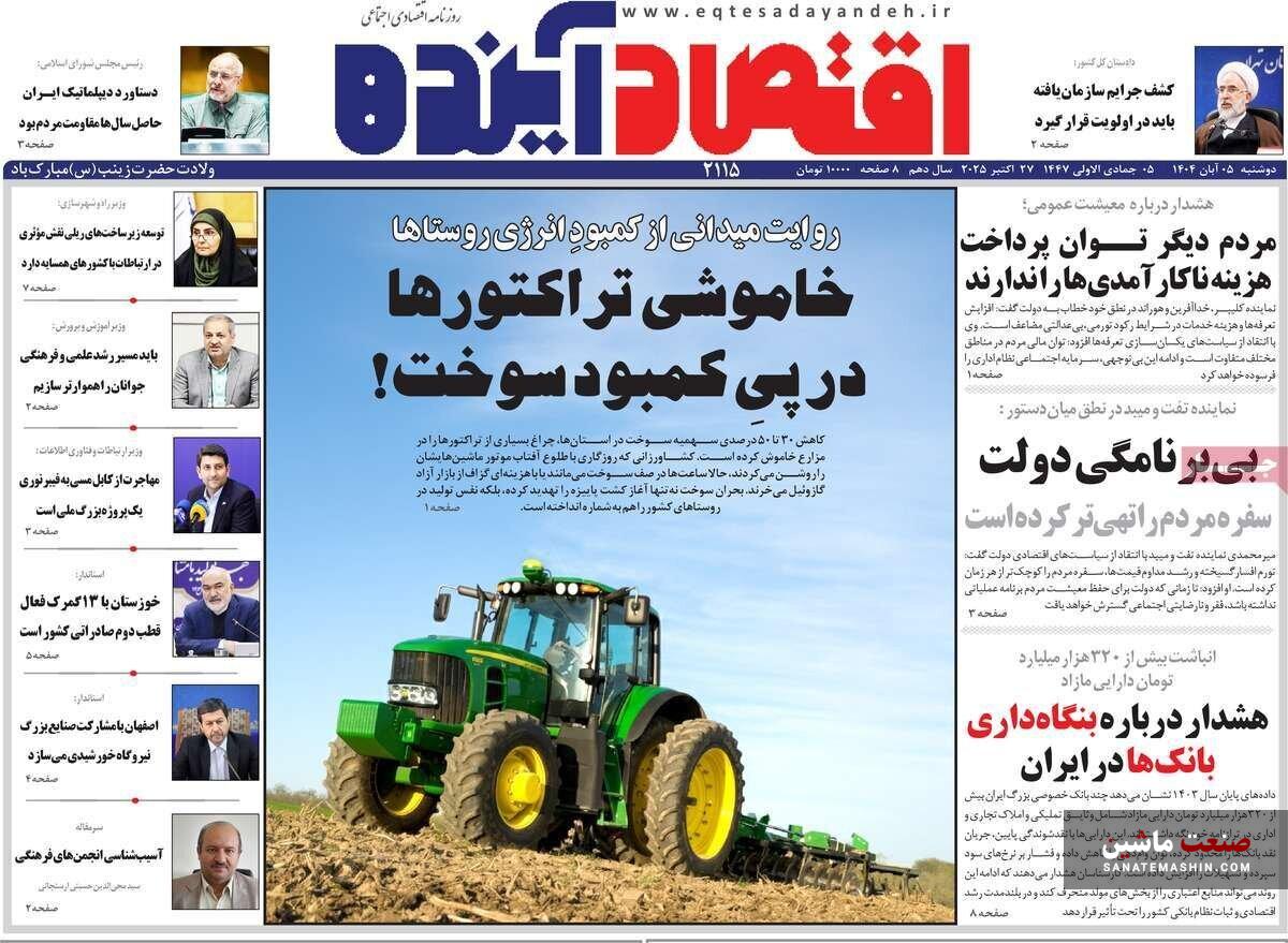 صنعت ماشین: صفحه نخست روزنامه های اقتصادی 5 آبان 1404 در صنعت ماشین منتشر شد.