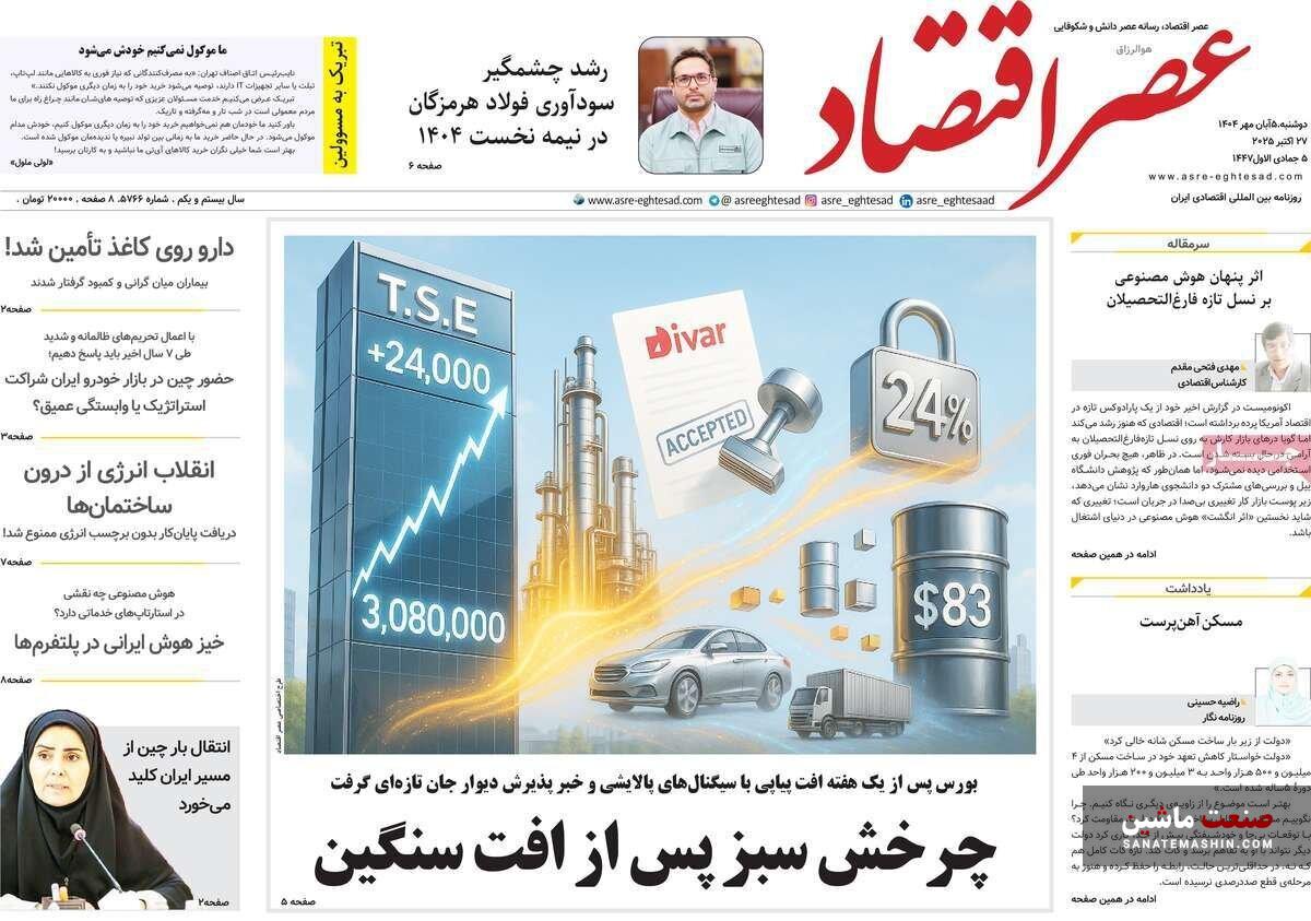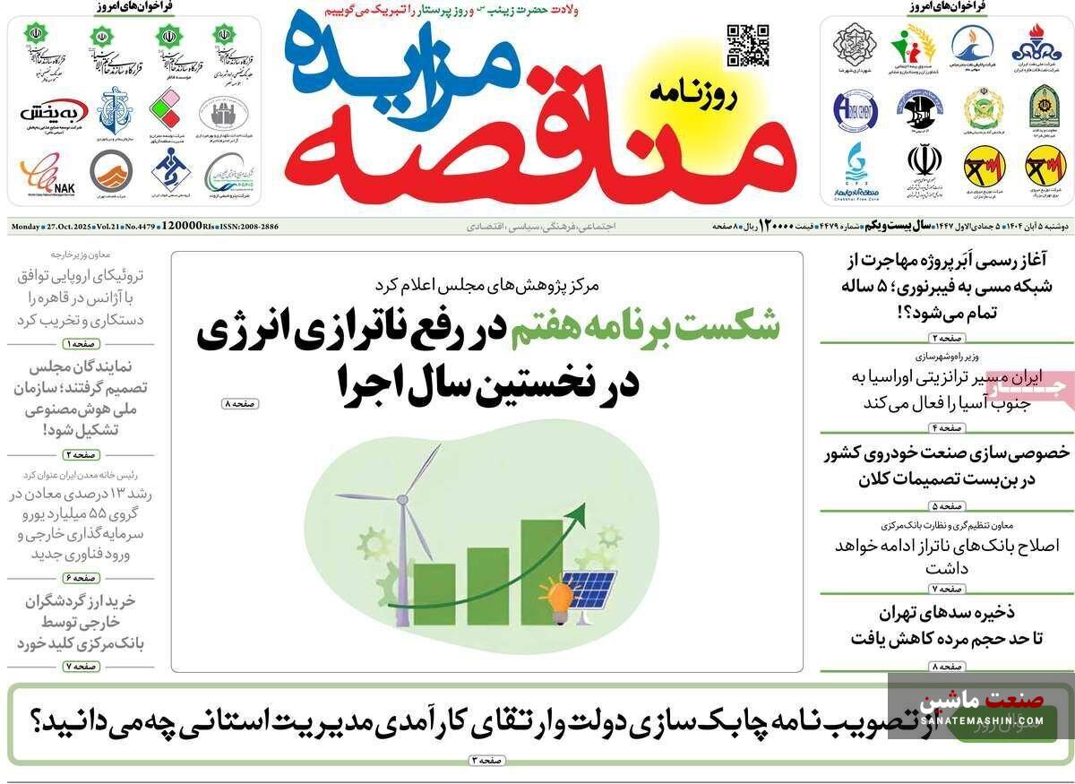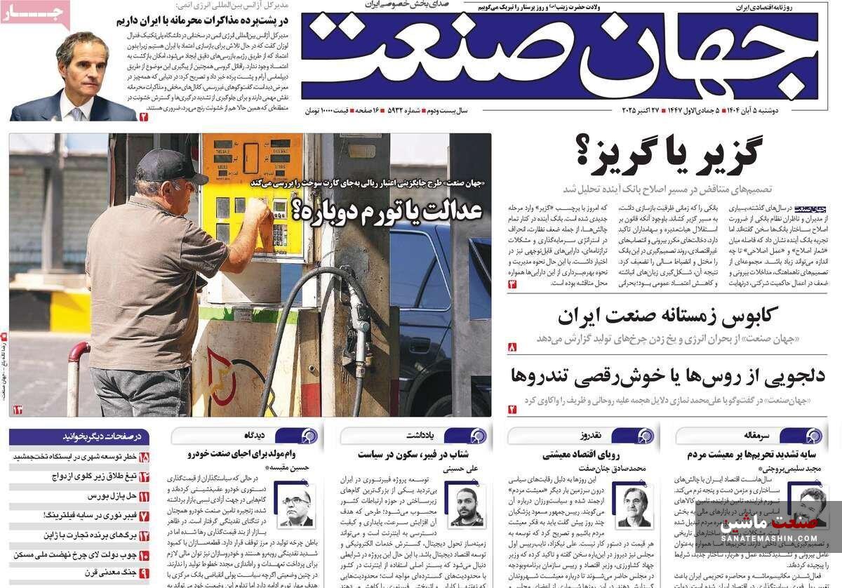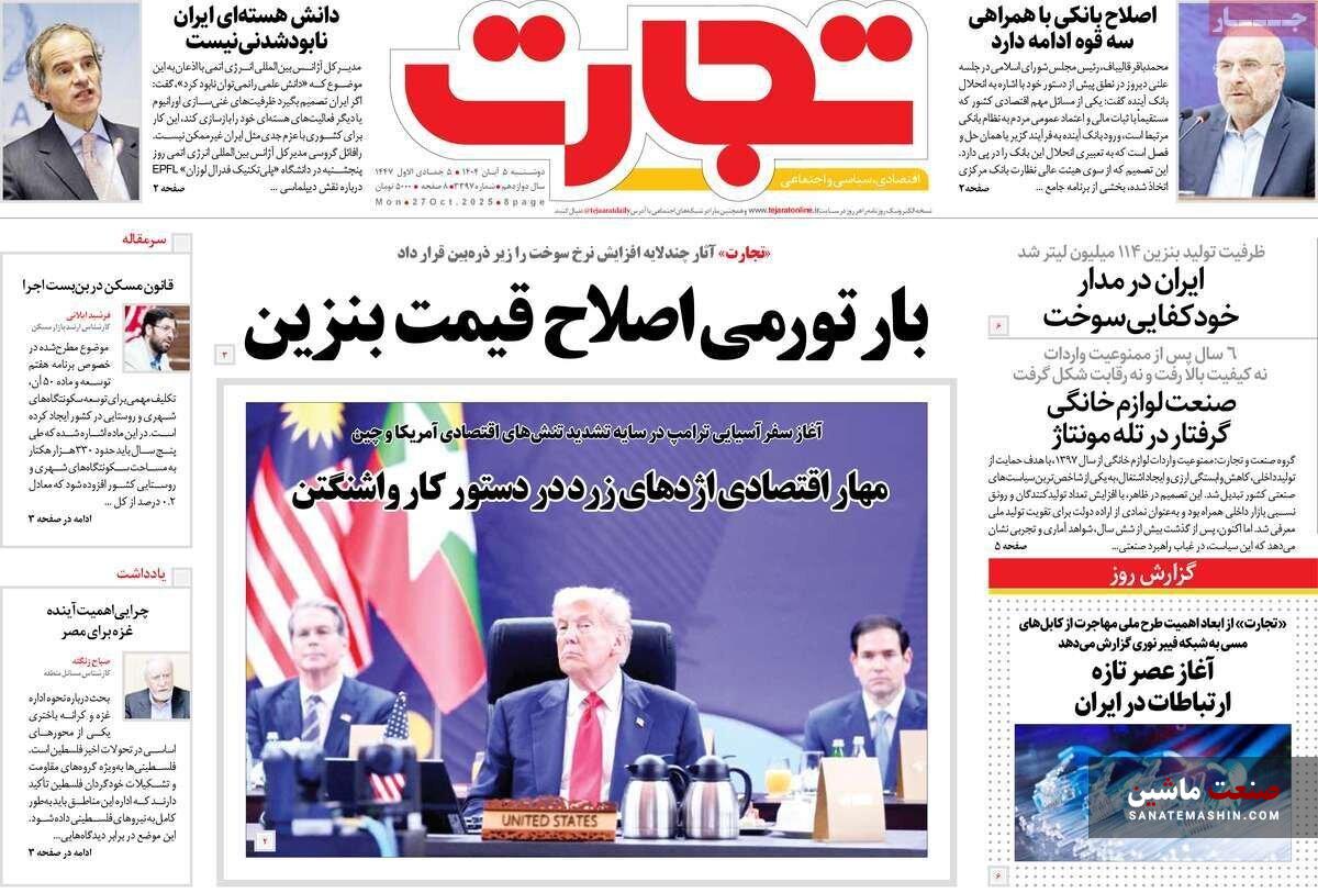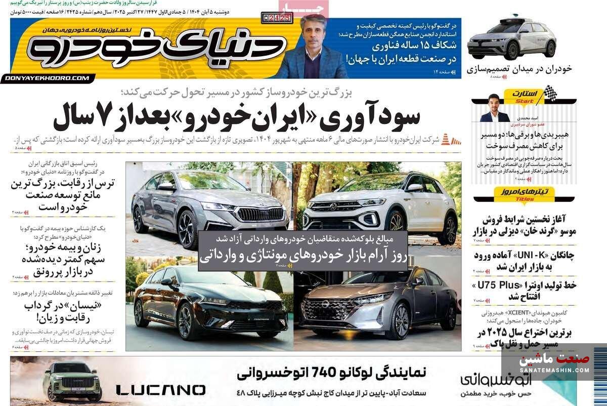 صنعت ماشین: صفحه نخست روزنامه های اقتصادی 5 آبان 1404 در صنعت ماشین منتشر شد.