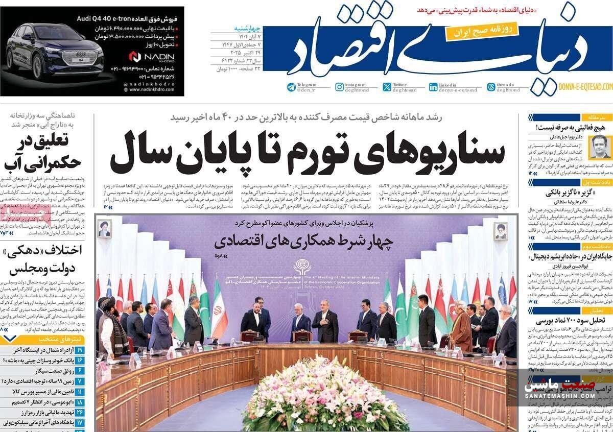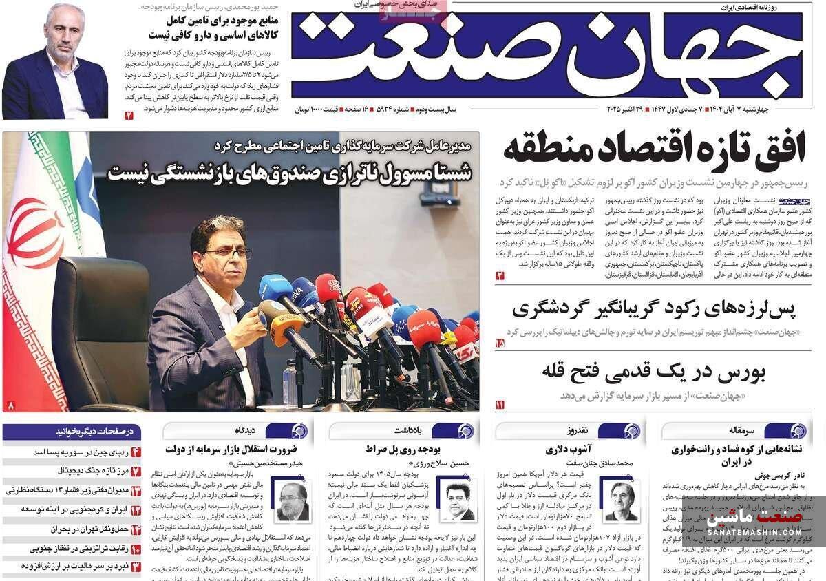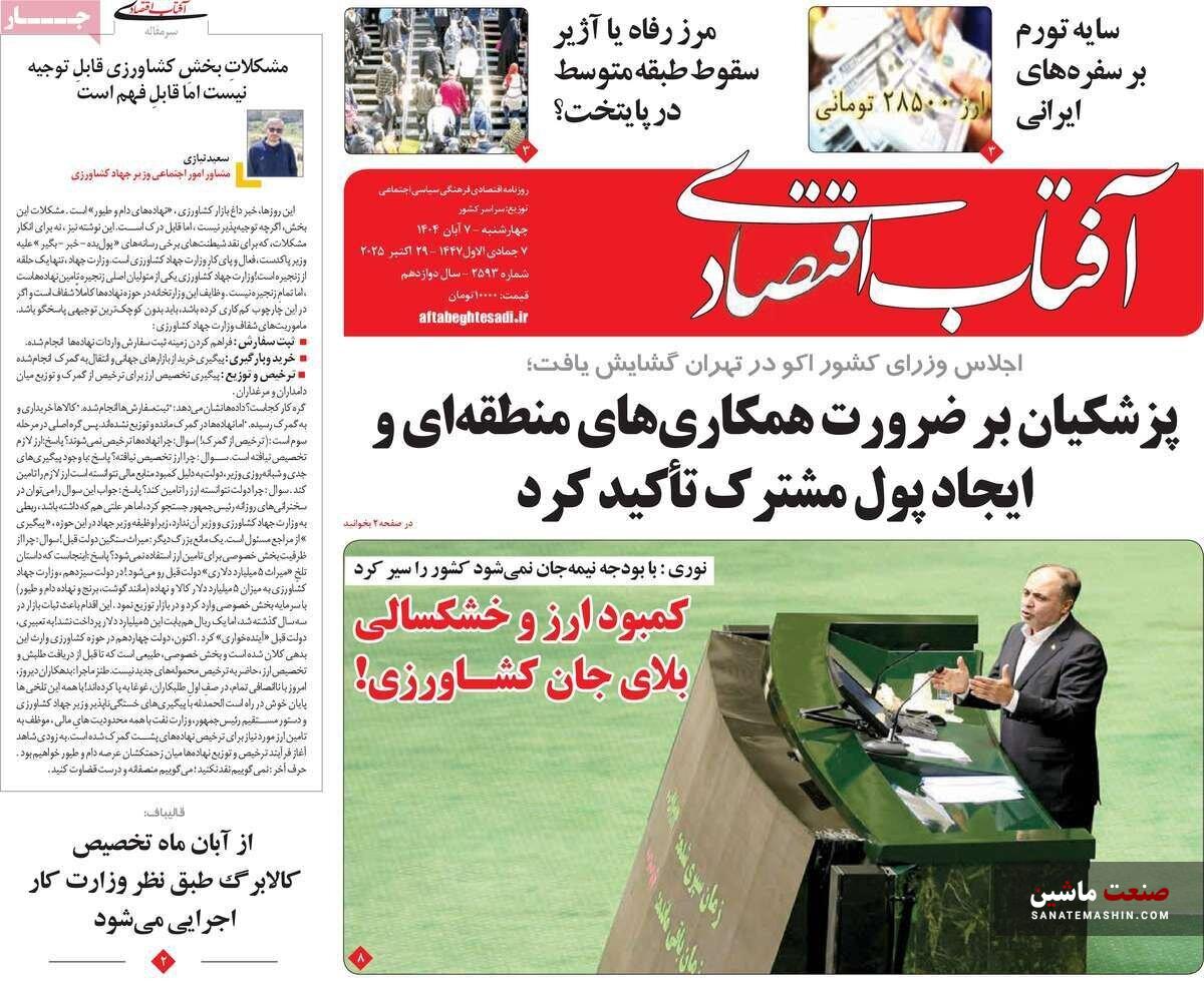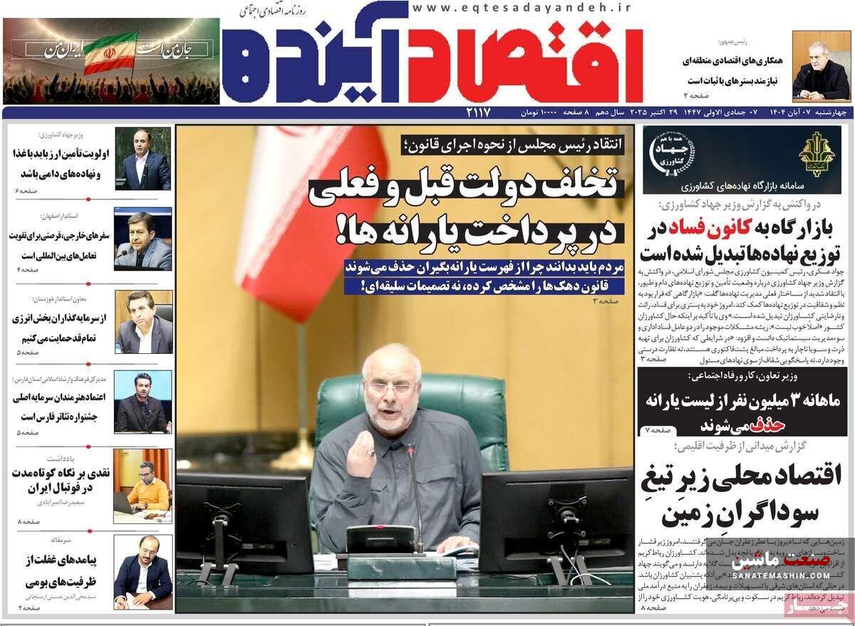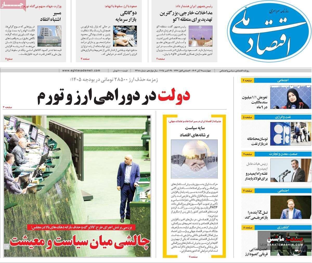 صفحه نخست روزنامه های اقتصادی 4 آبان 1404