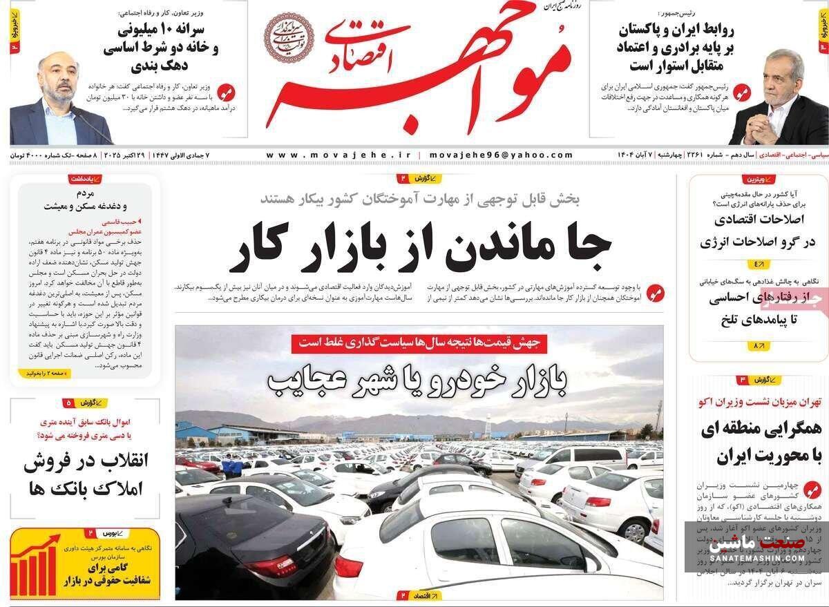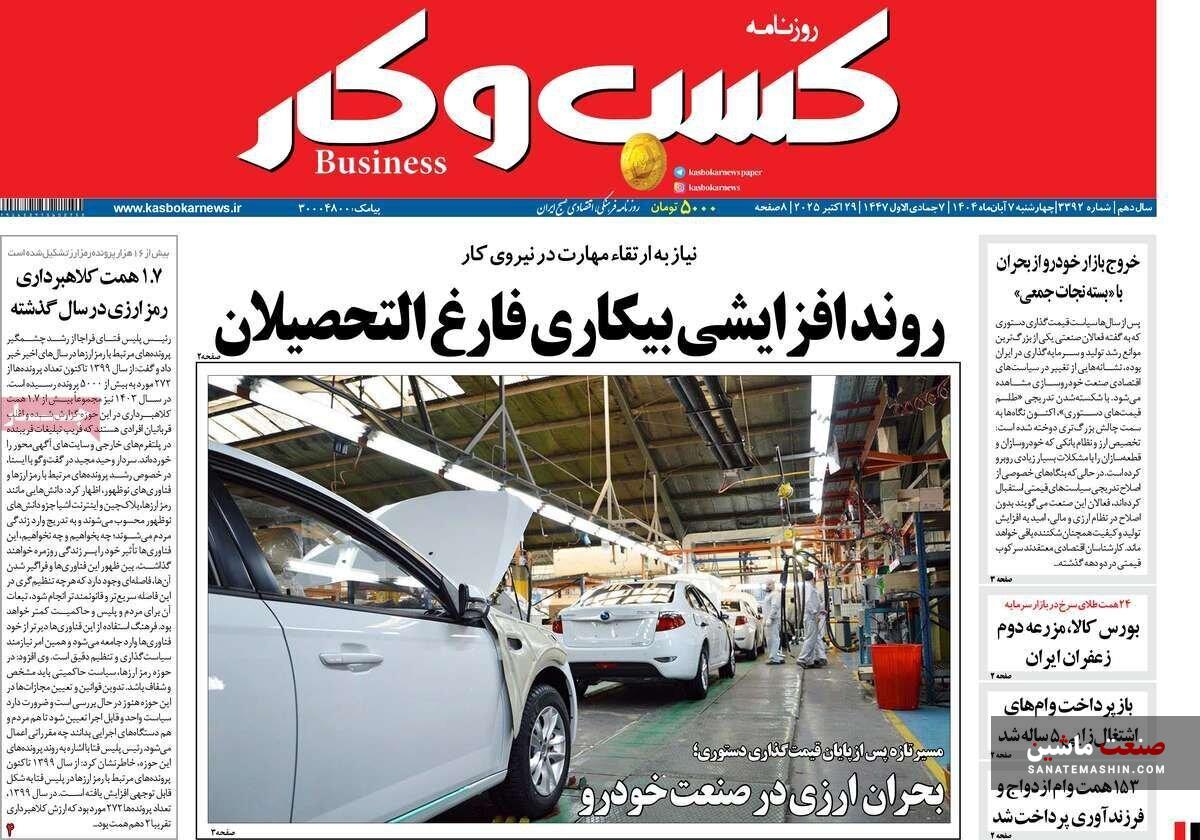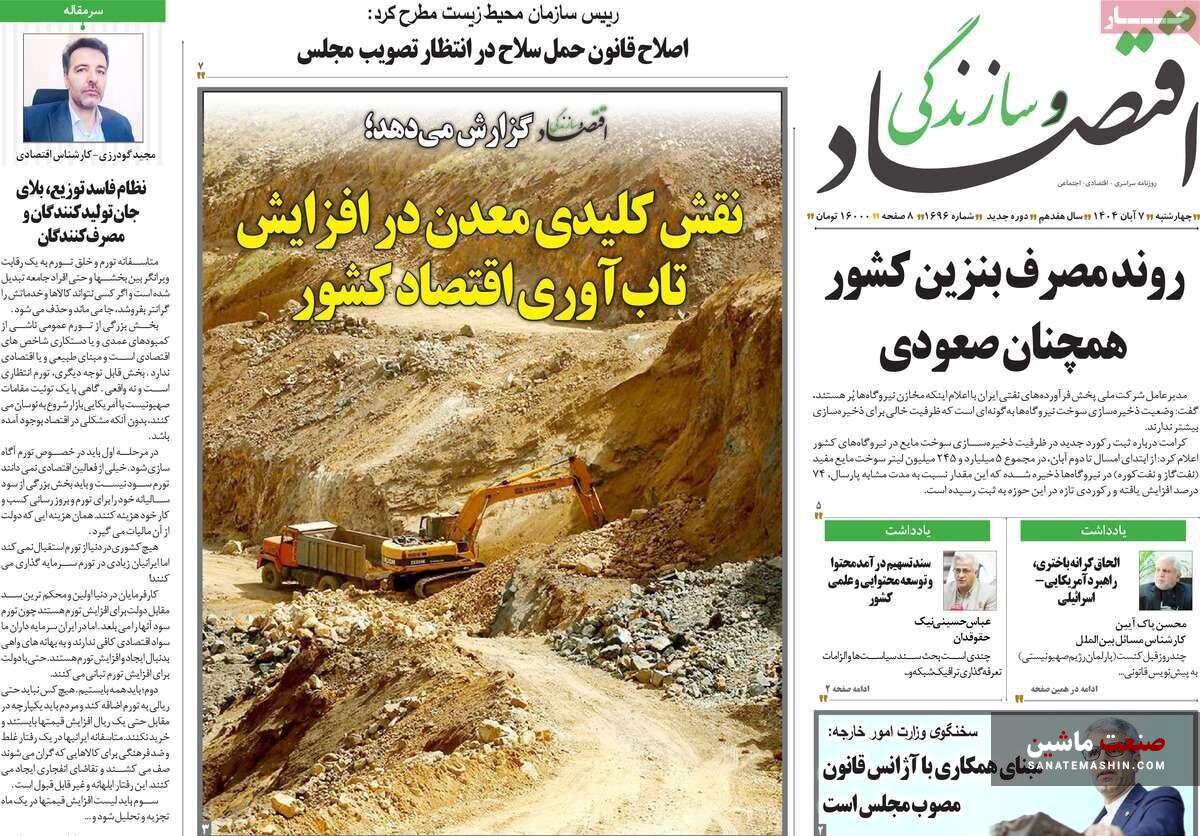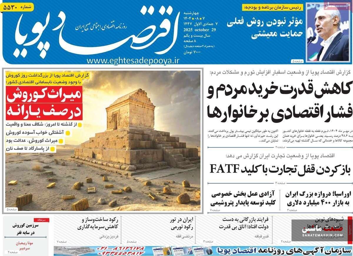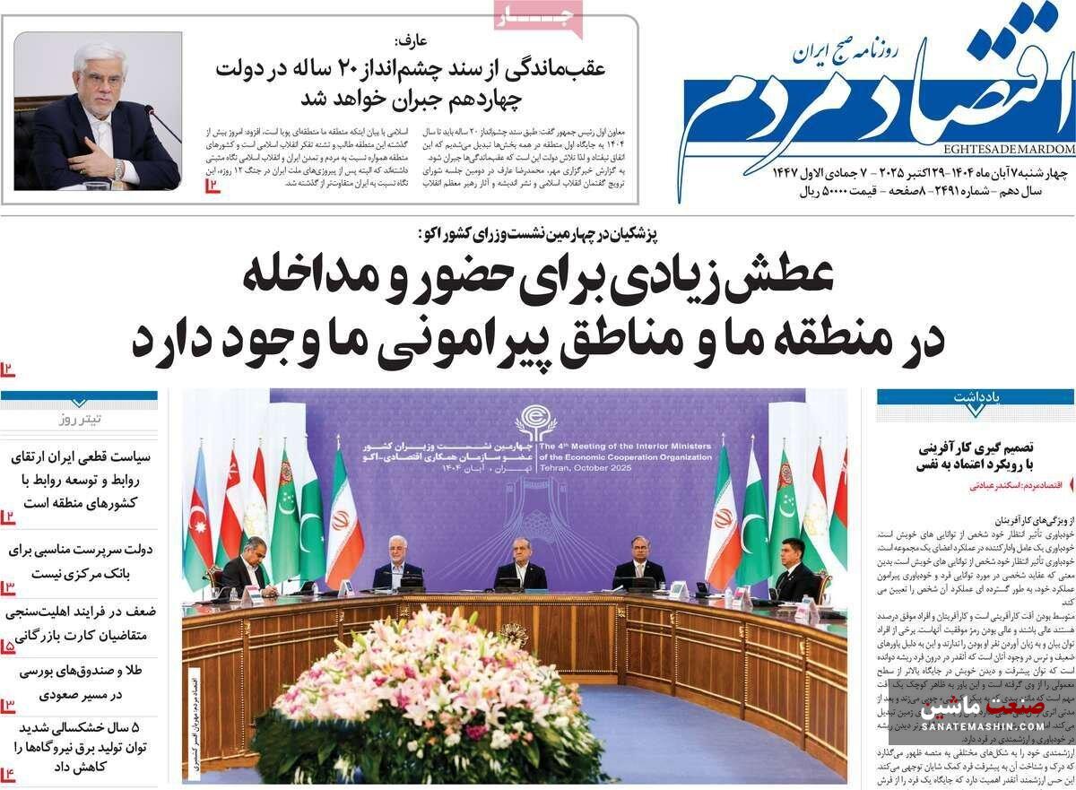 صفحه نخست روزنامه های اقتصادی 4 آبان 1404
